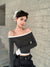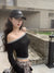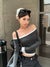 American fashionable off the shoulder collar long-sleeved T-shirt
