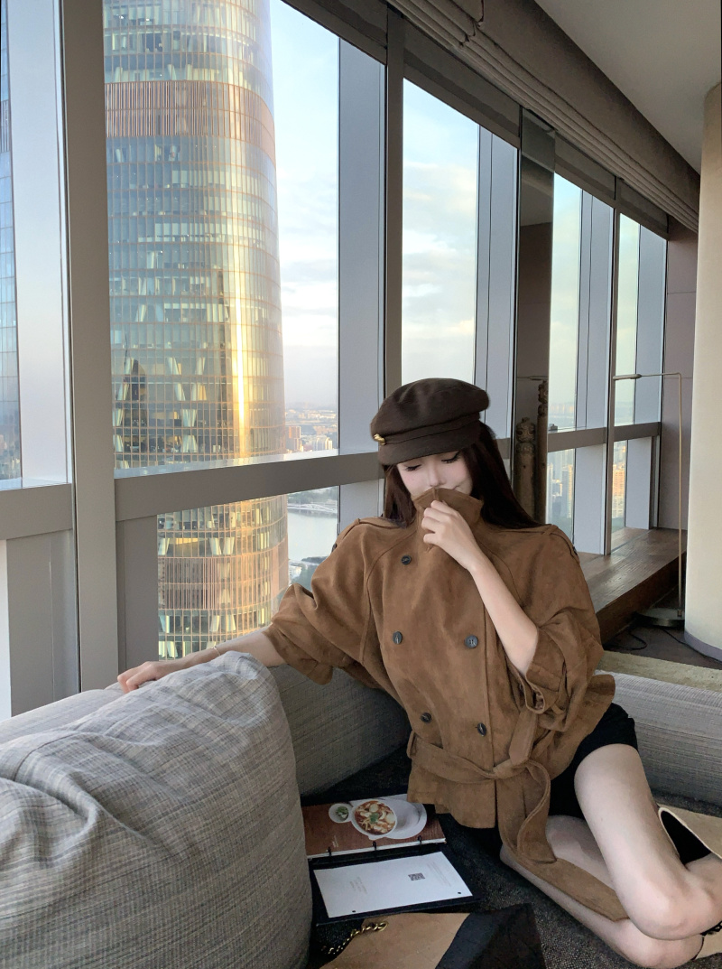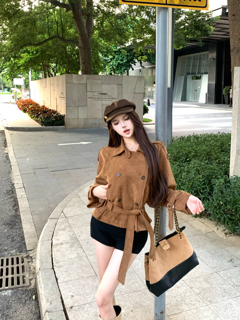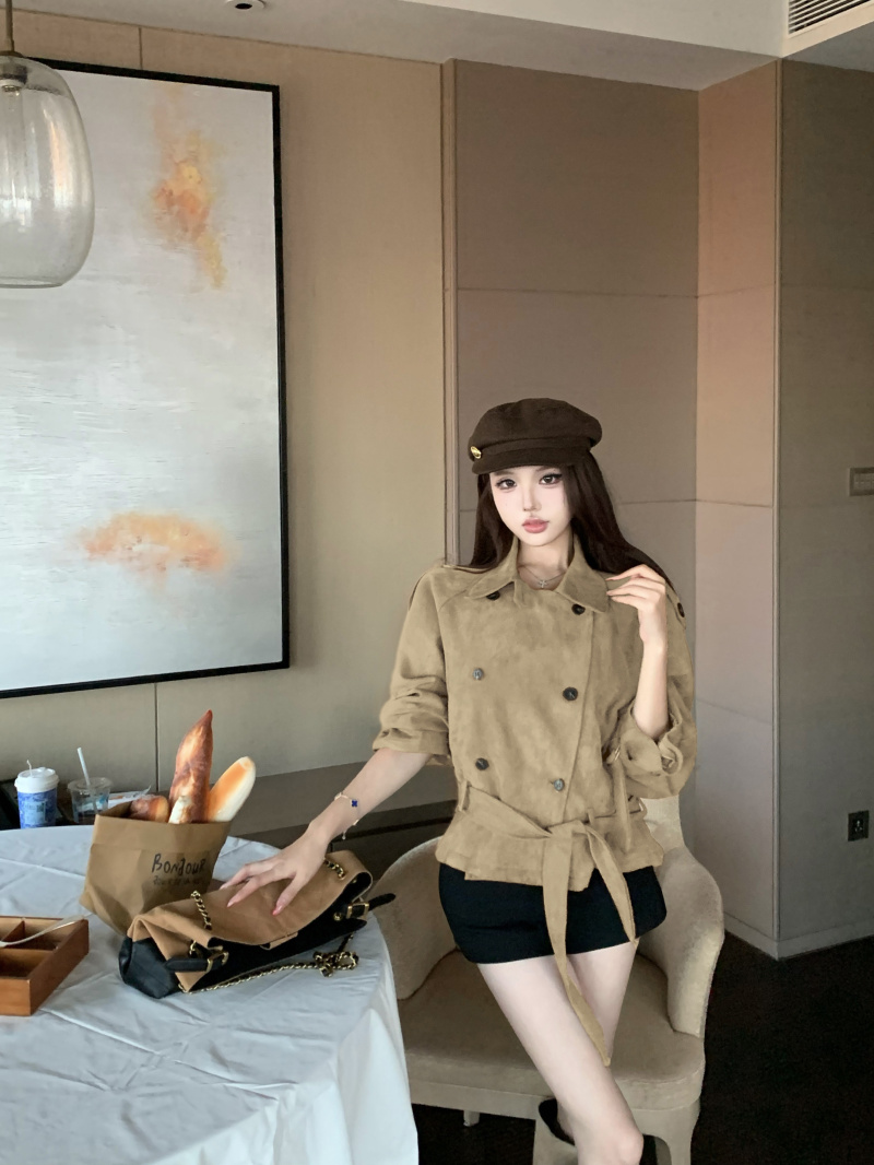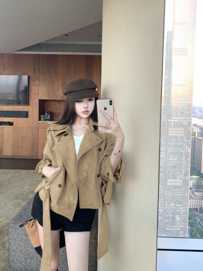 Double-breasted vintage lapel khaki long-sleeved jacket