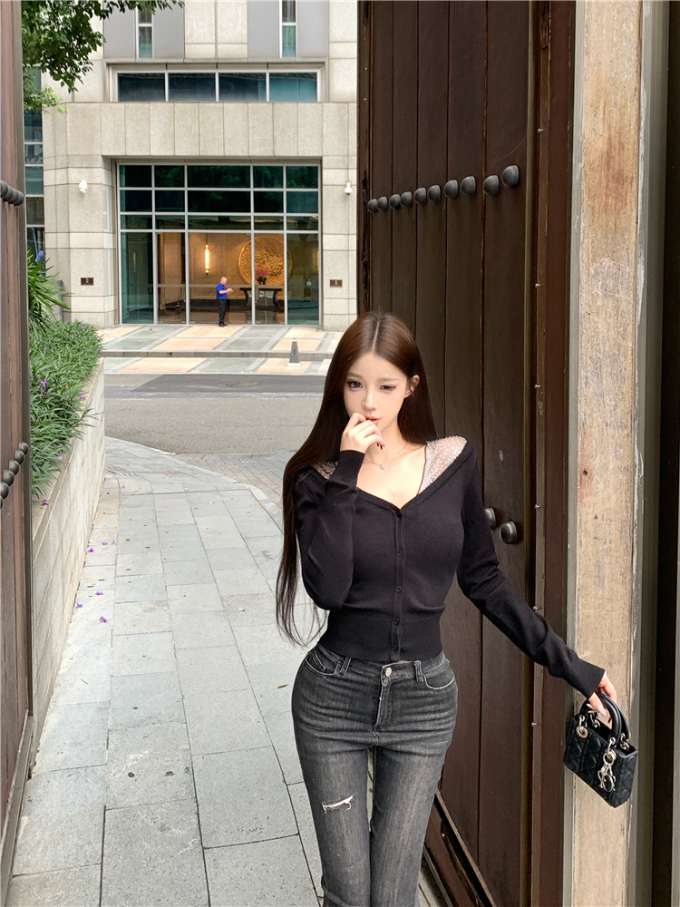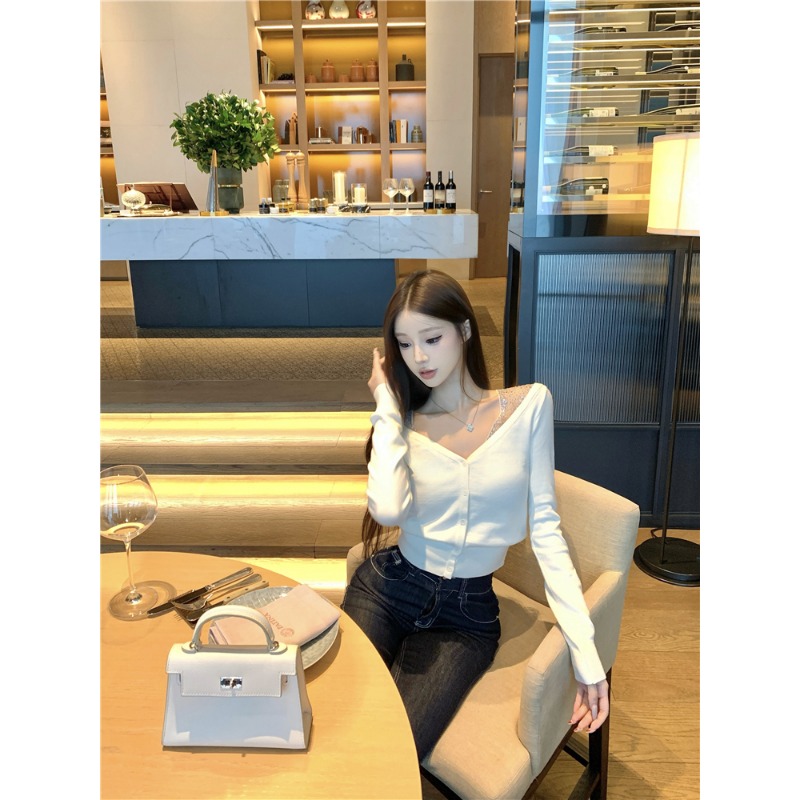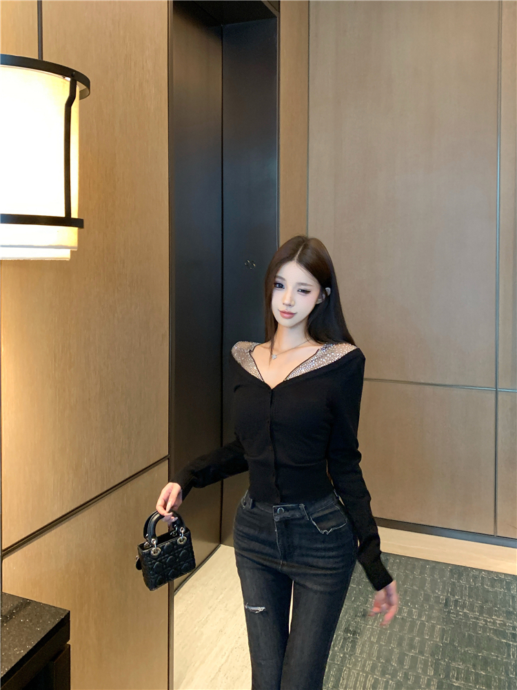Fake two pieces of hot diamond knitted sweaters