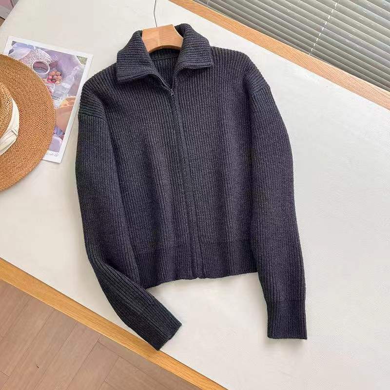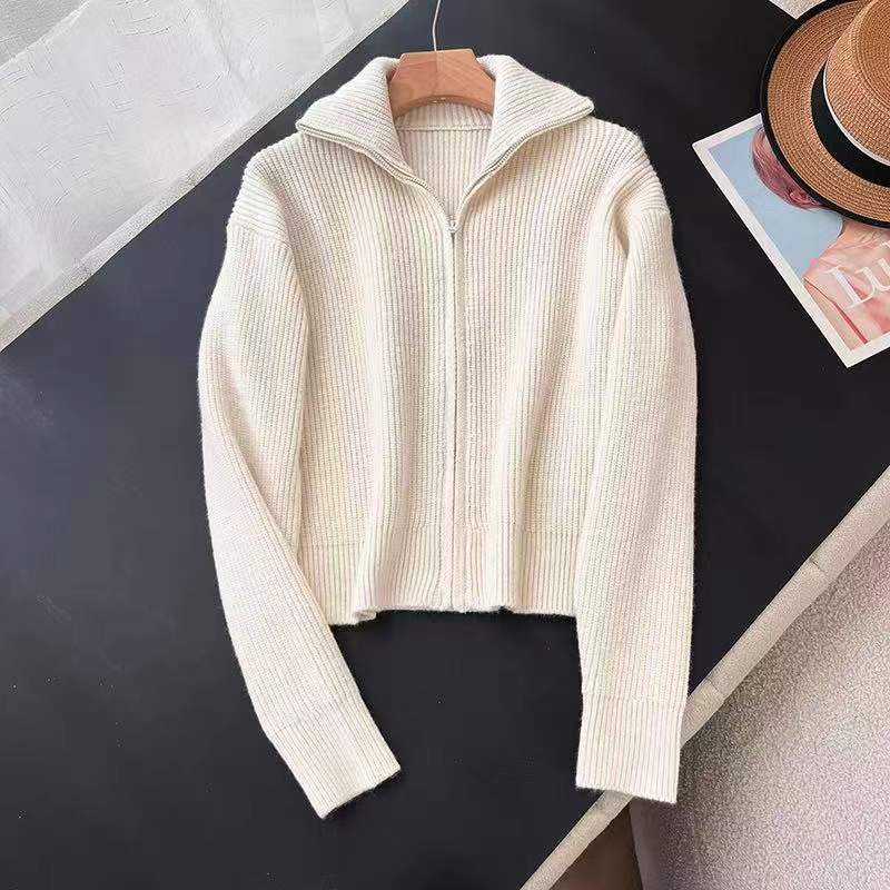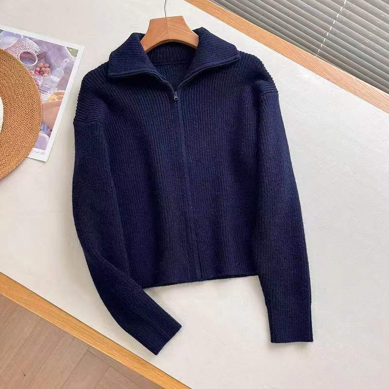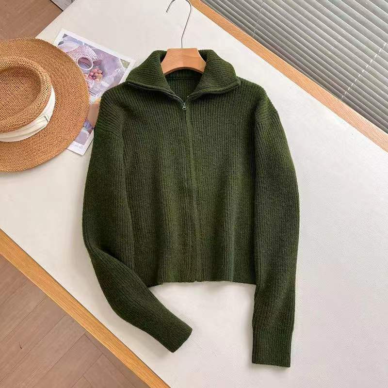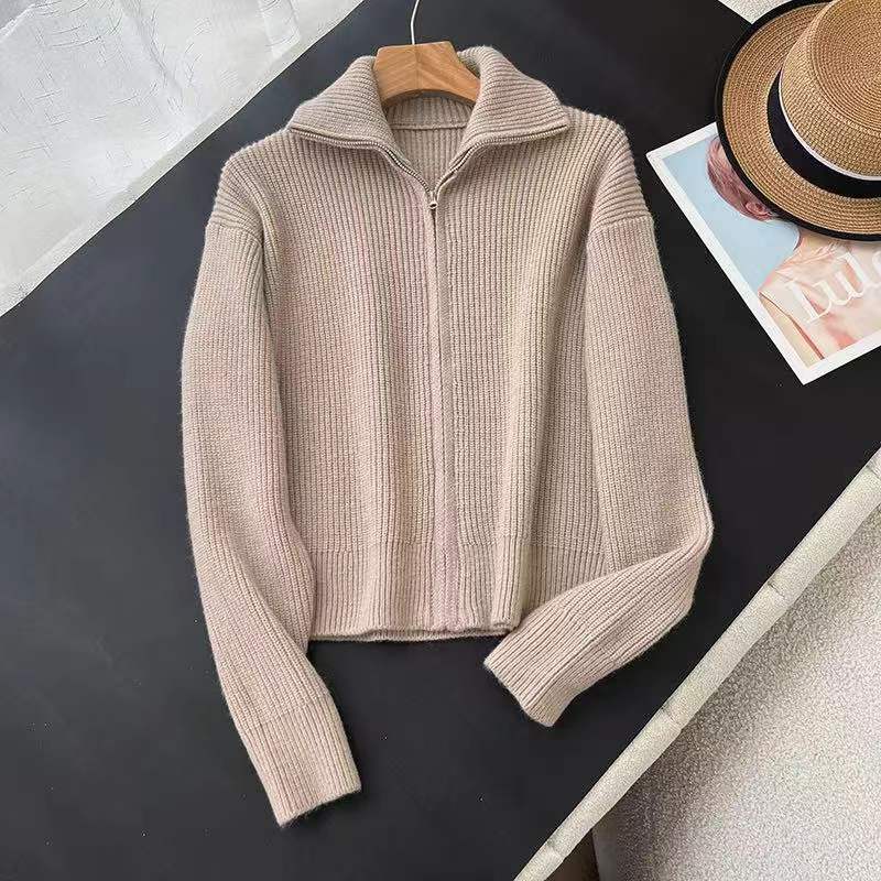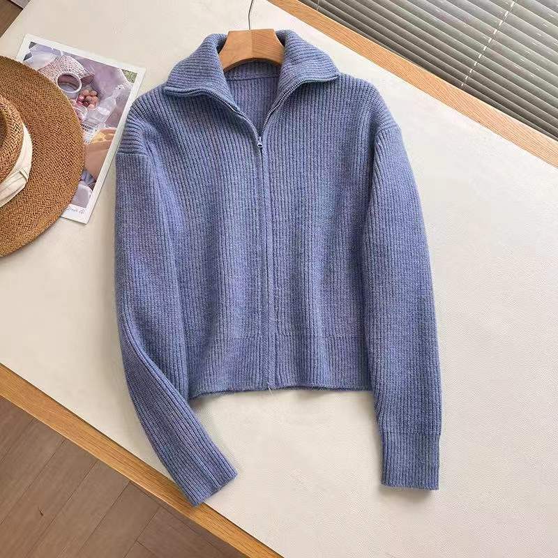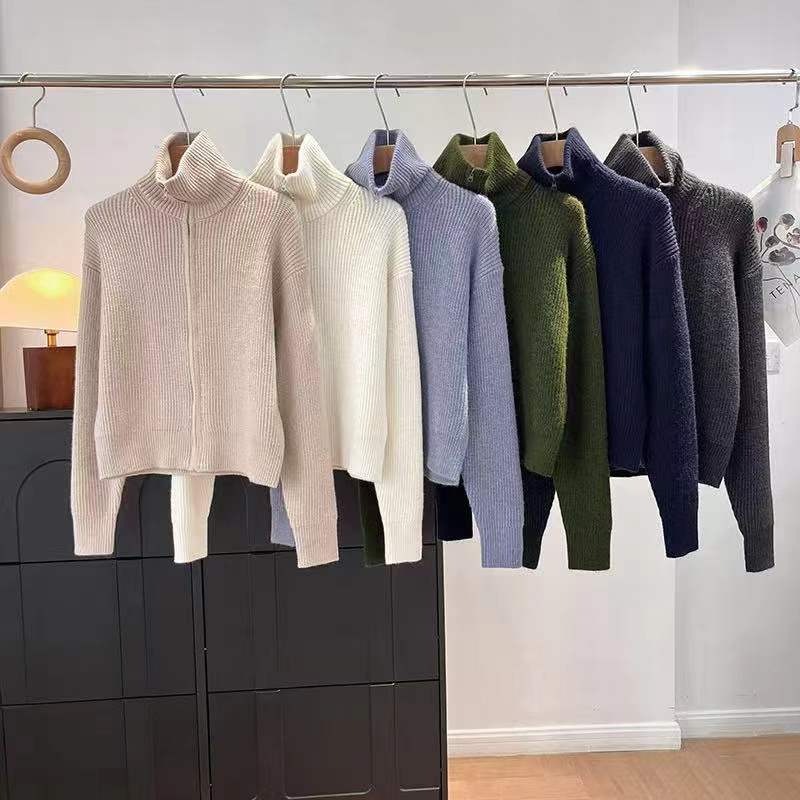Fall/Winter Women's Souffle Zipper Turtleneck Sweater Knitted Cardigan