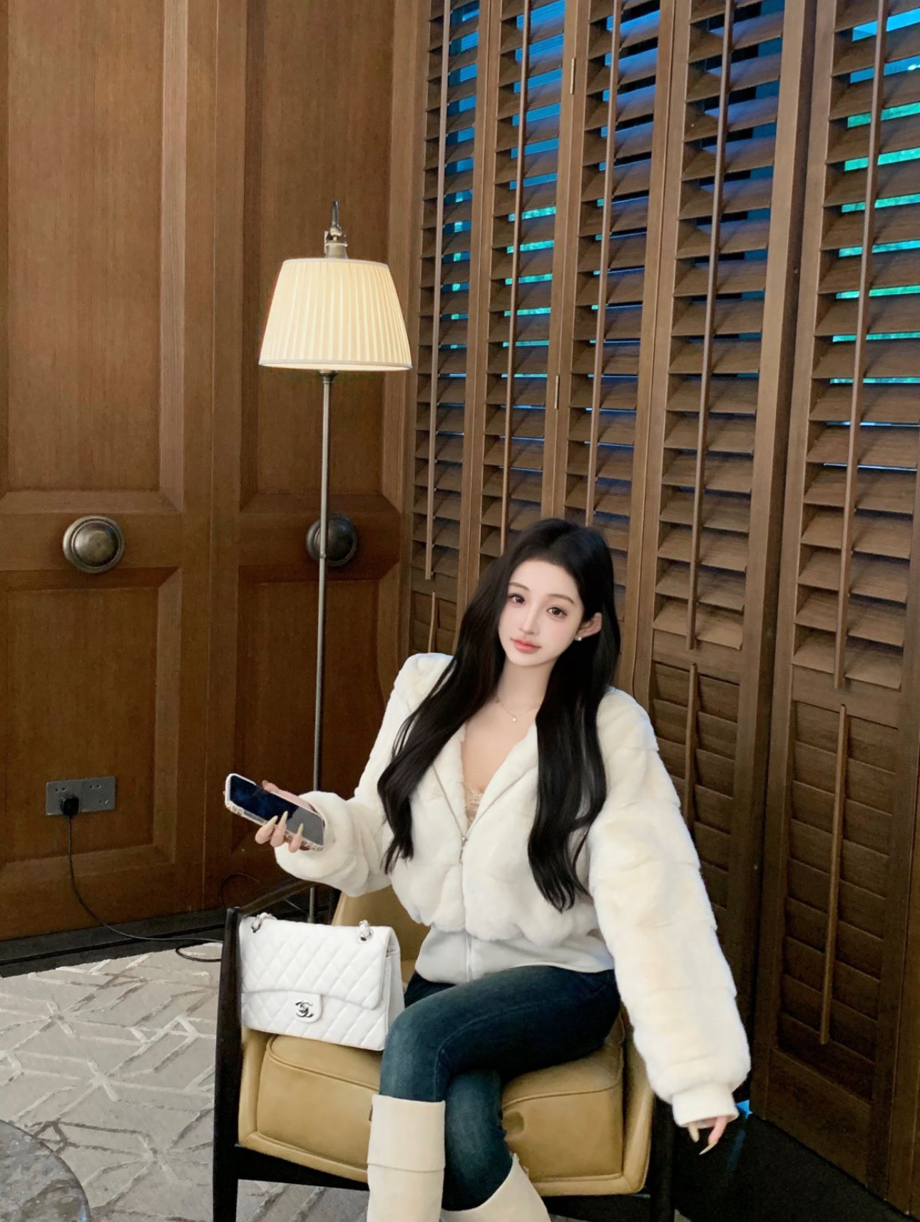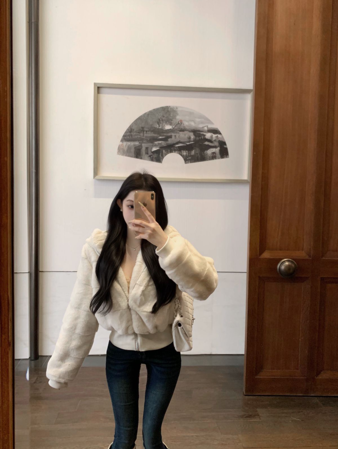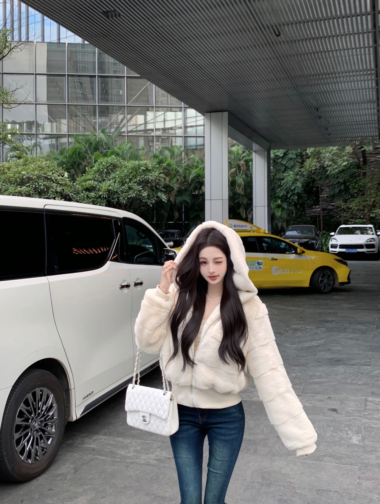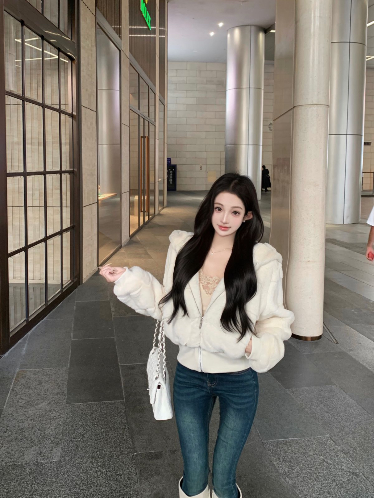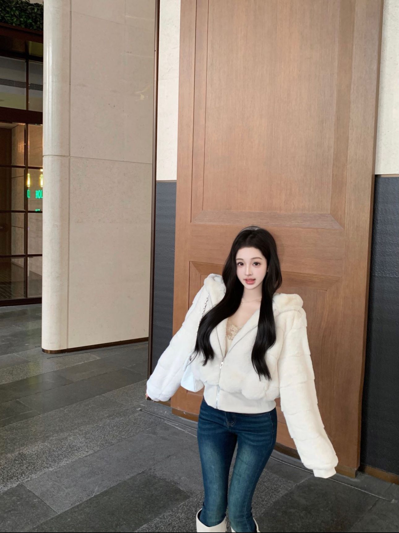 Fashionable and versatile temperament zipper hooded Soft plush jacket