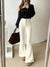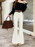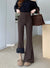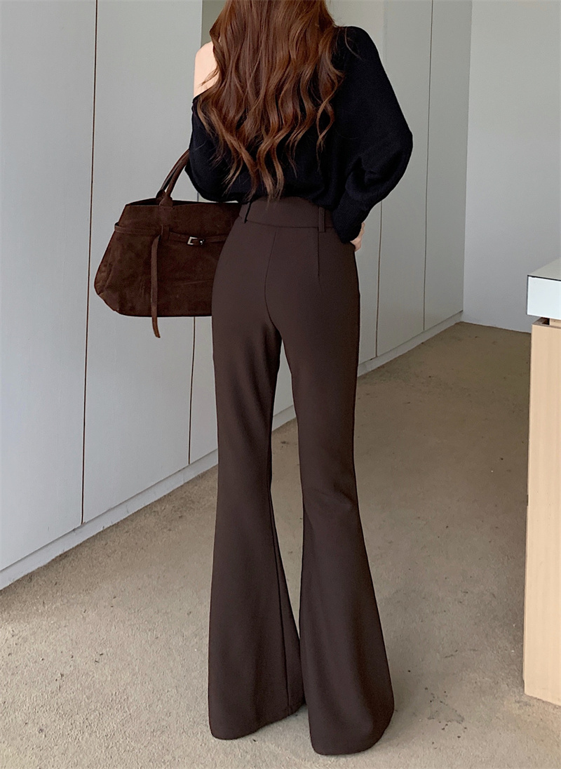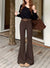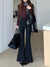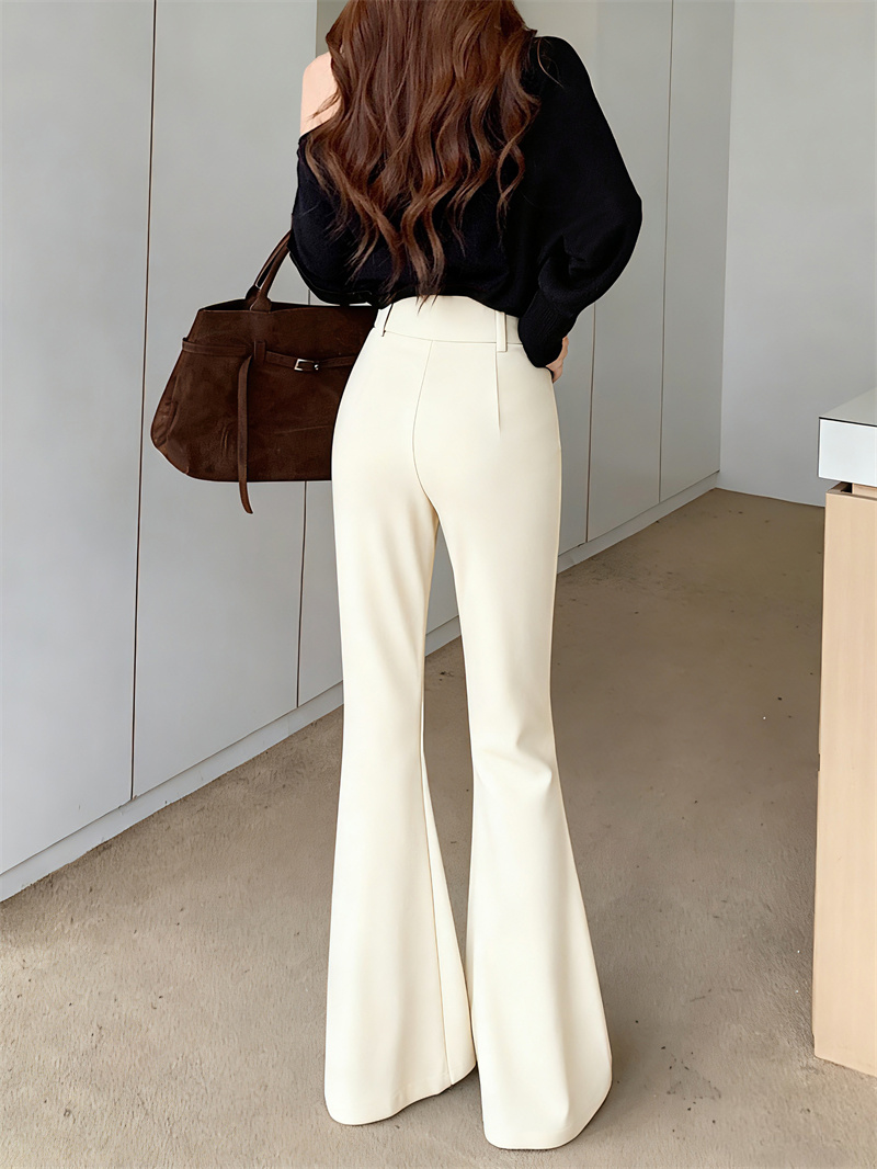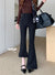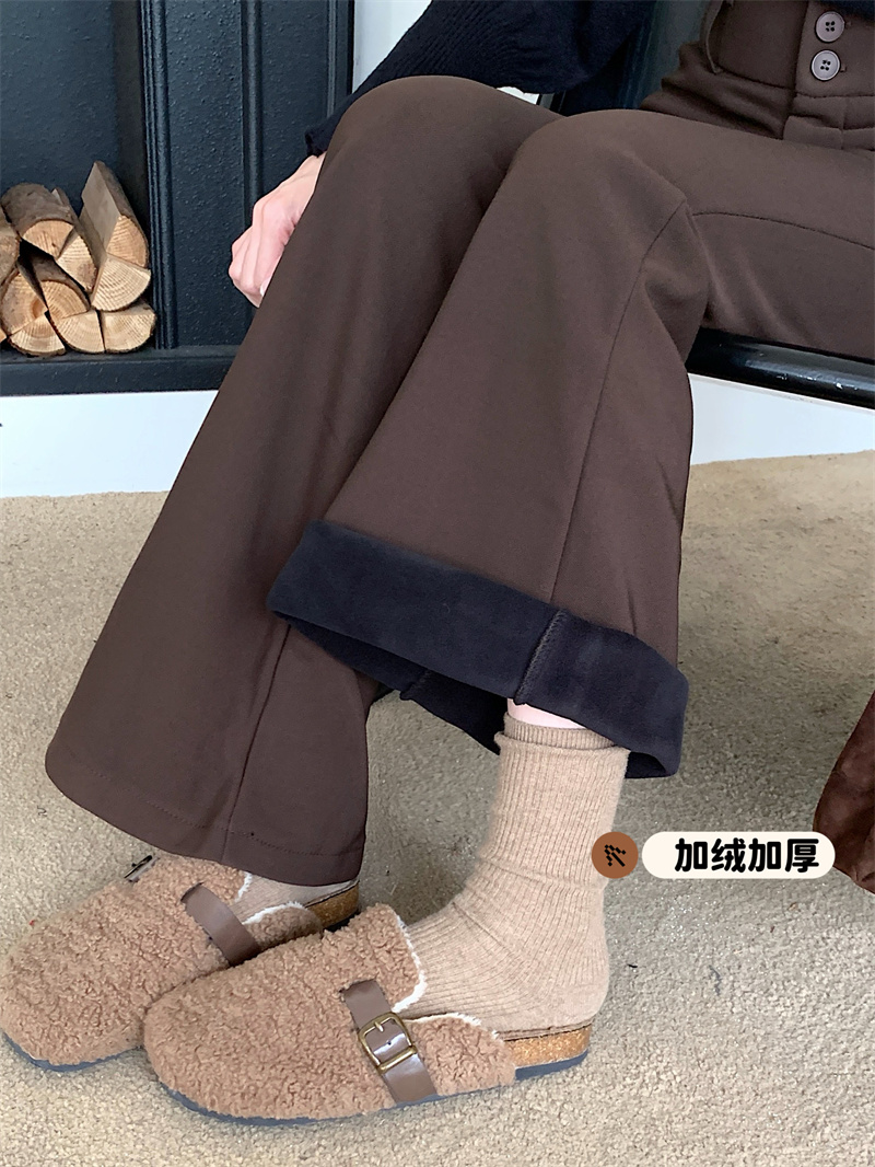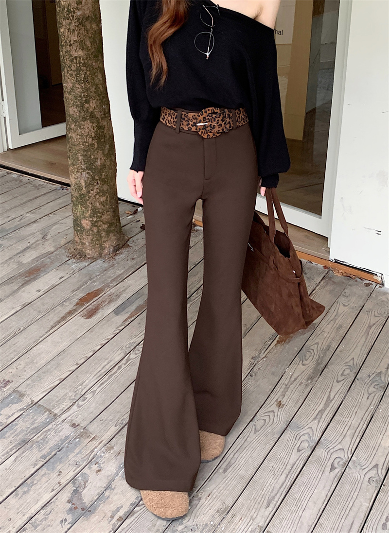 Fleece thickened bootcut slacks horseshoe pants, black floor-length flared trousers with belt