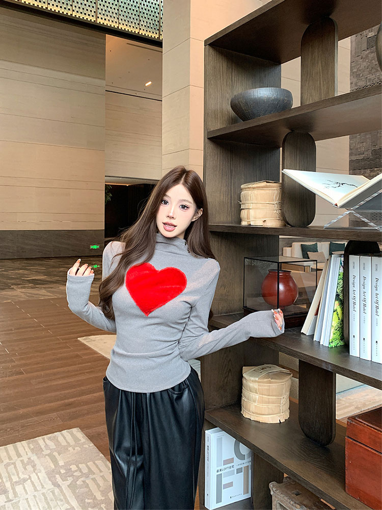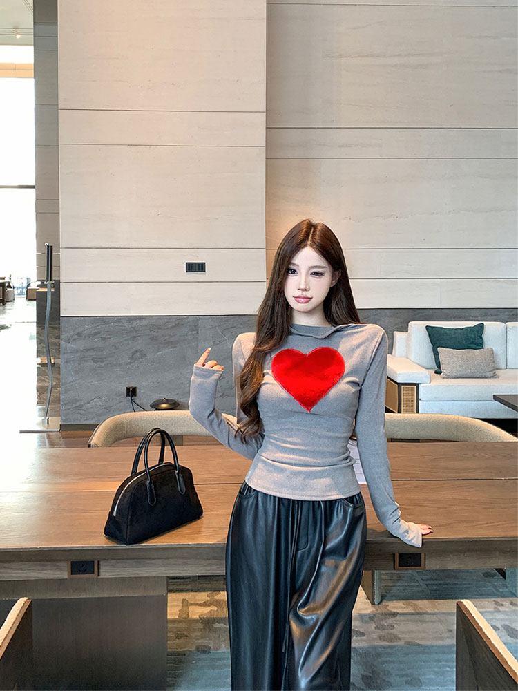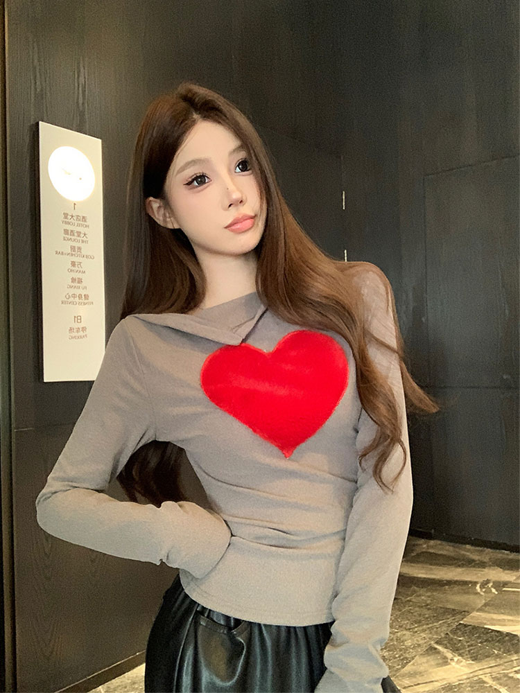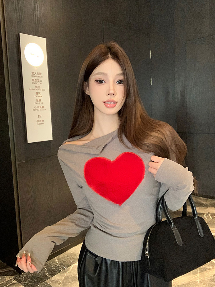 Gray love brushed long sleeve T-shirt b