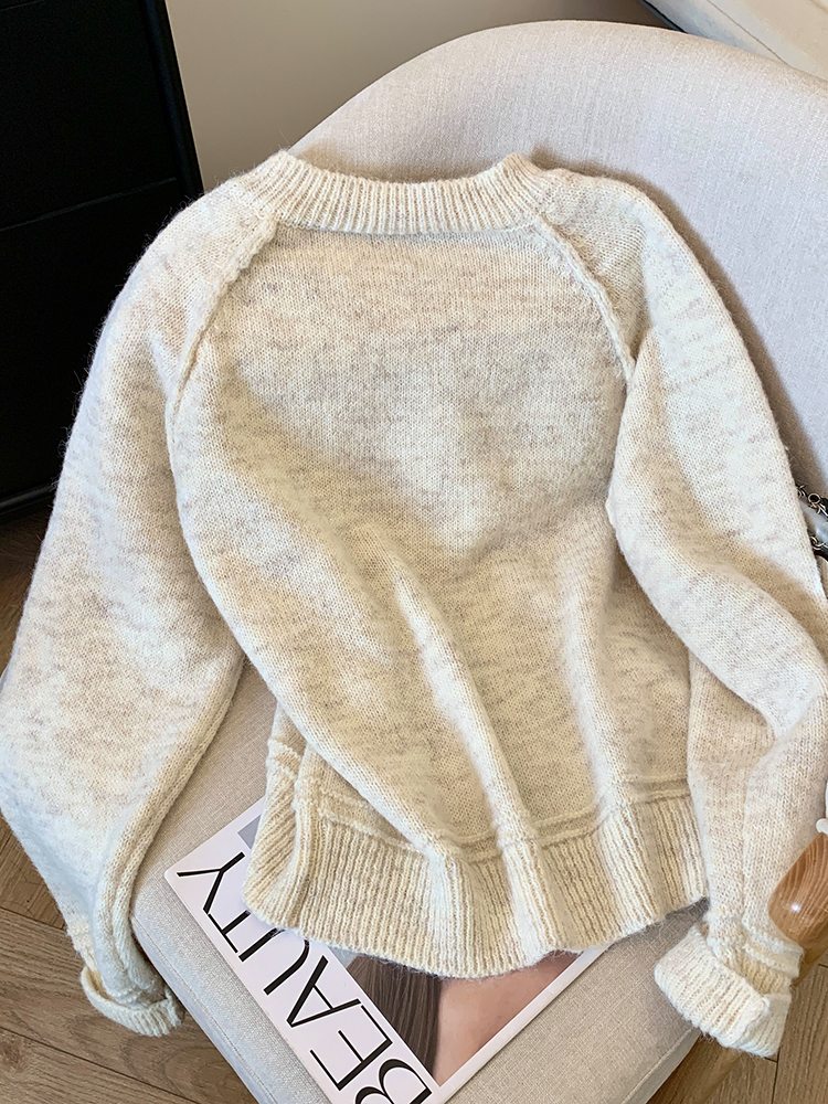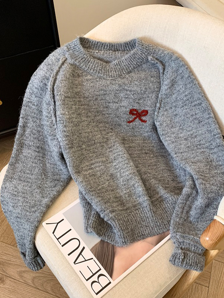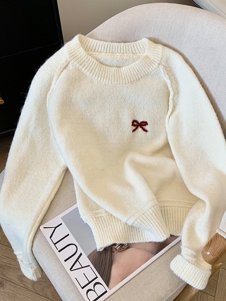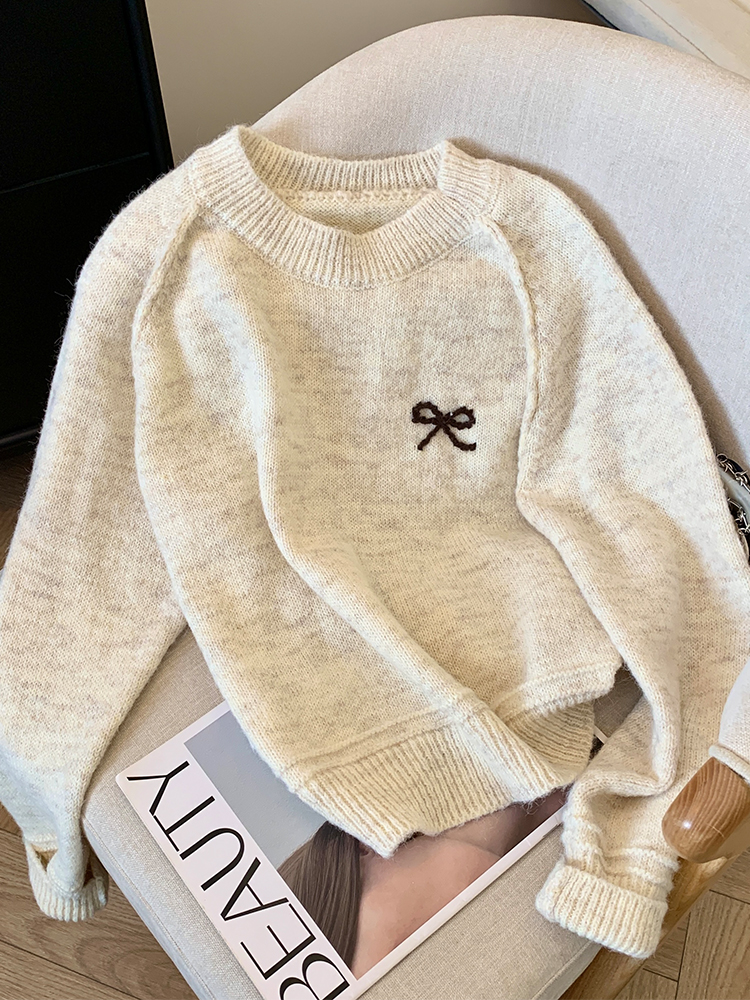 Korean gentle wind bow round neck slim long sleeve knit sweater
