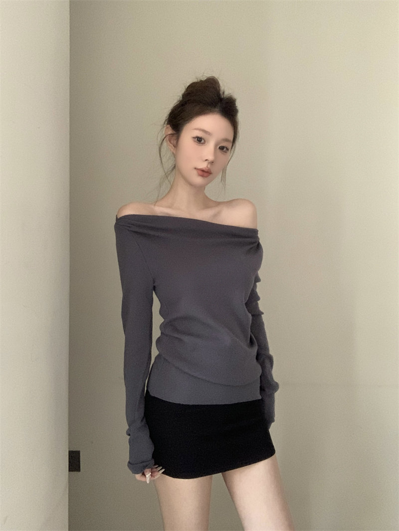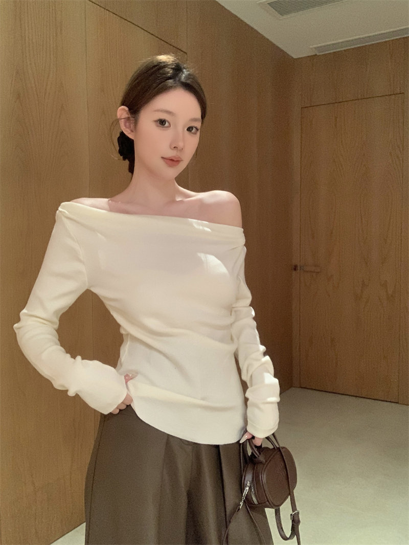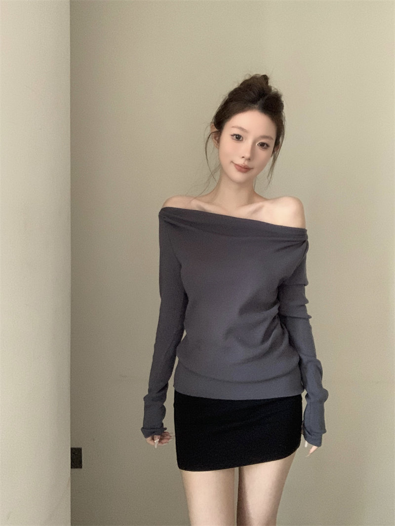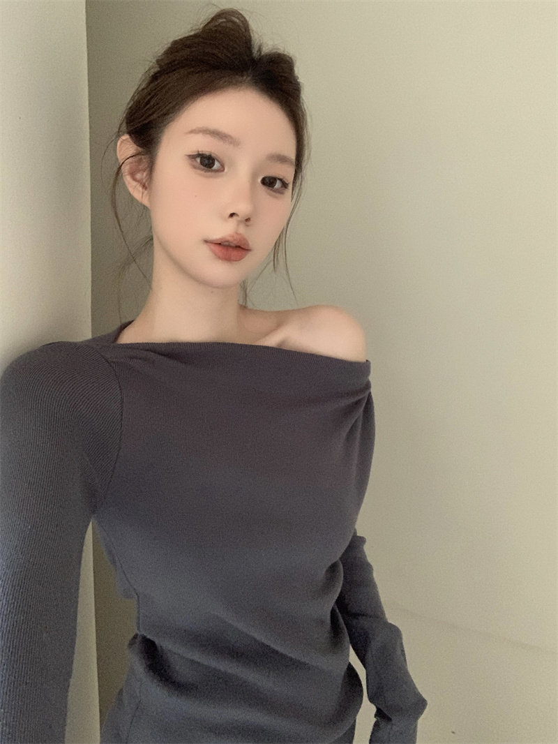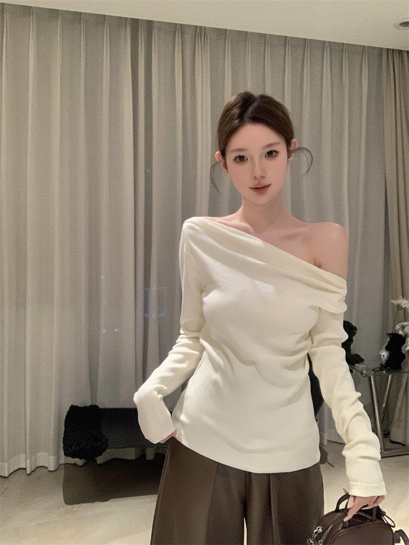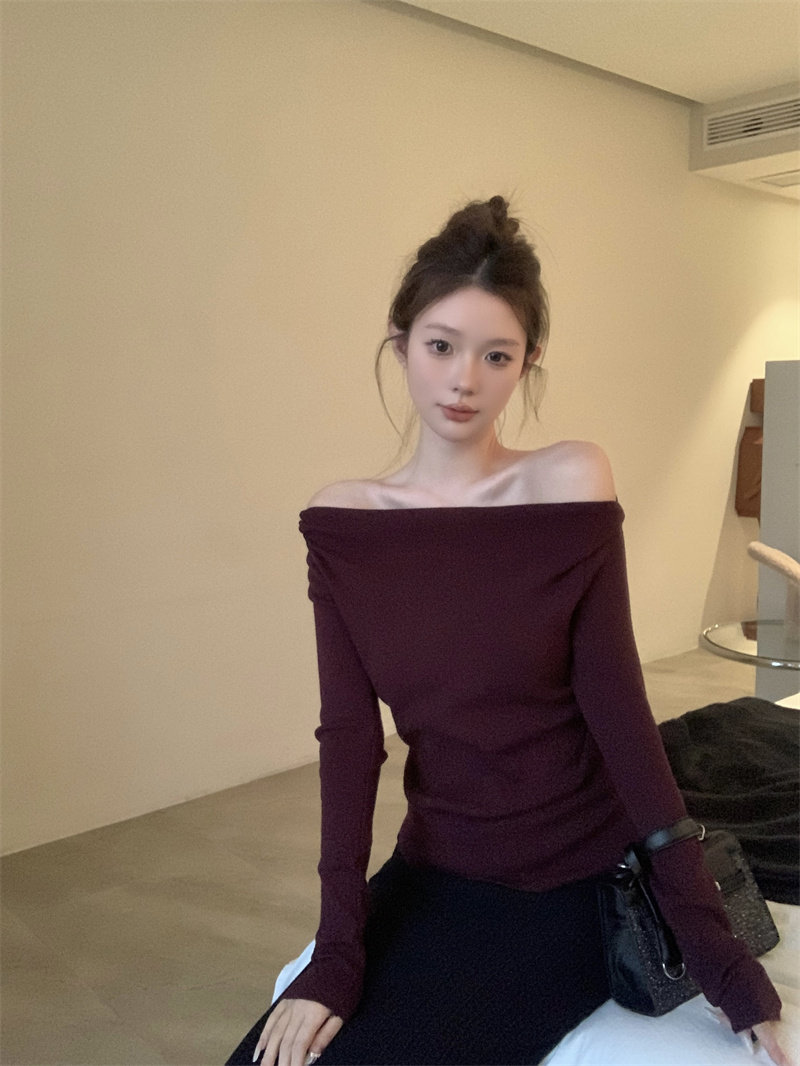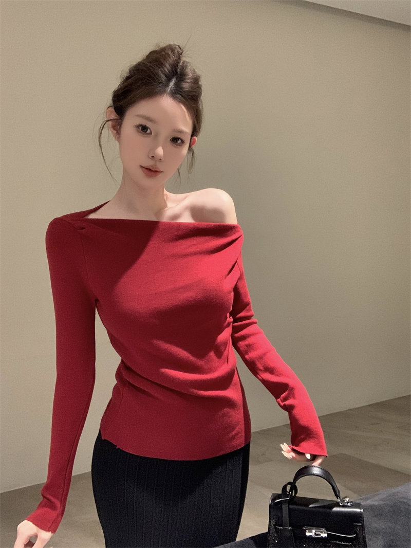 Korean niche Christmas cross-collar off-the-shoulder red knitted sweater