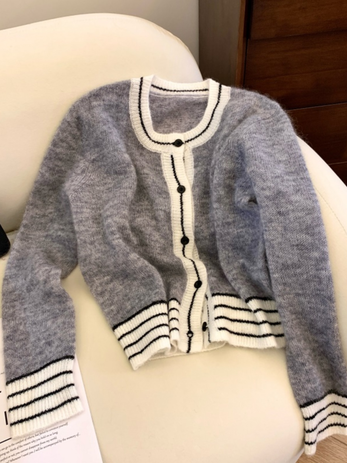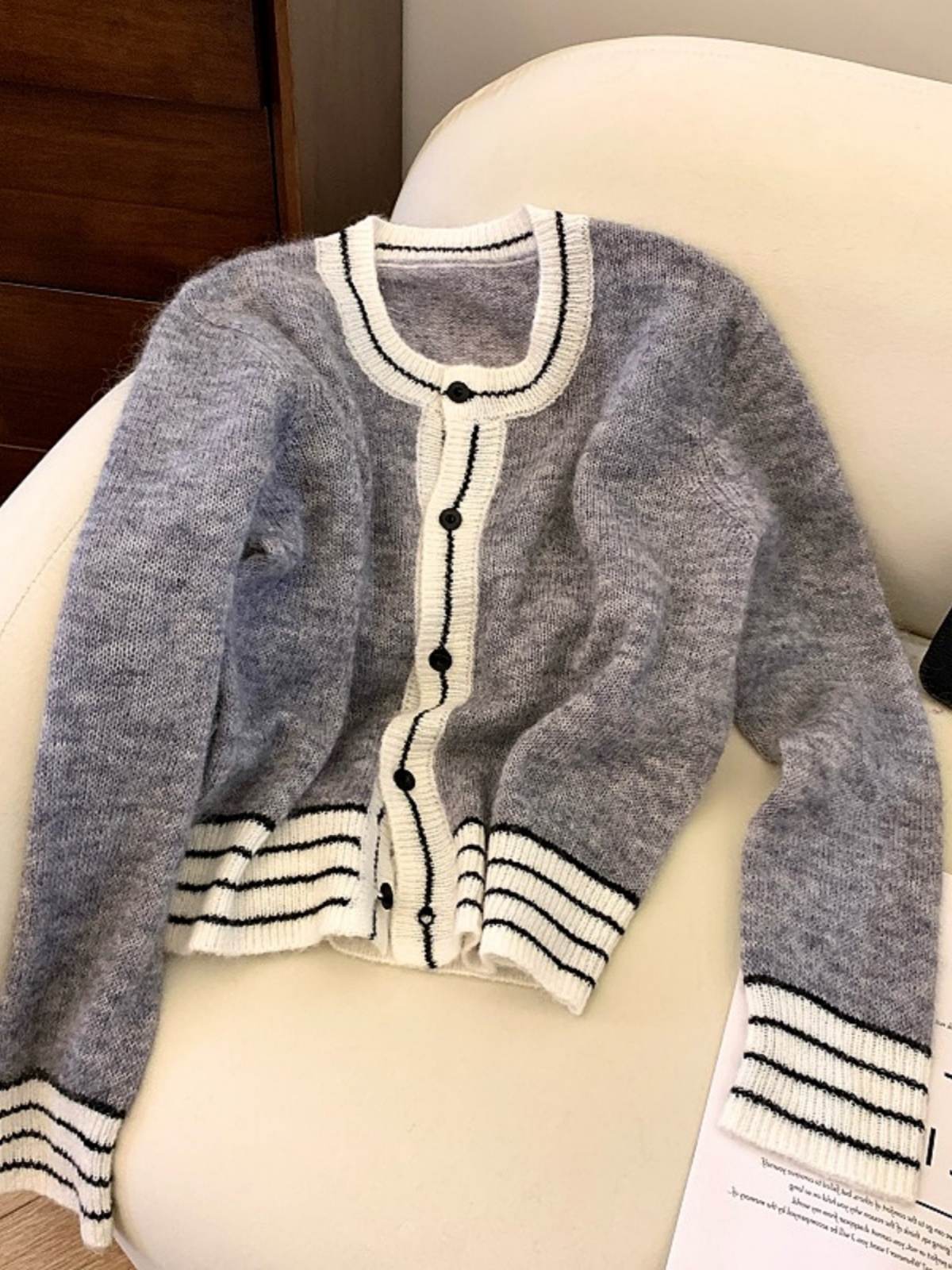 Korean style contrasting striped cardigan