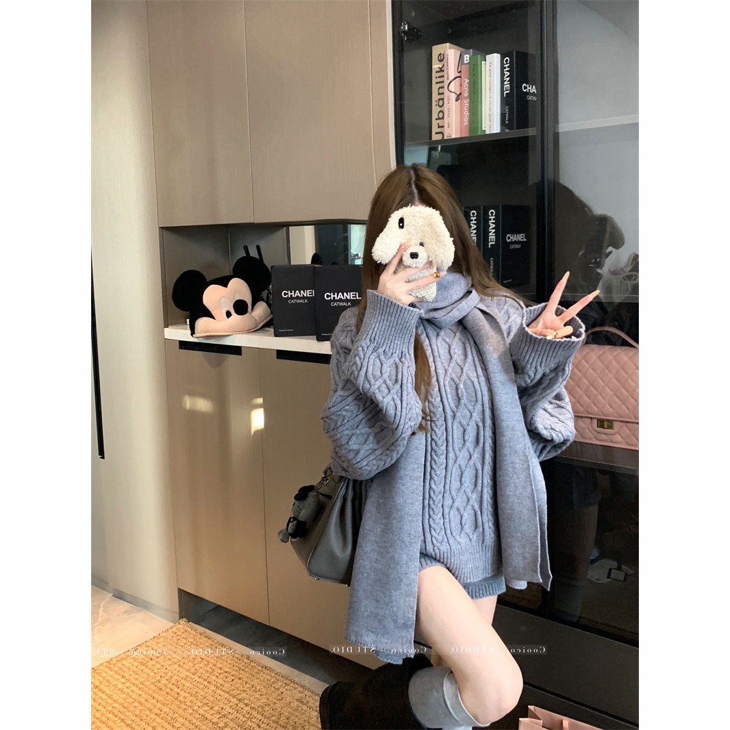 Korean version of lazy wind soft waxy twist pullover thickened sweater
