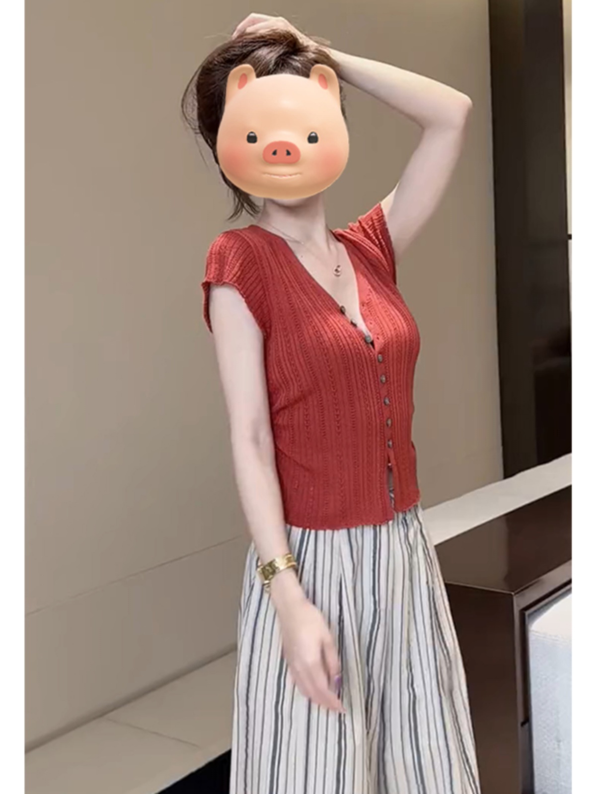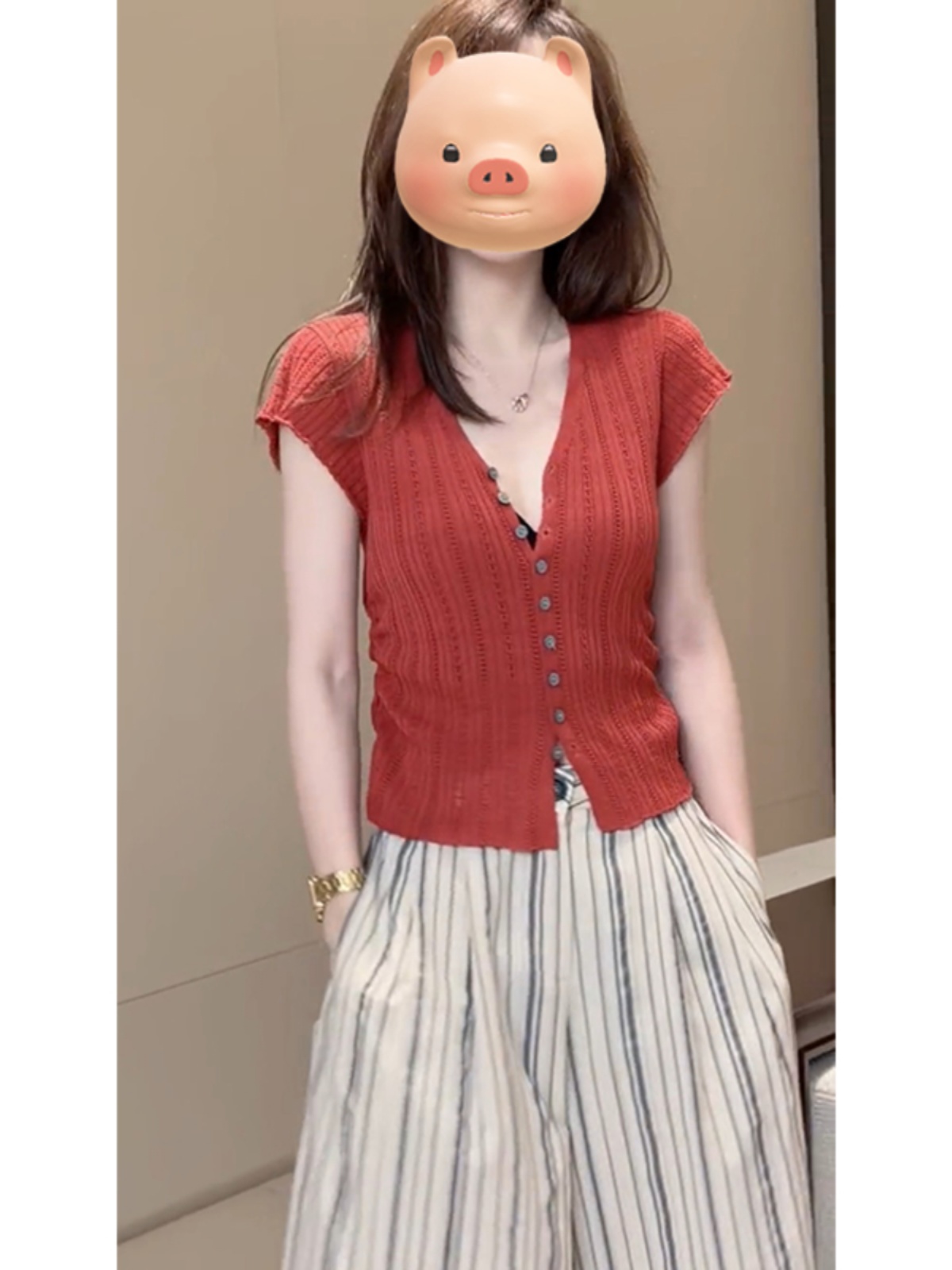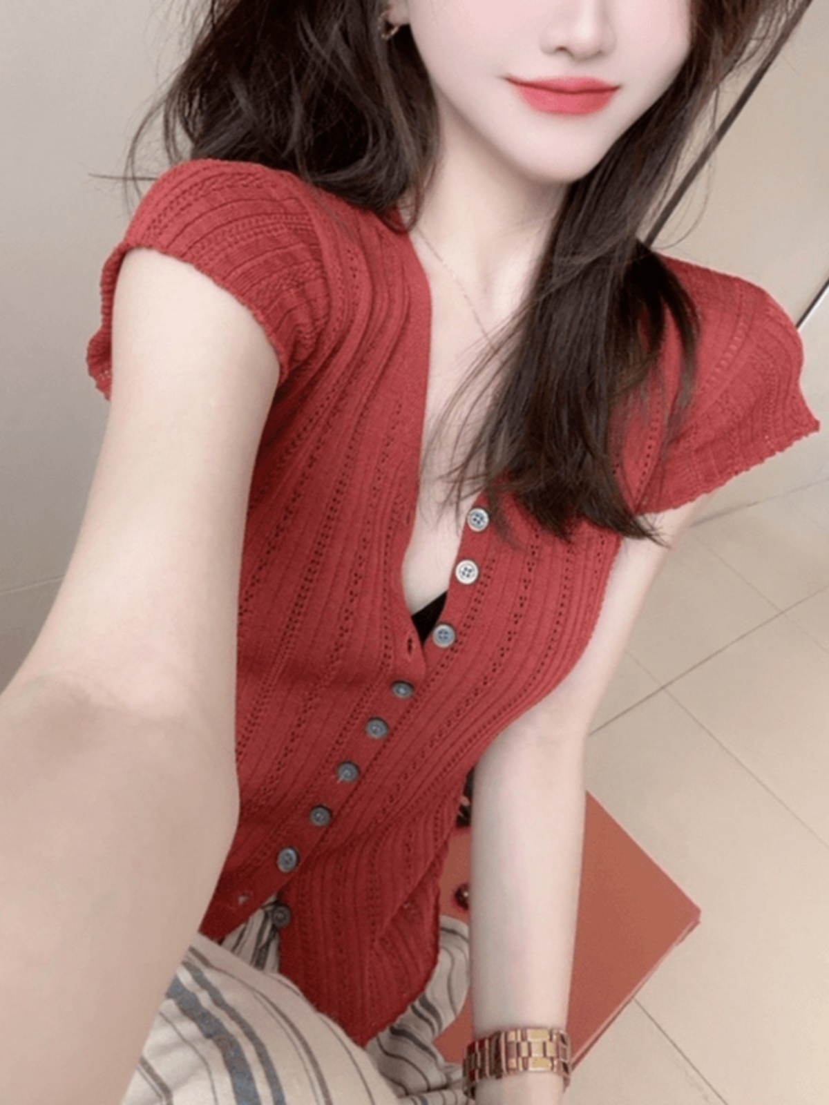 Korean version ofV-neck hollow short-sleeve knitted cardigan