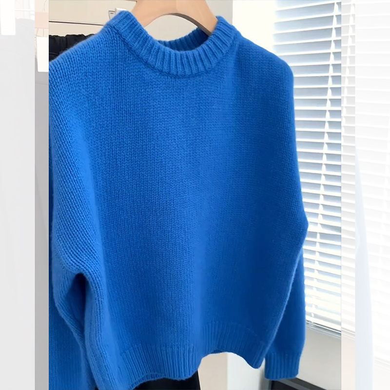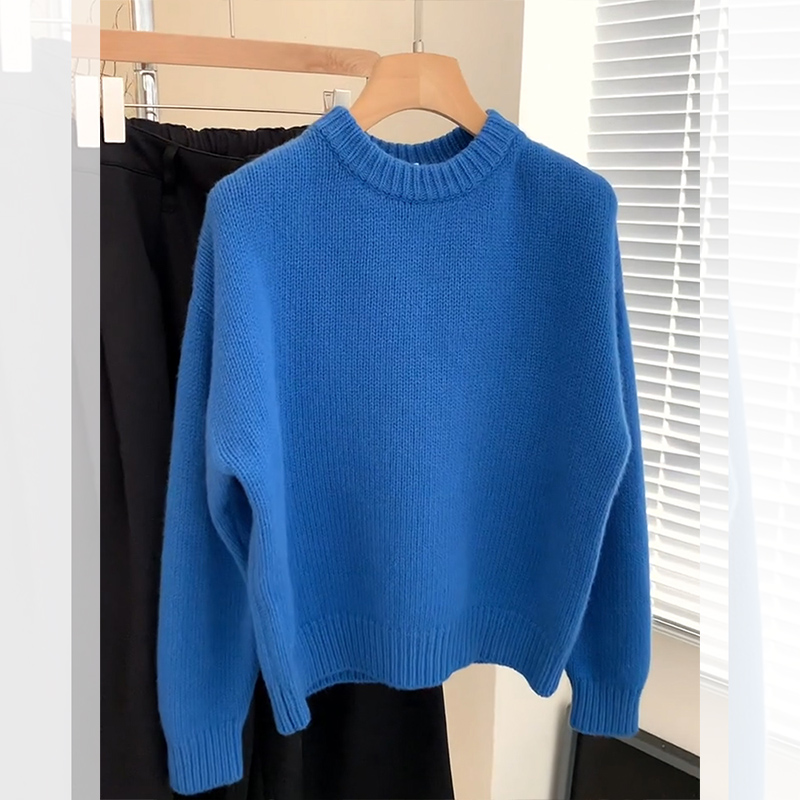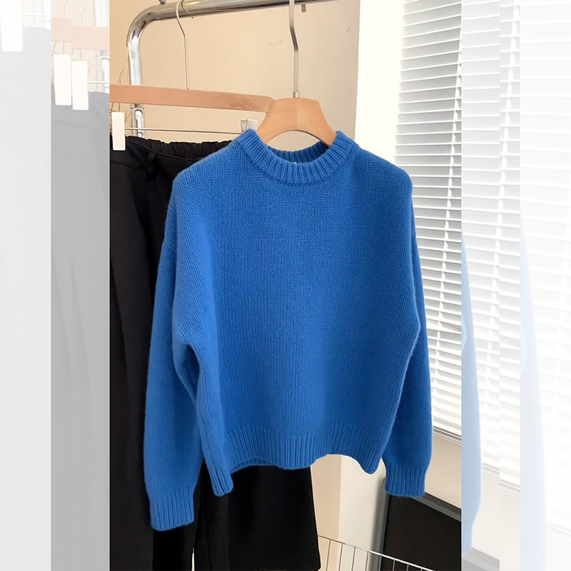 Lazy high-end blue raccoon fleece pullover loose soft knitted sweater