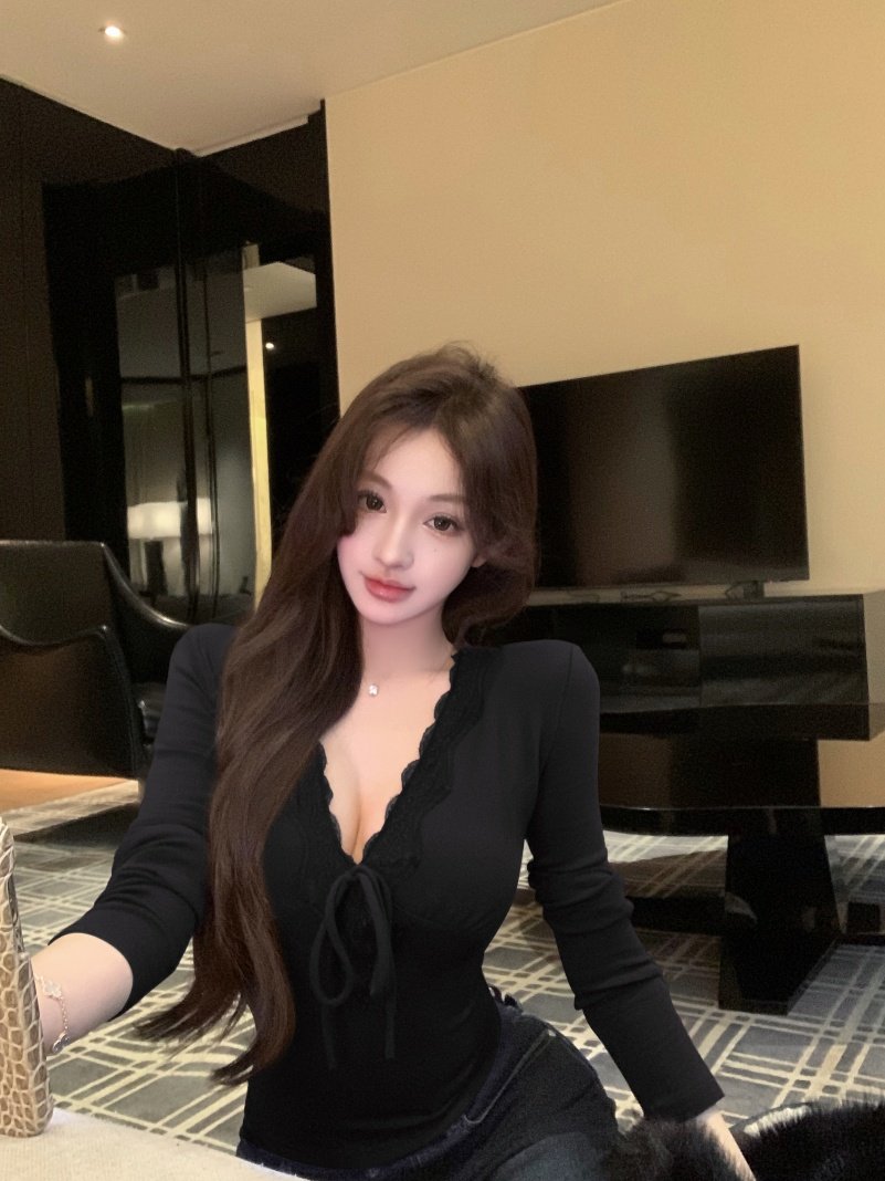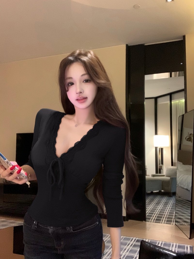 Niche design sense lace edge long sleeve T-shirt