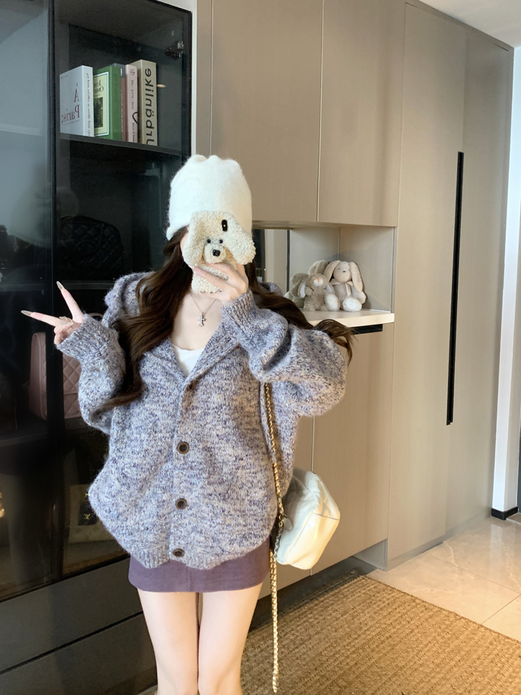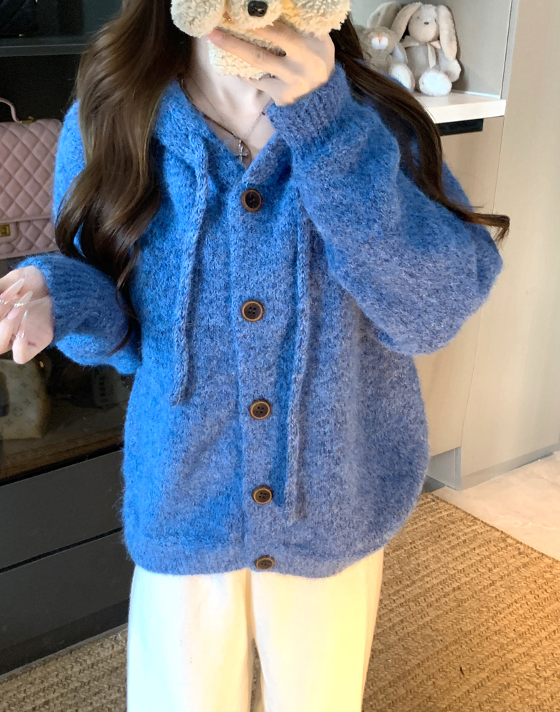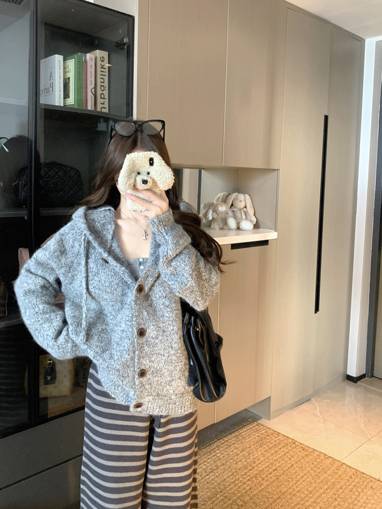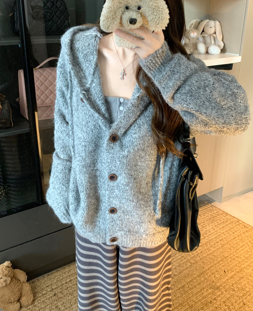 PPHOME gentle wind circle gauze hooded loose knit cardigan