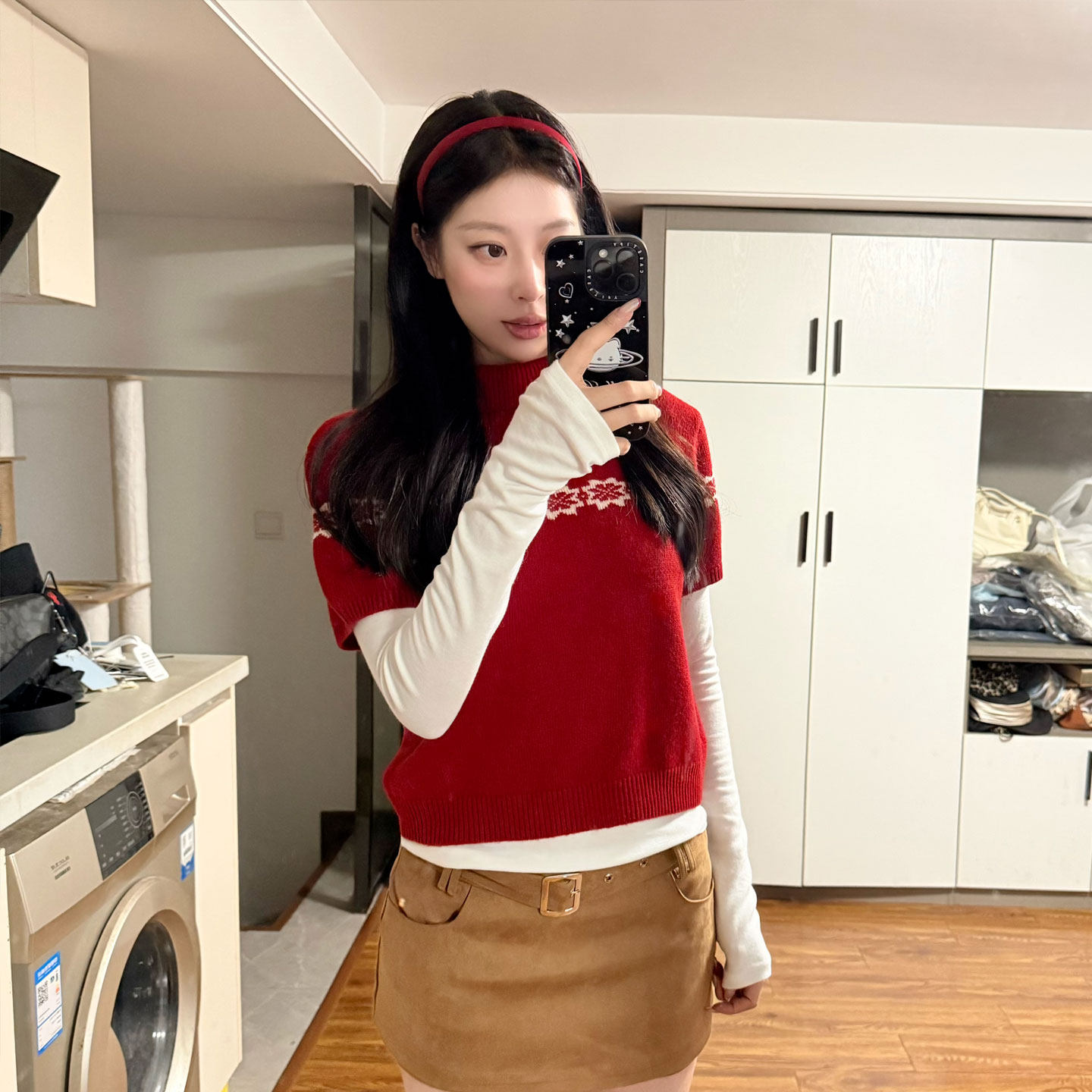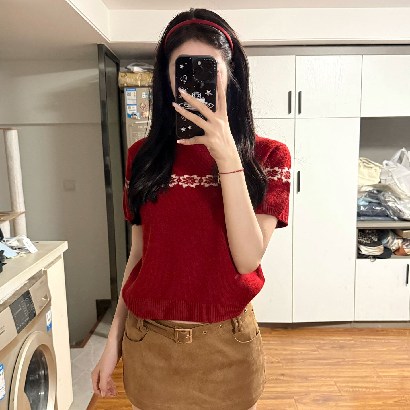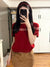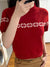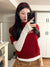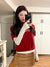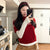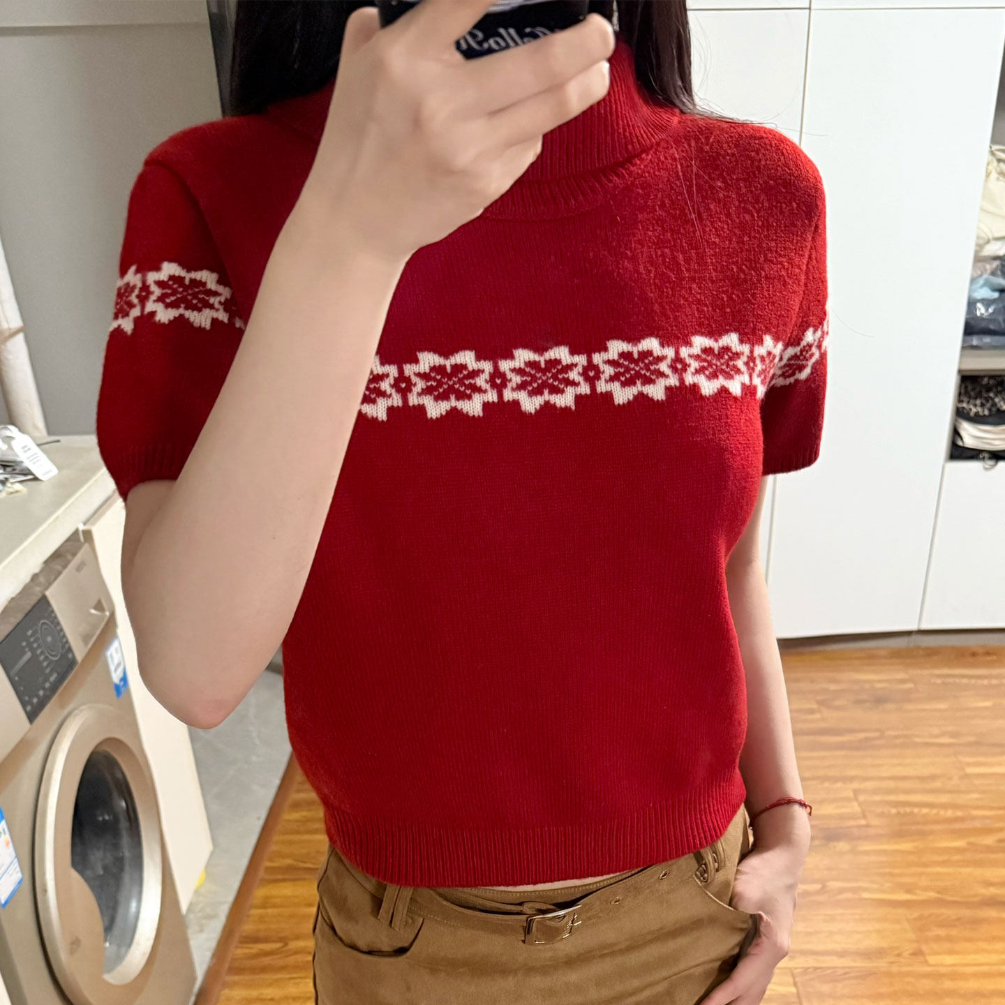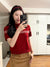 Red semi-turtleneck short-sleeved knitted sweater