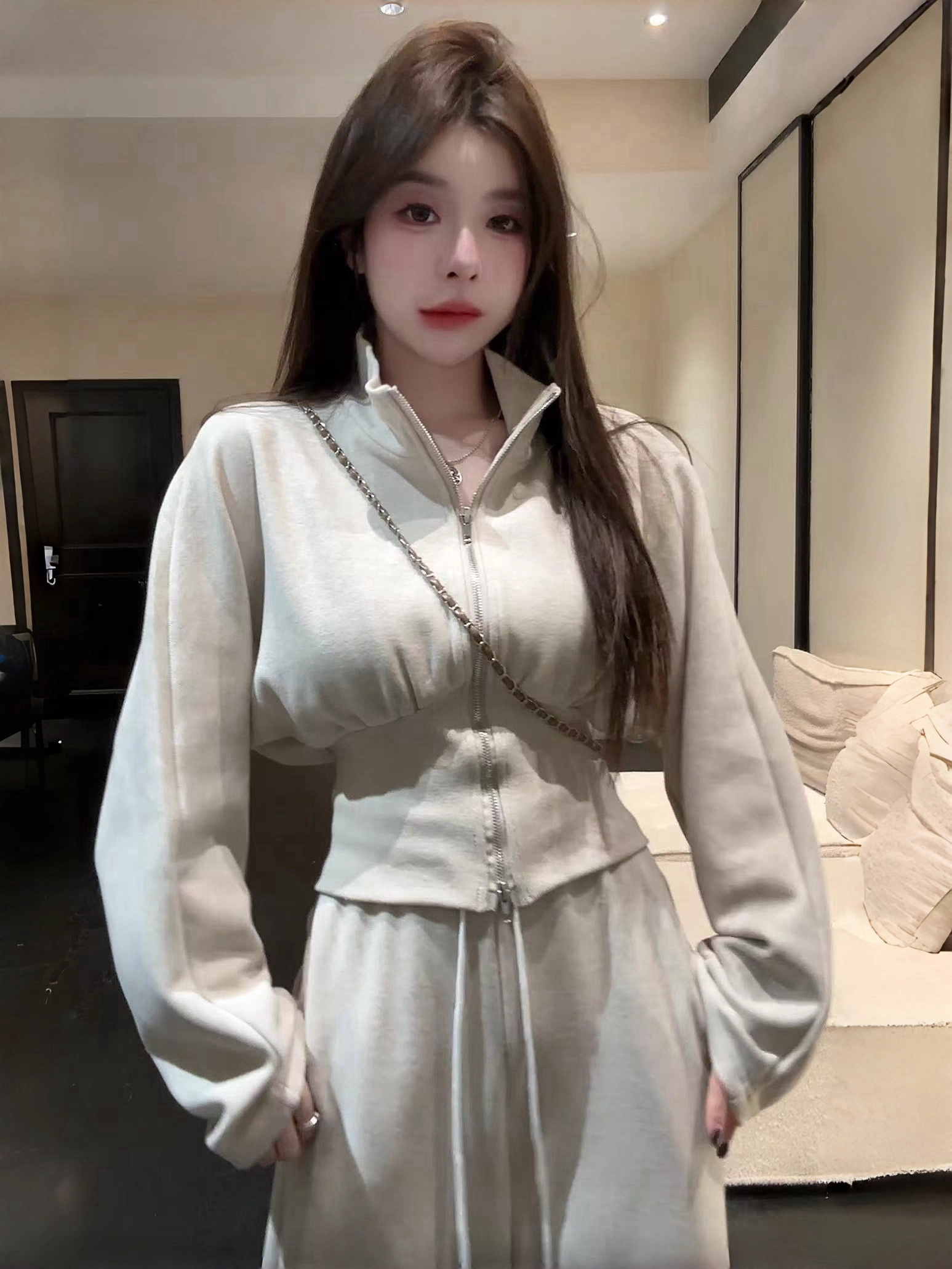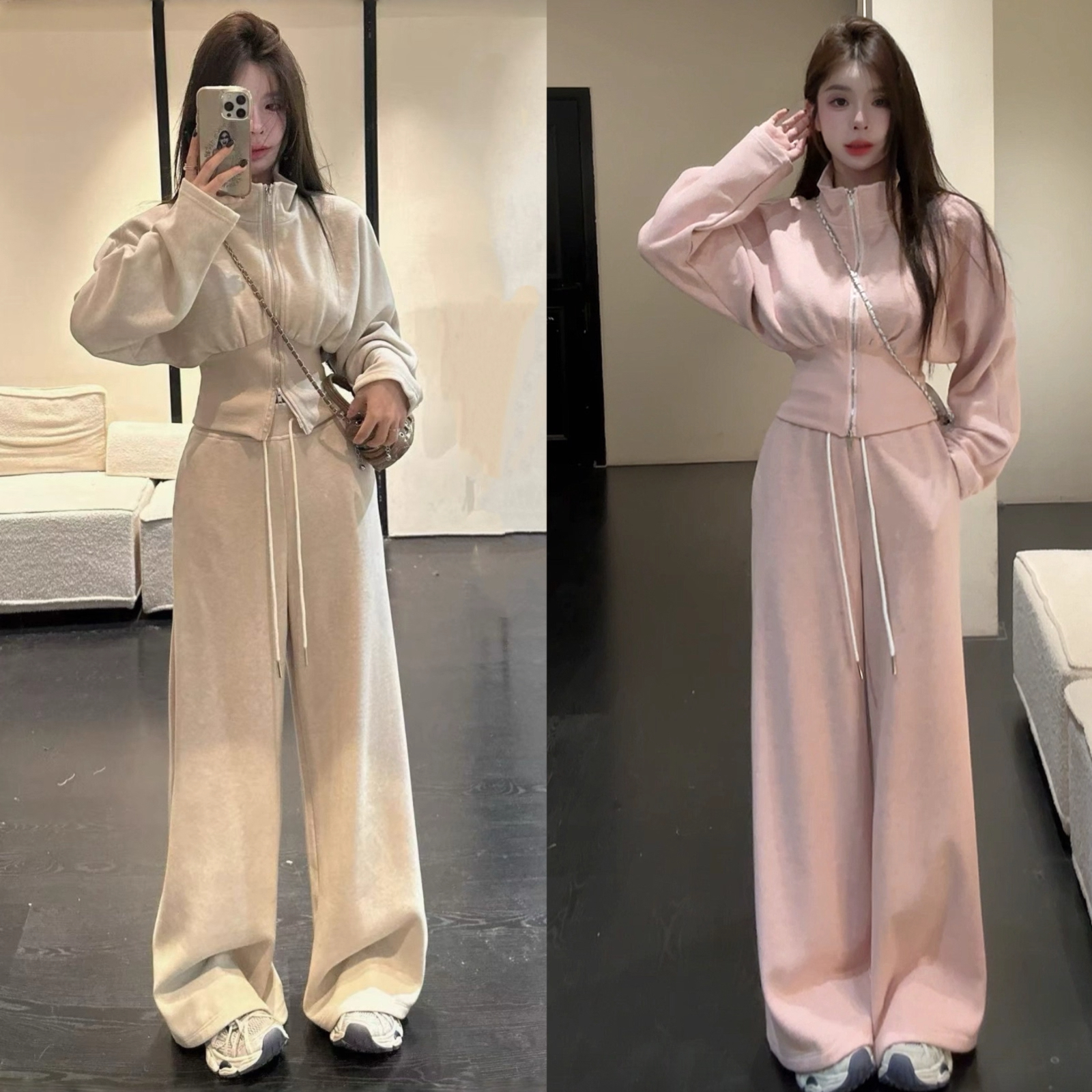 Set of Korean lazy fashion sports leisure fleece sweatshirt wide-leg pants two-piece set