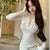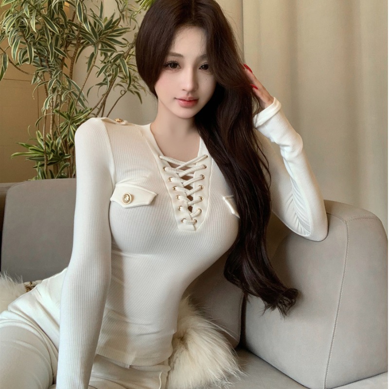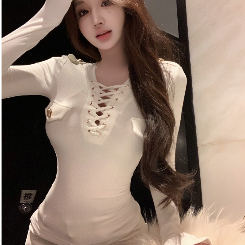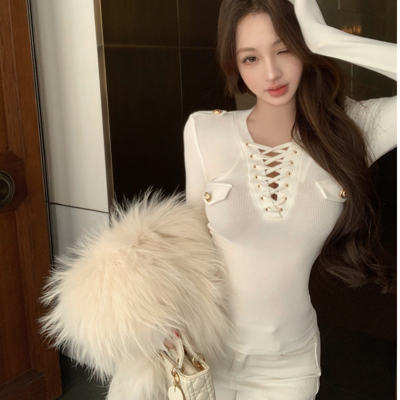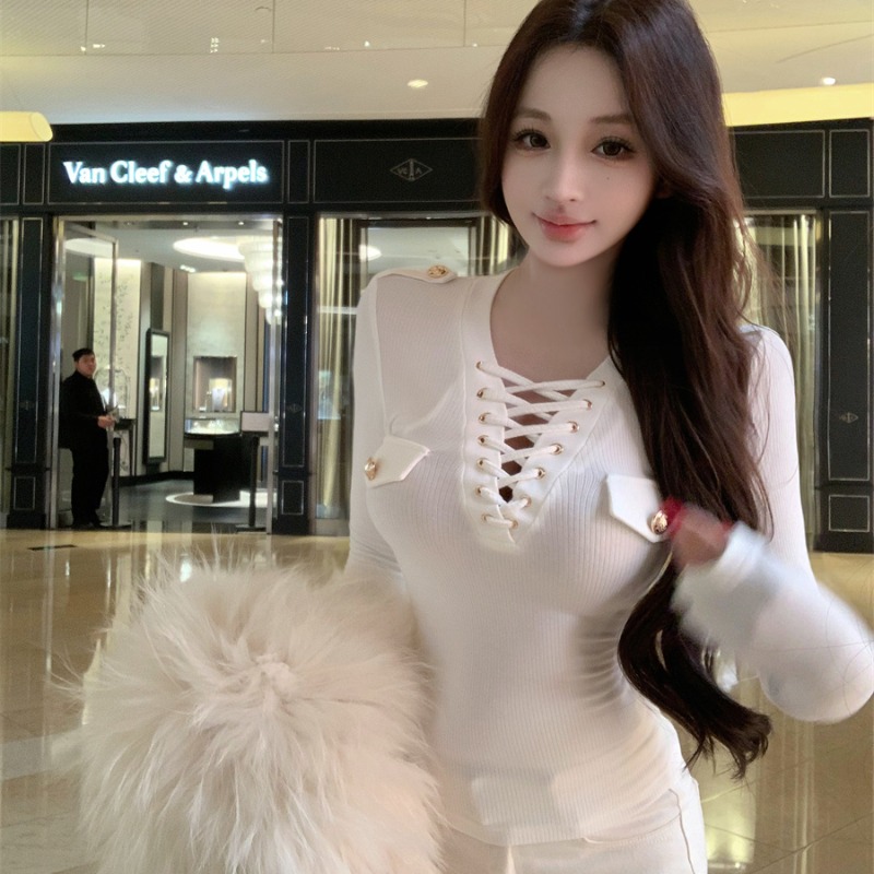 Sexy V-neck knitted sweater with metal buttons