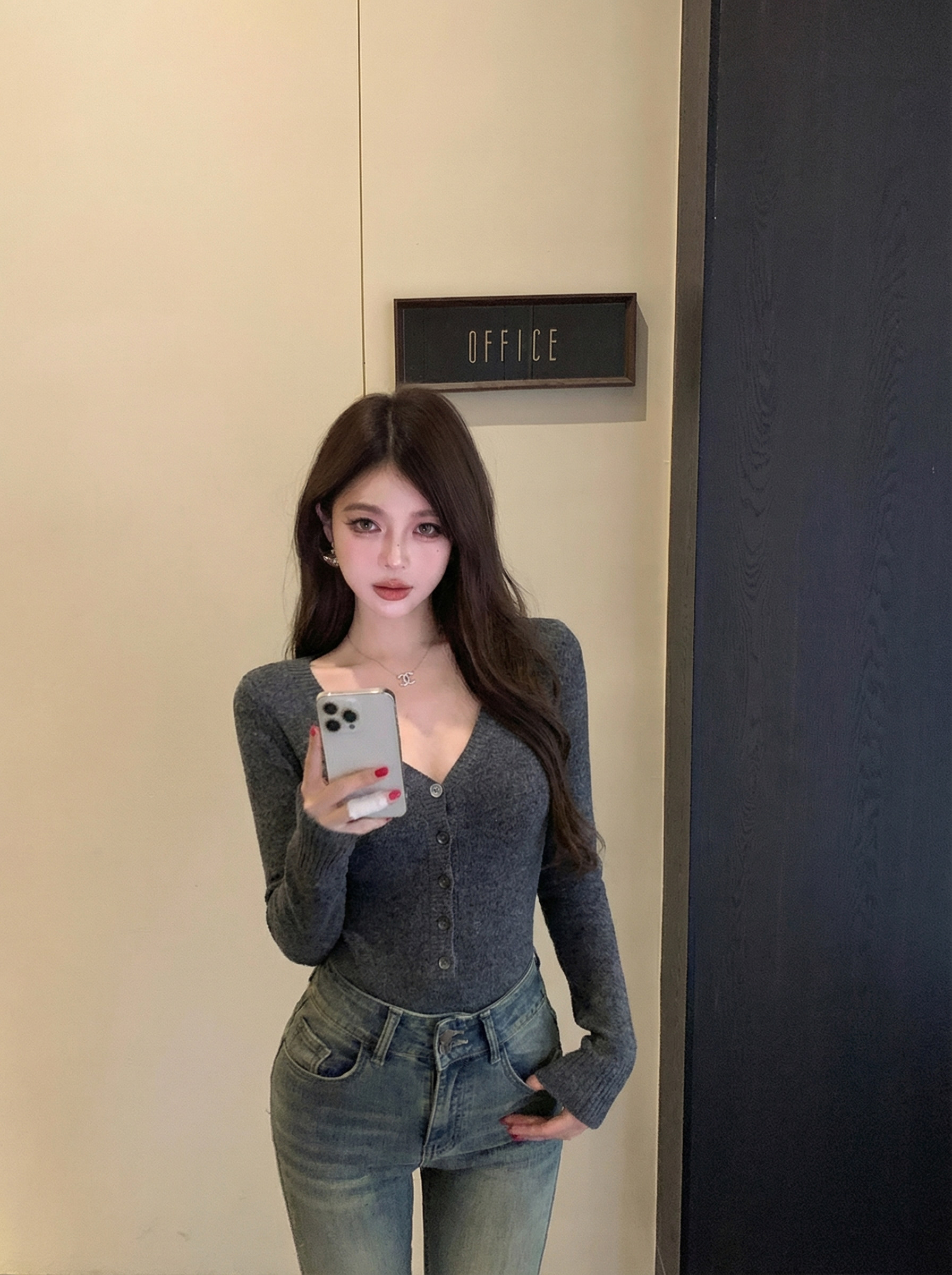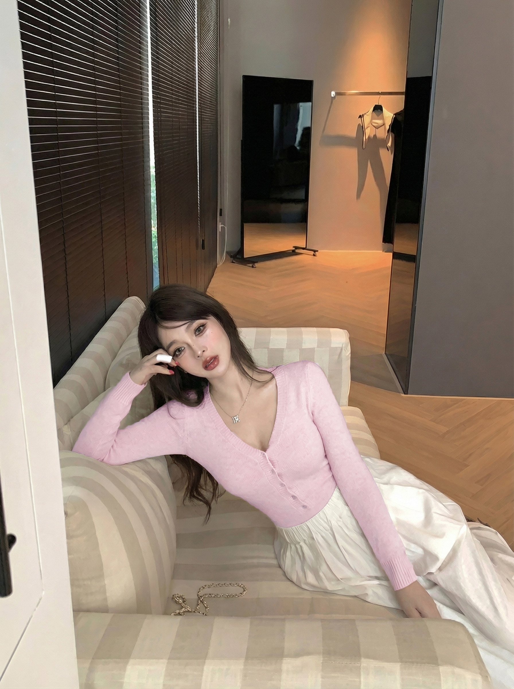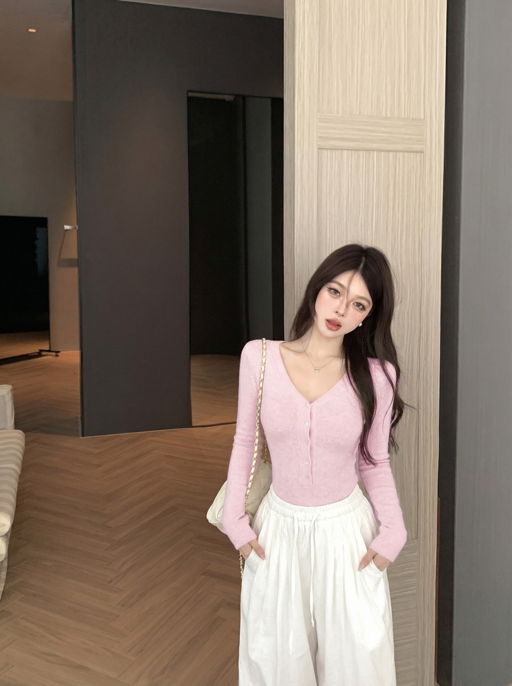 Solid color soft waxy V-neck knitted knit bodysuit