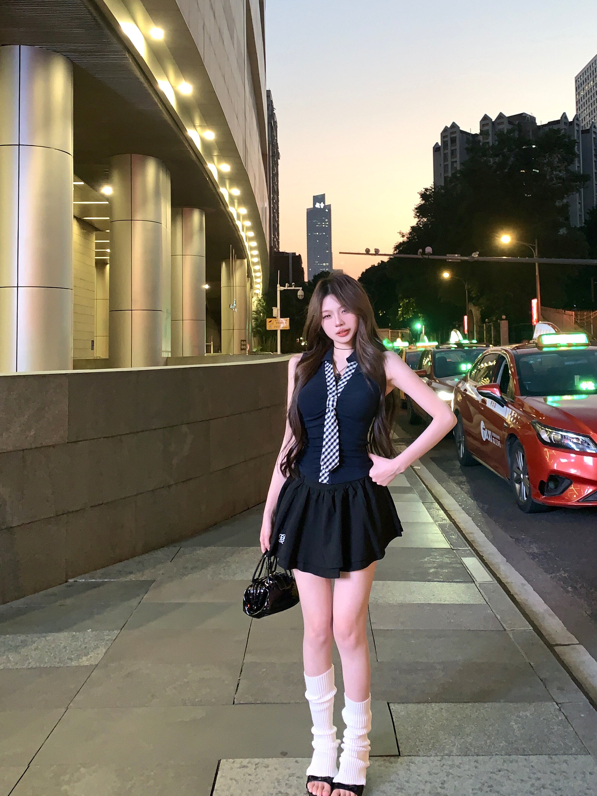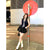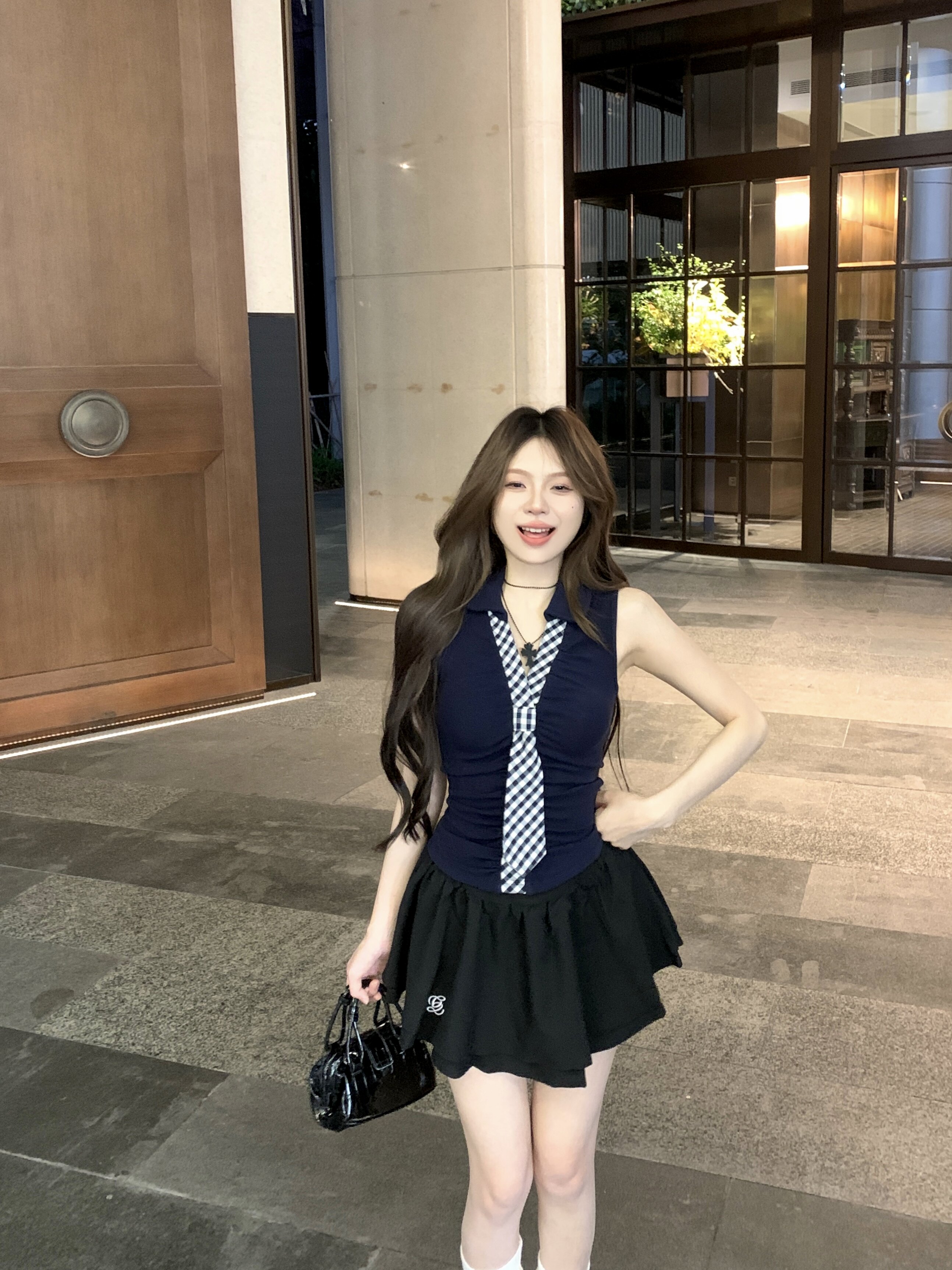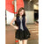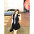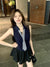 Spice girl style sleeveless tie T-shirt top women's summer suit black slimming A-line skirt skirt two-piece set