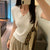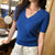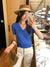 Summer beautiful blue V-neck cotton short-sleeved knitted sweater