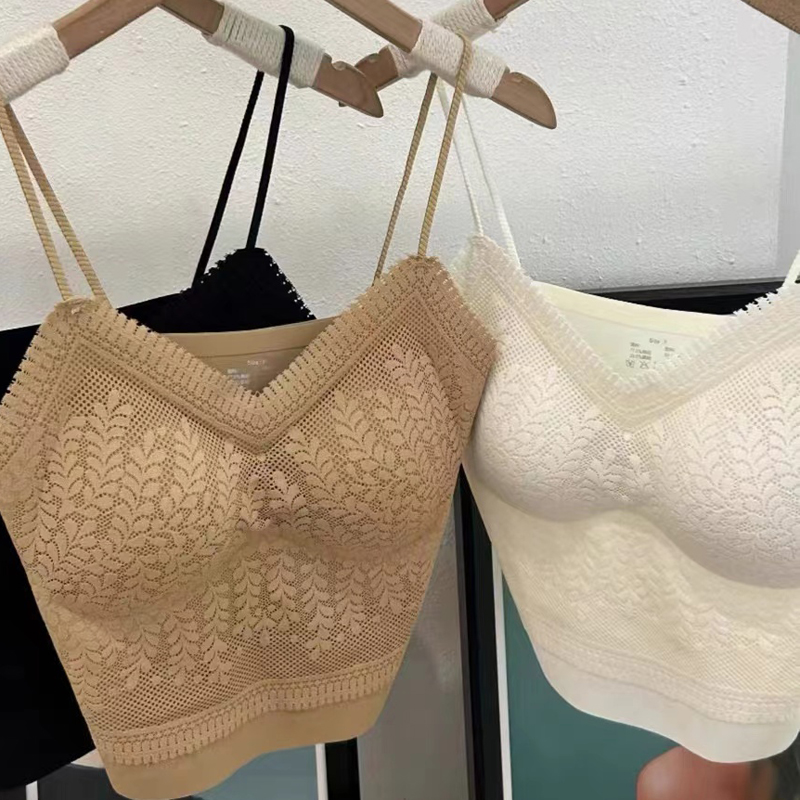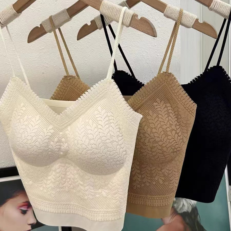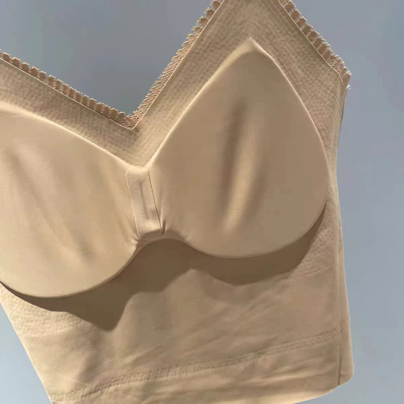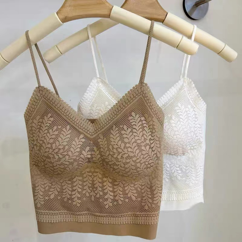 Summer ice silk traceless lace gathered beautiful back embroidery V camisole