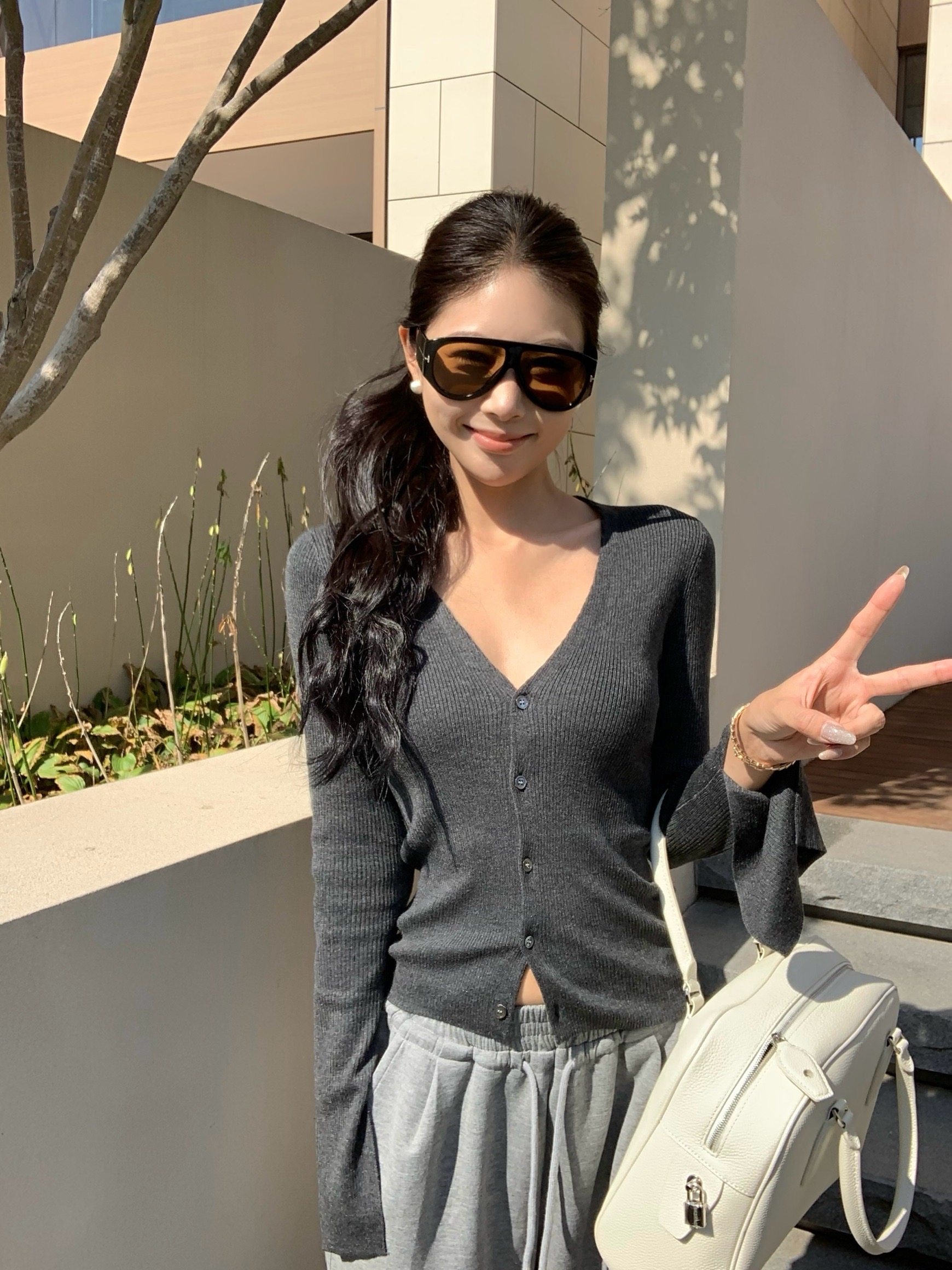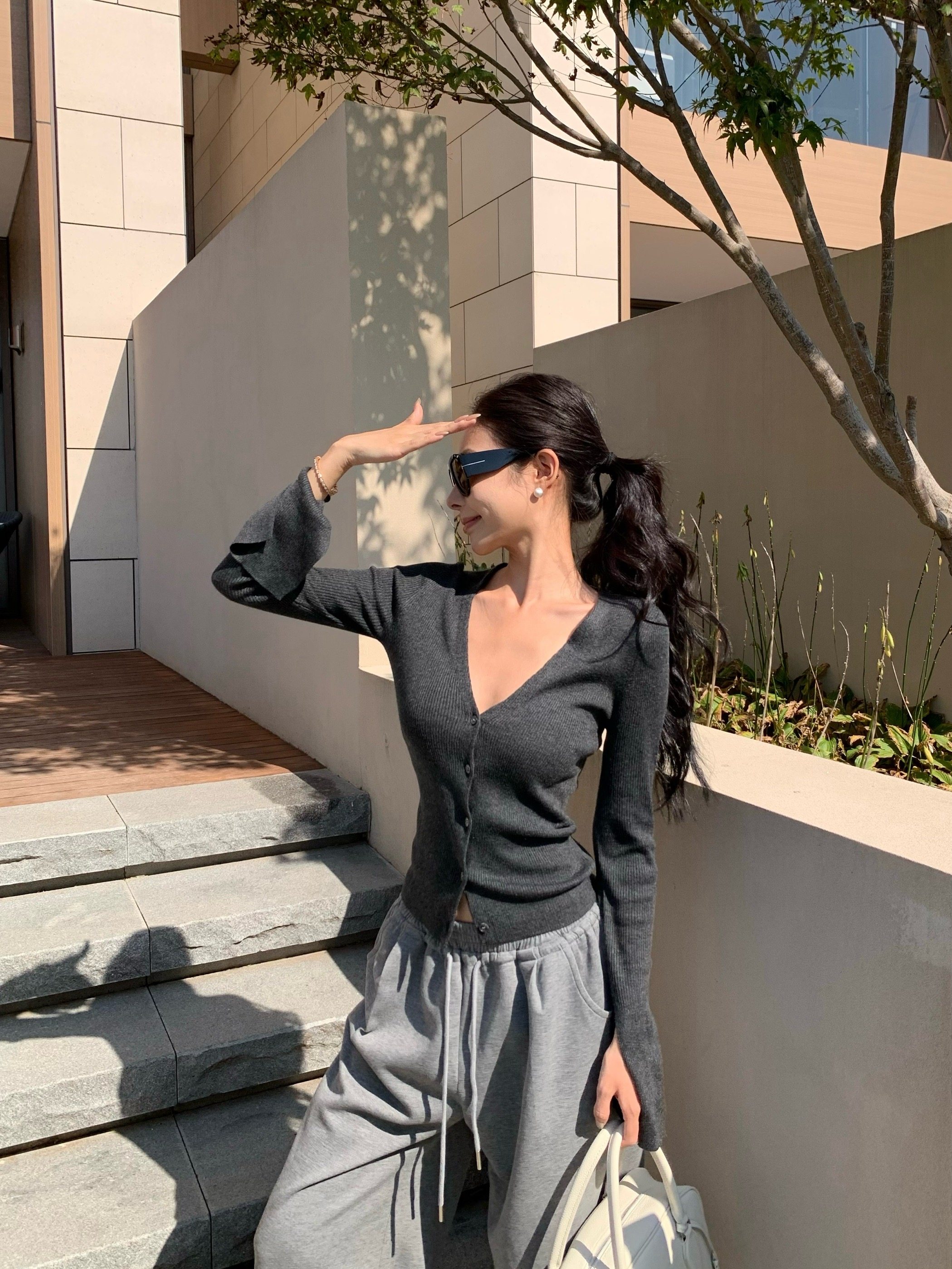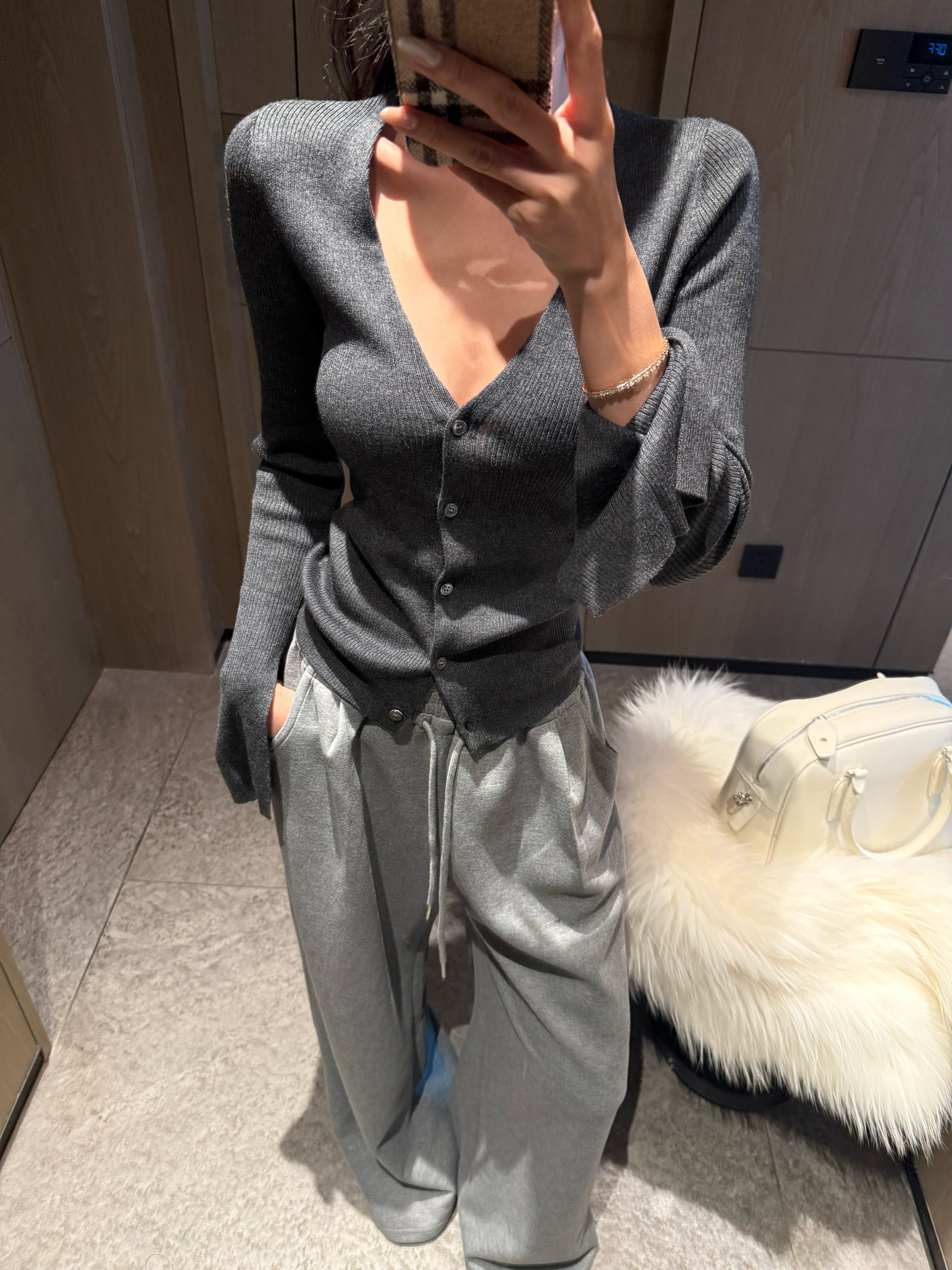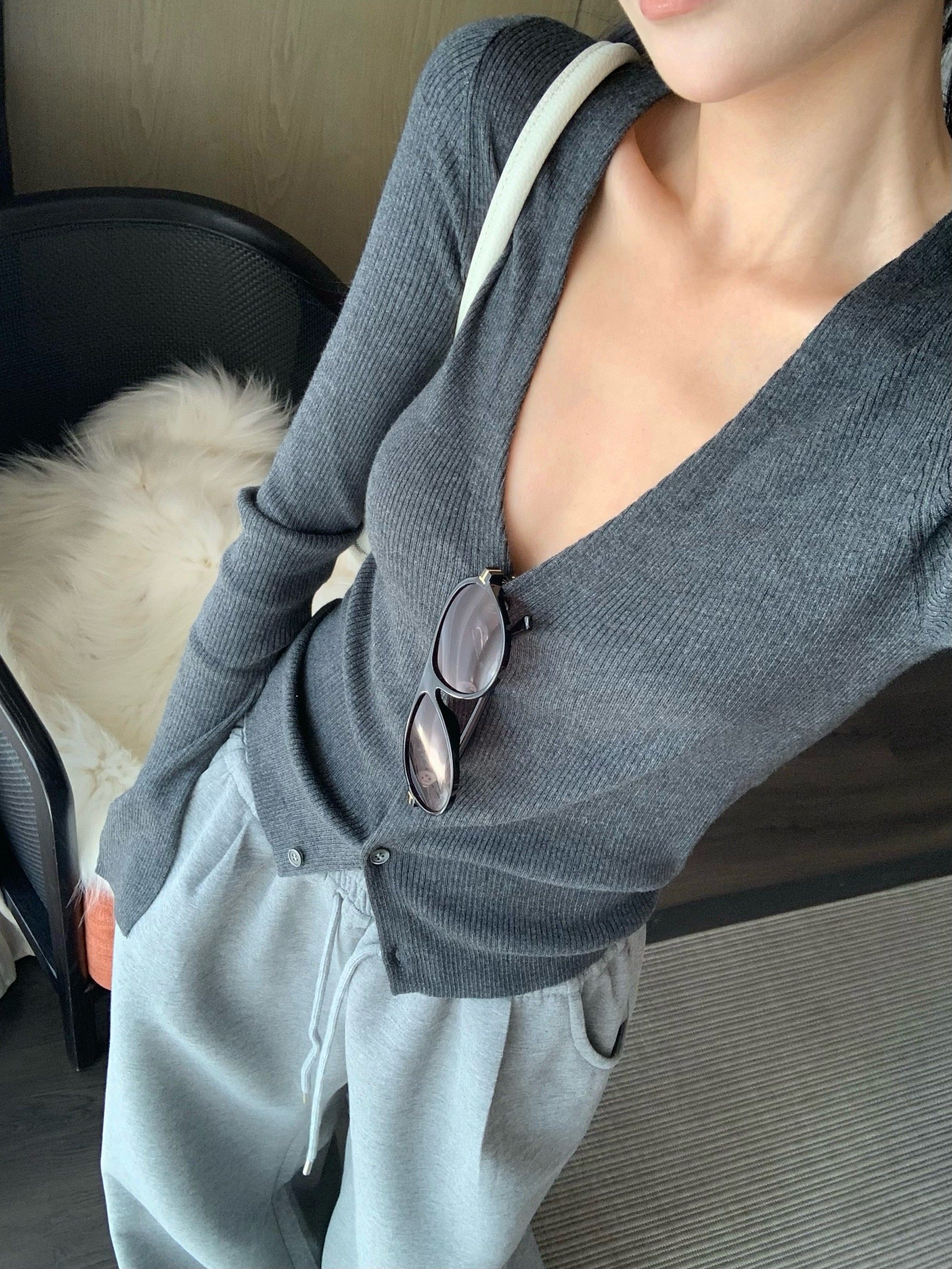 V-neck long-sleeved knitted cardigan