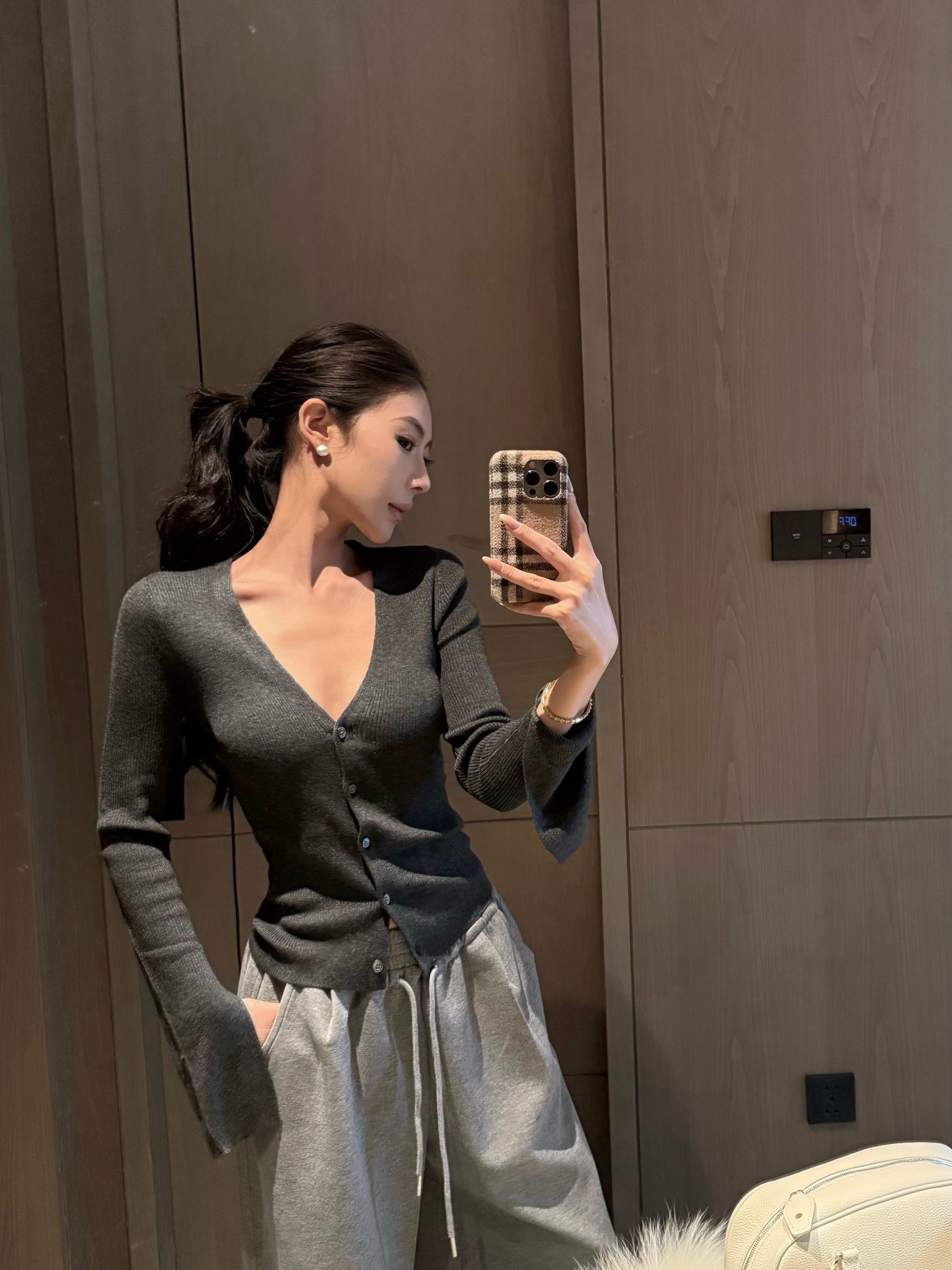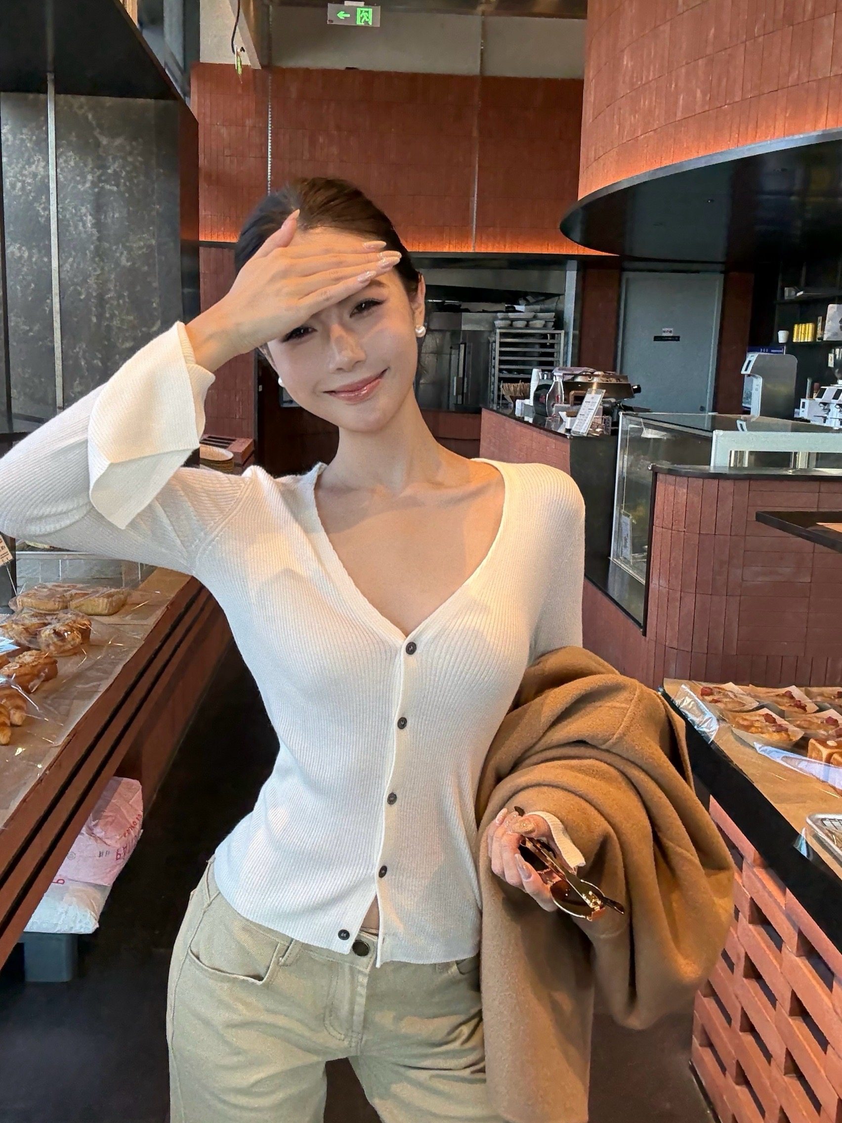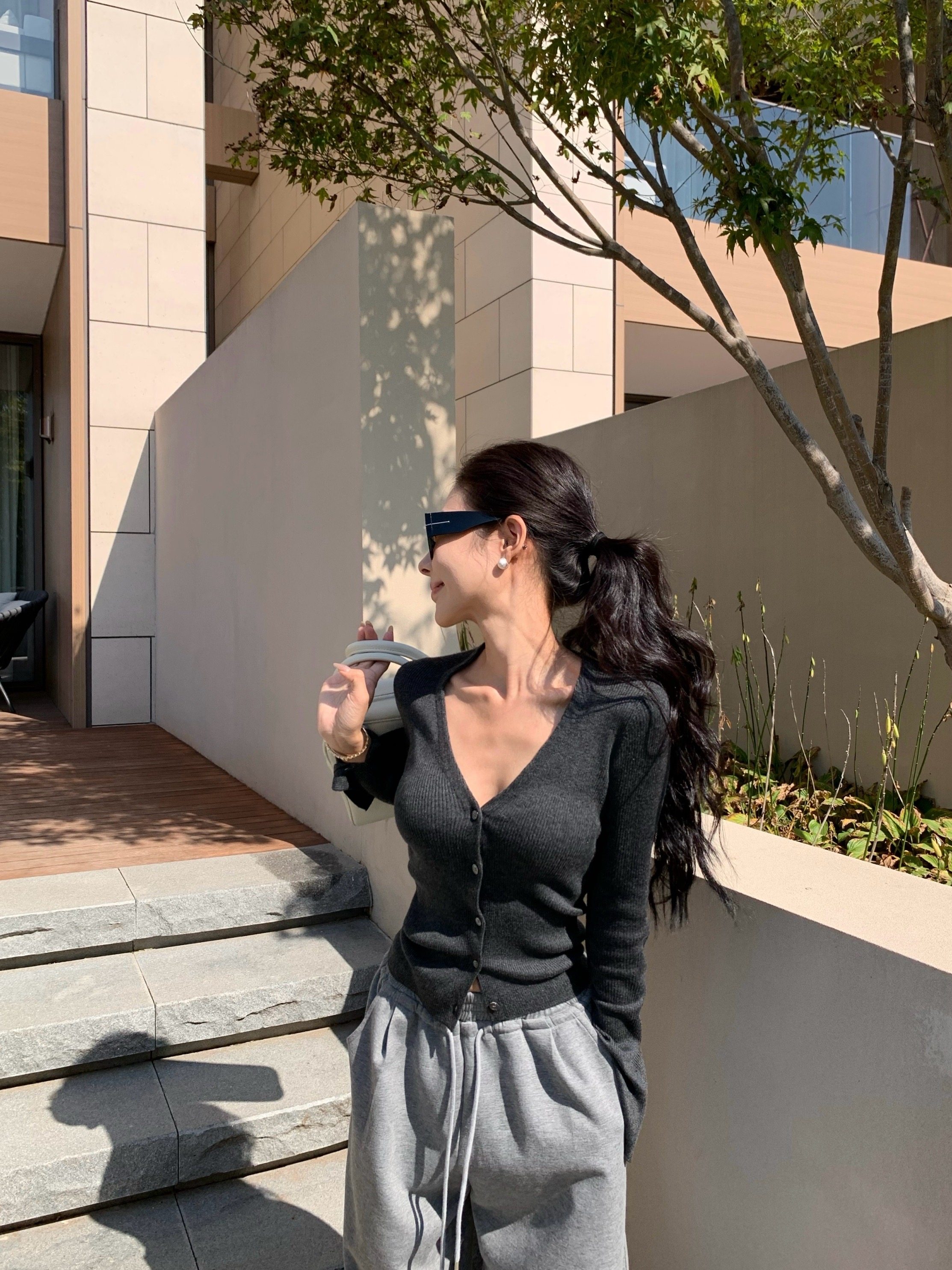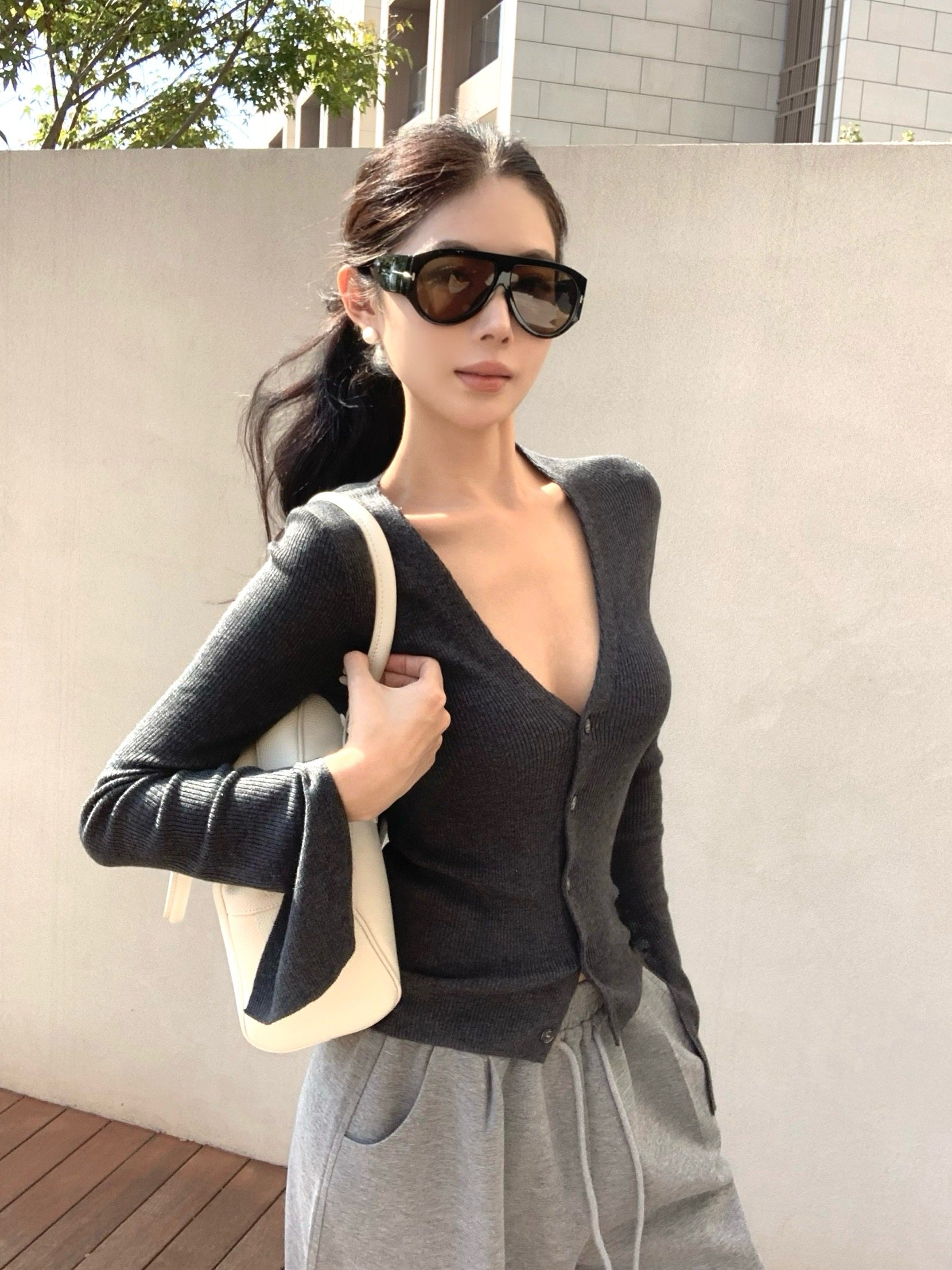 V-neck long-sleeved knitted cardigan