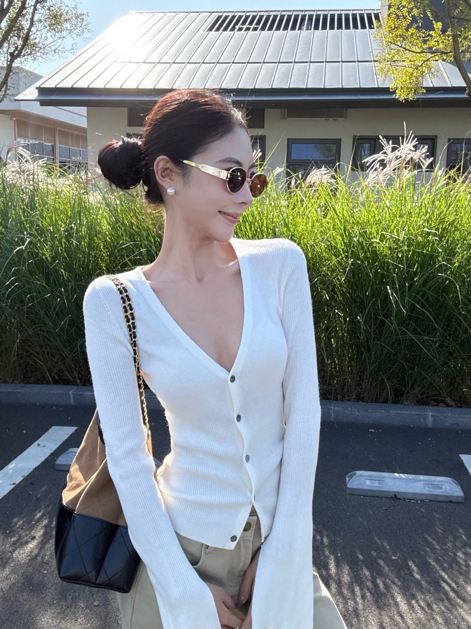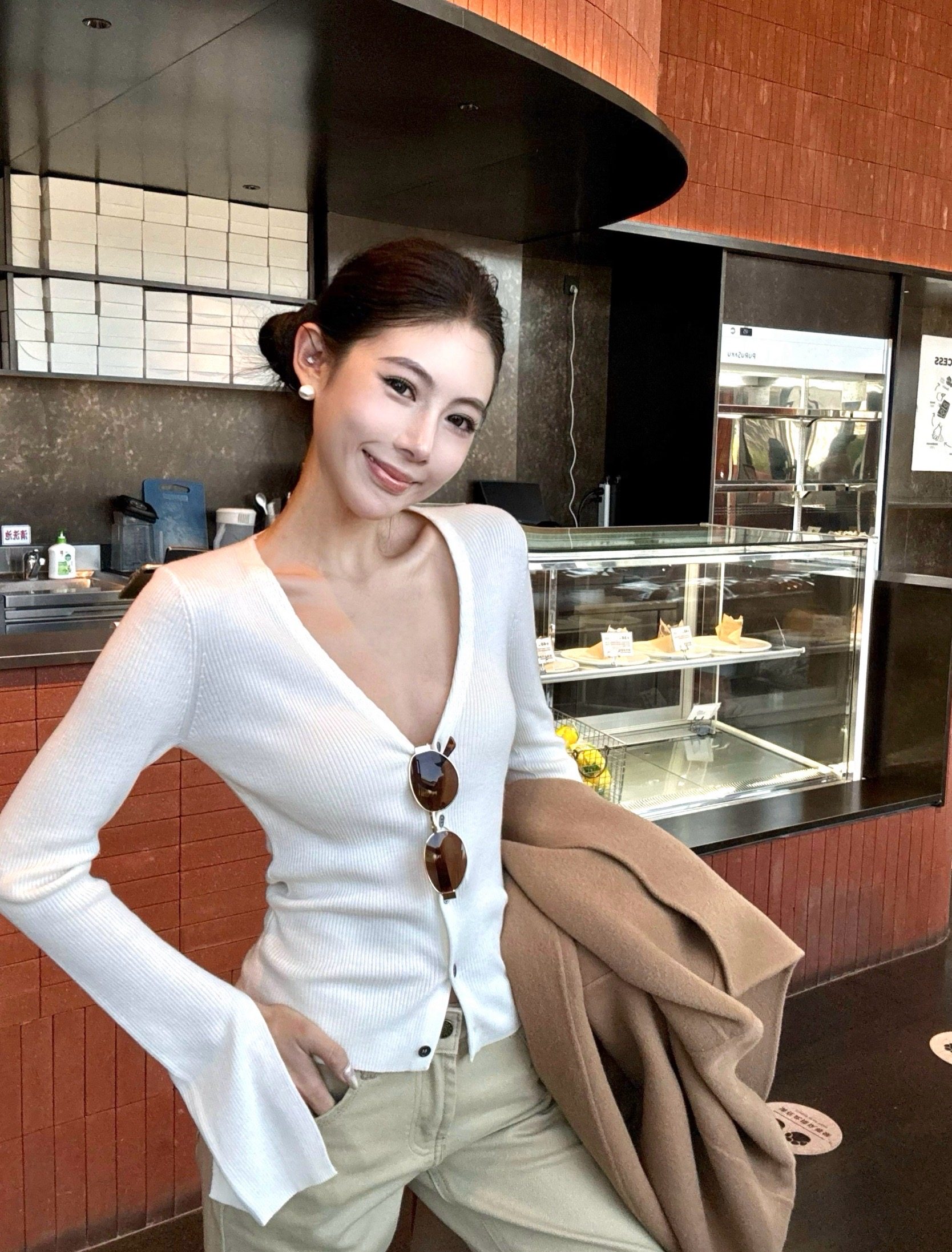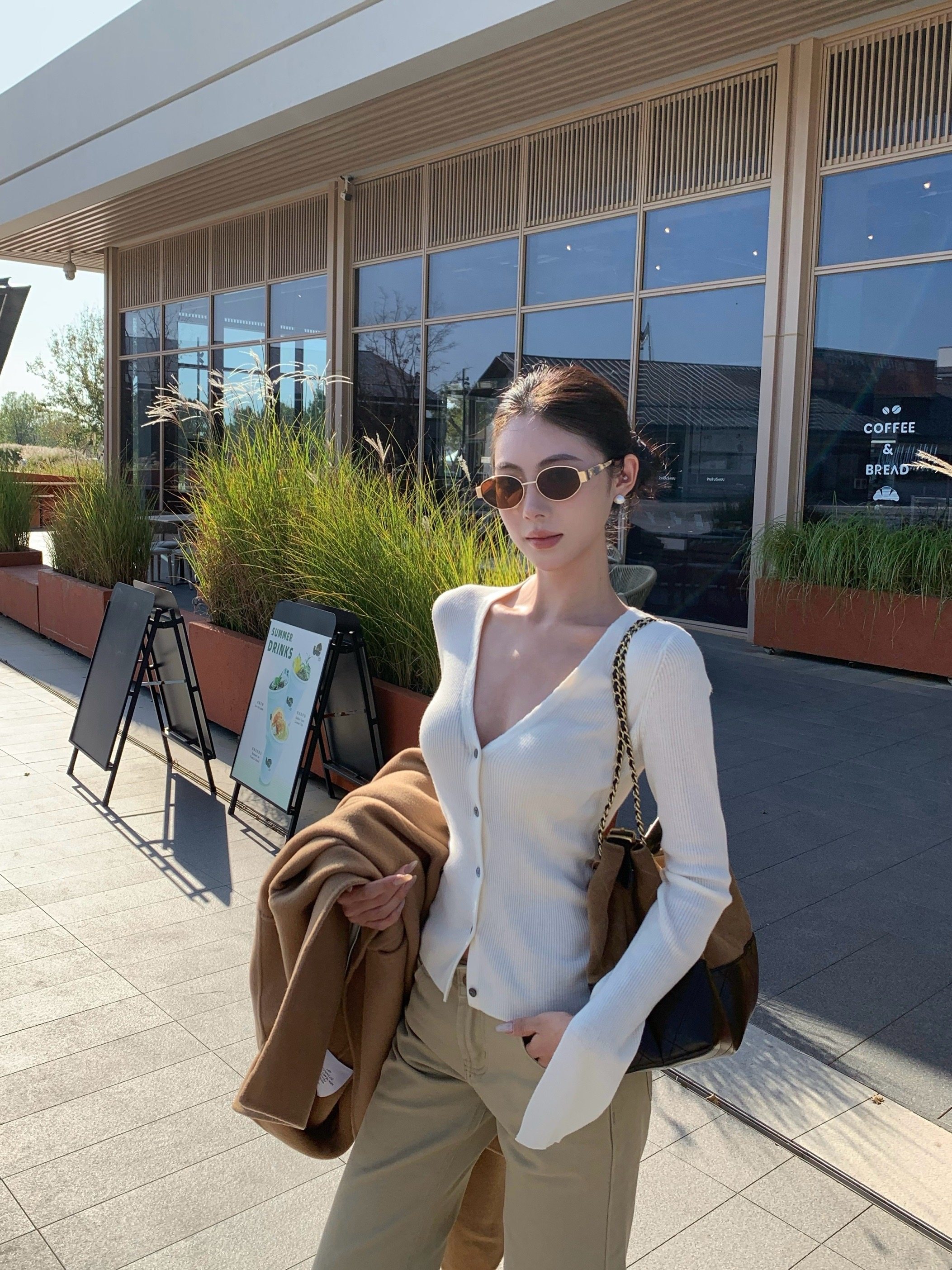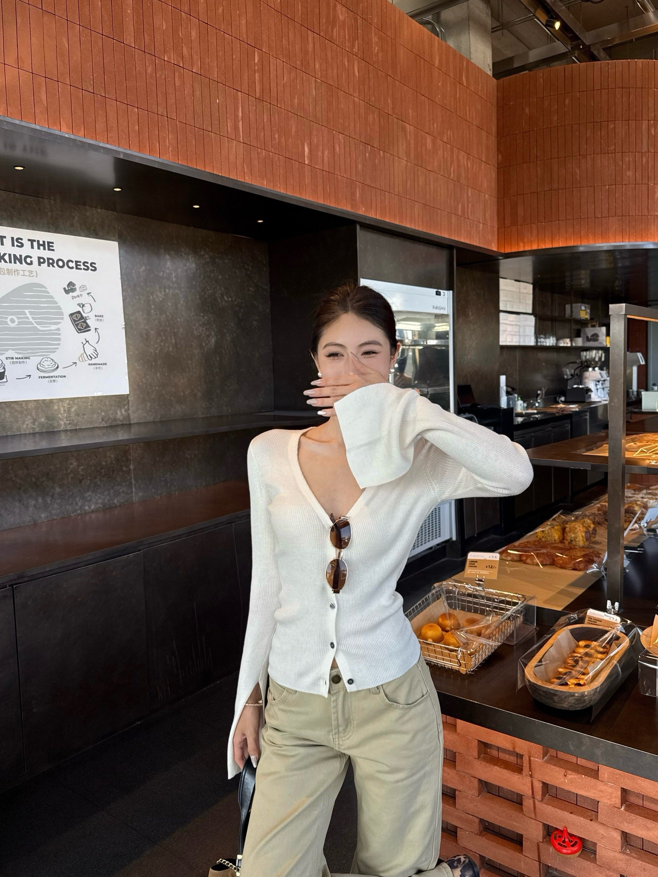 V-neck long-sleeved knitted cardigan