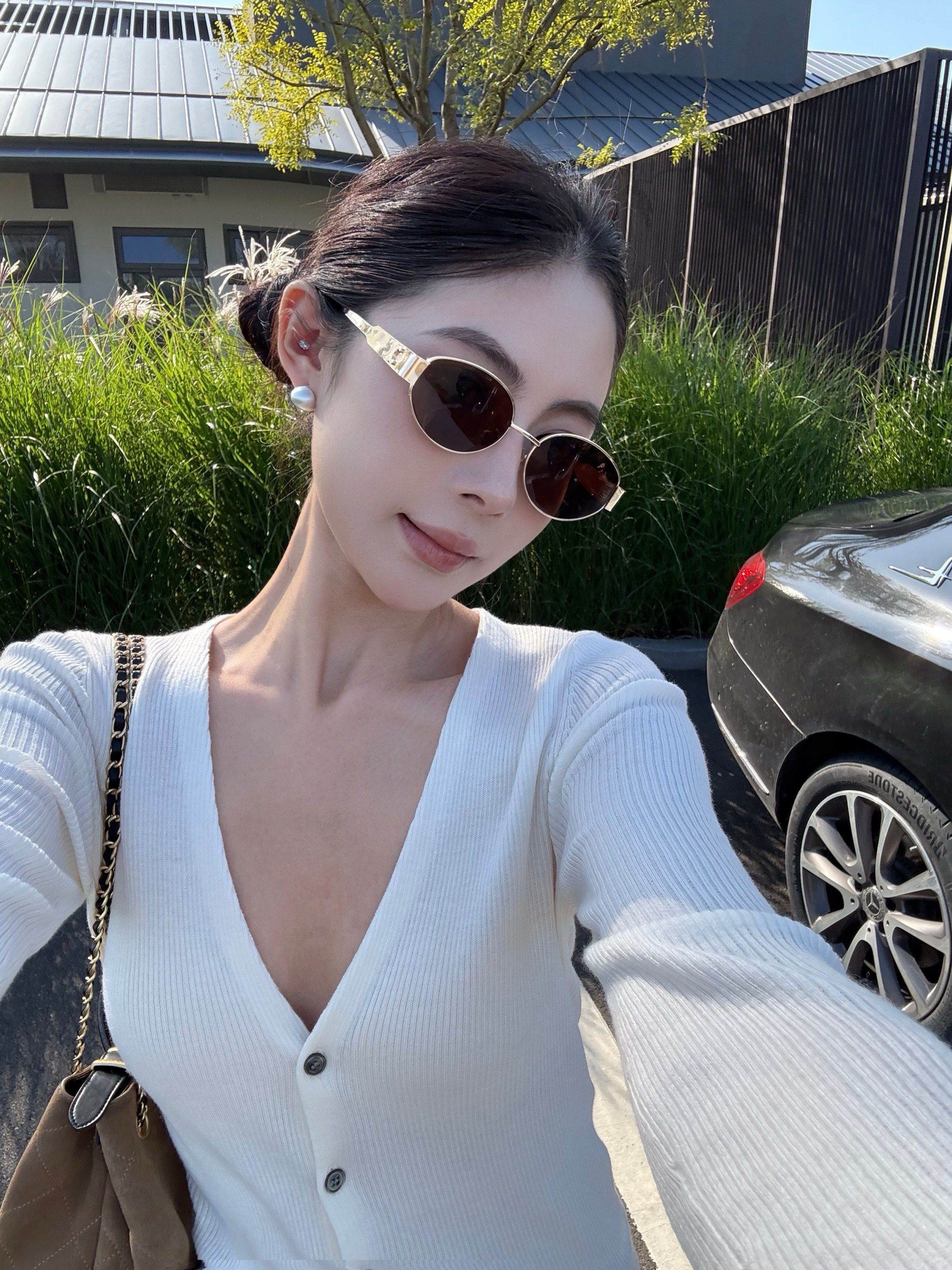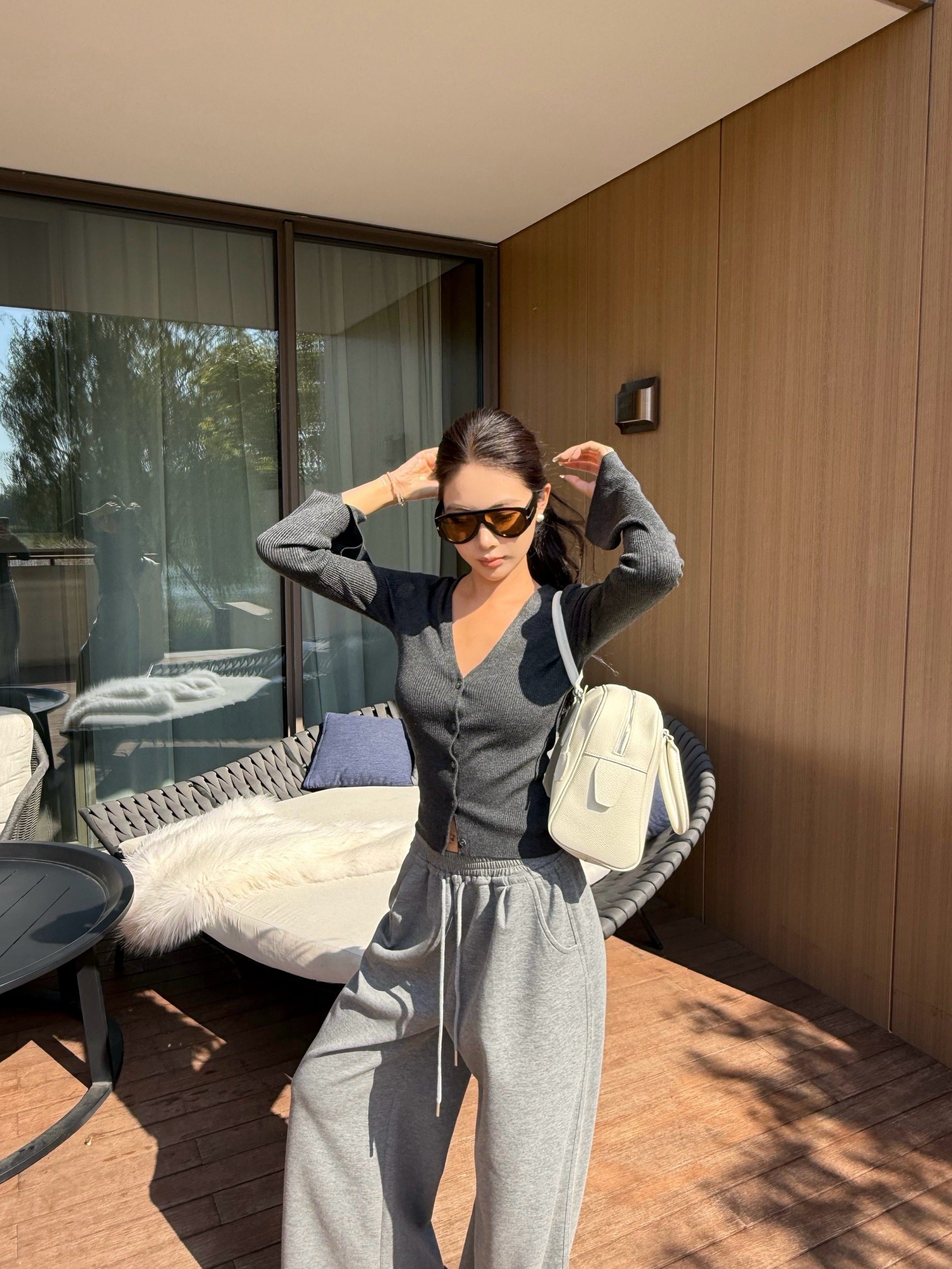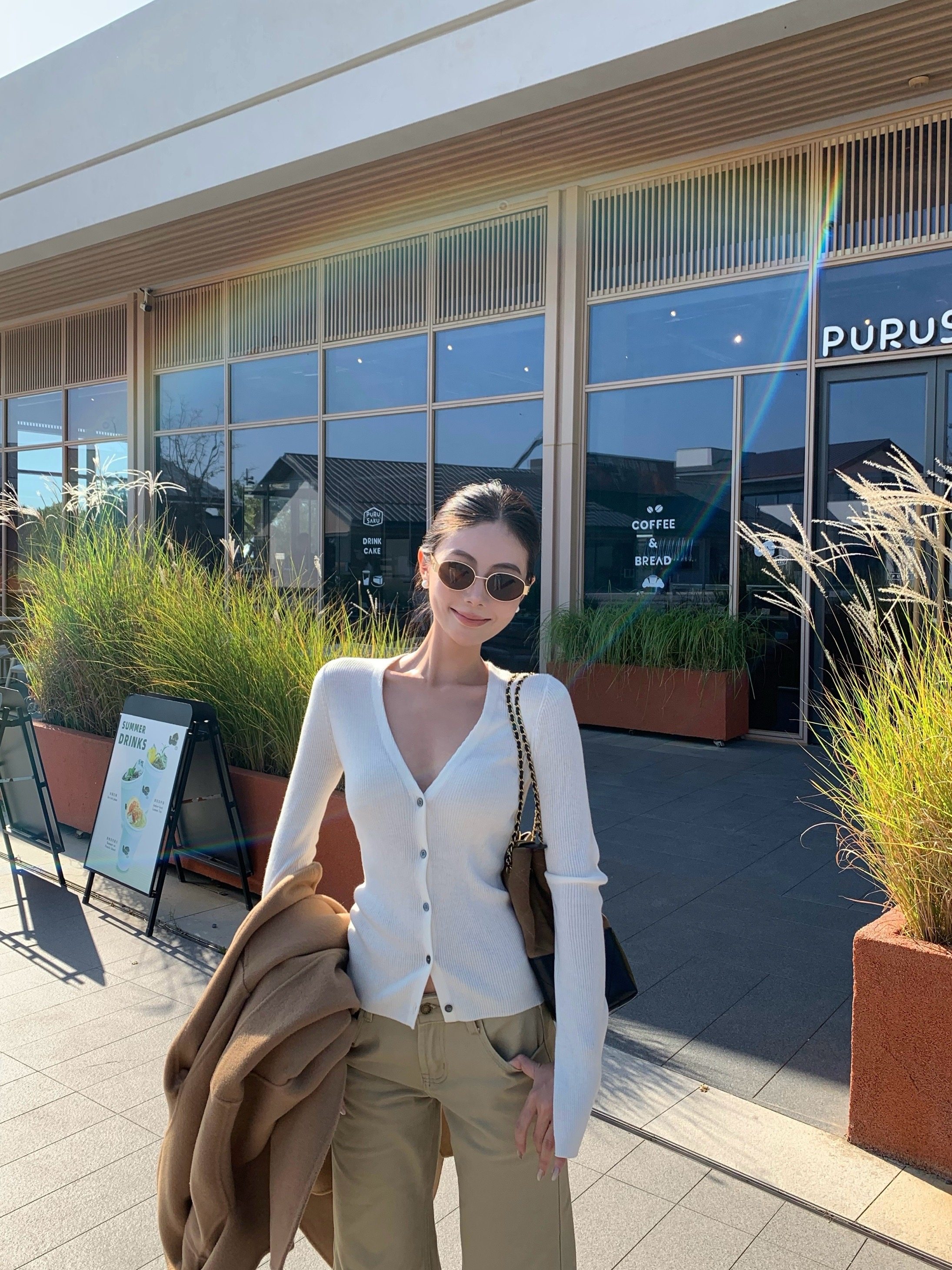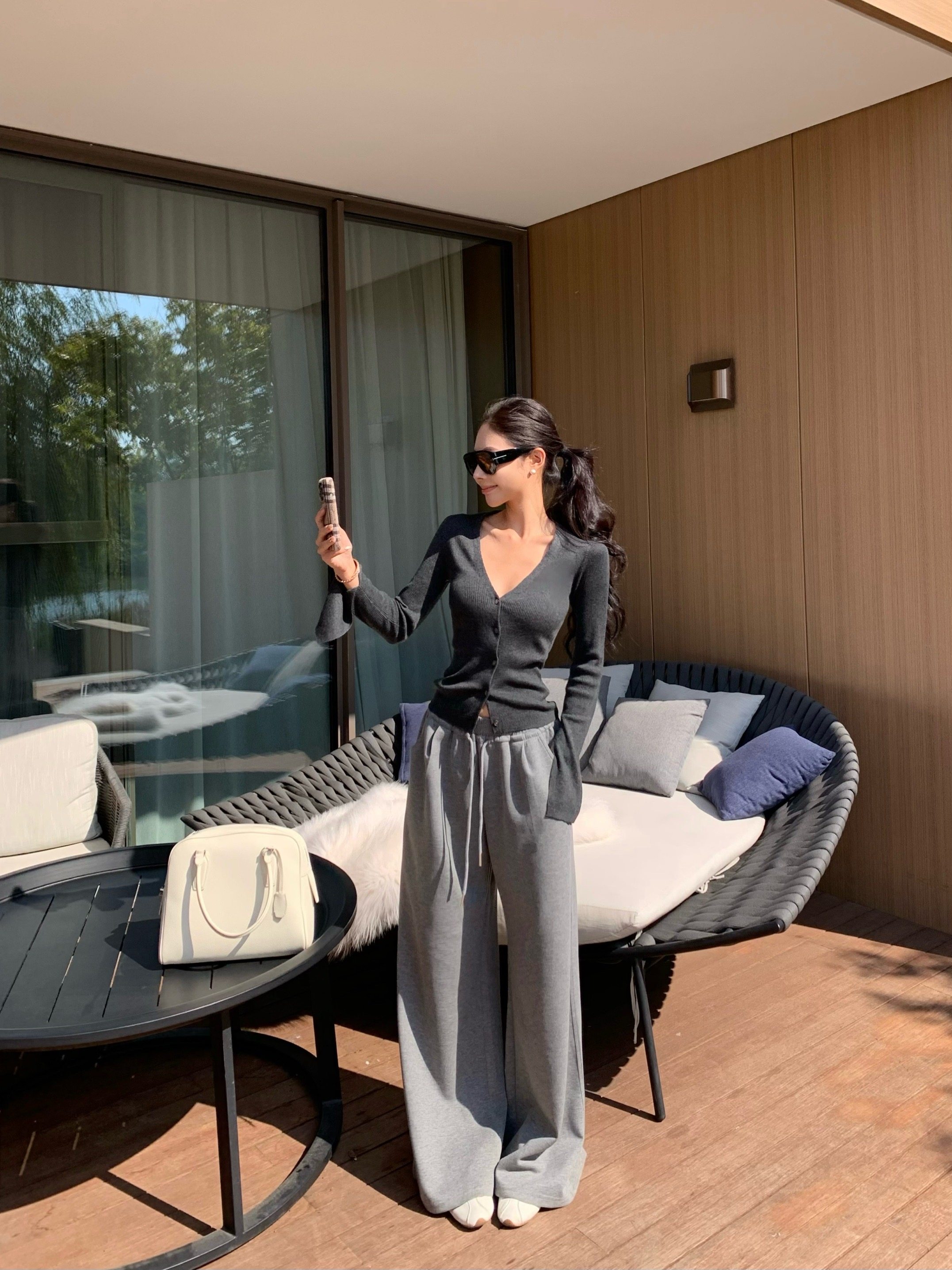 V-neck long-sleeved knitted cardigan