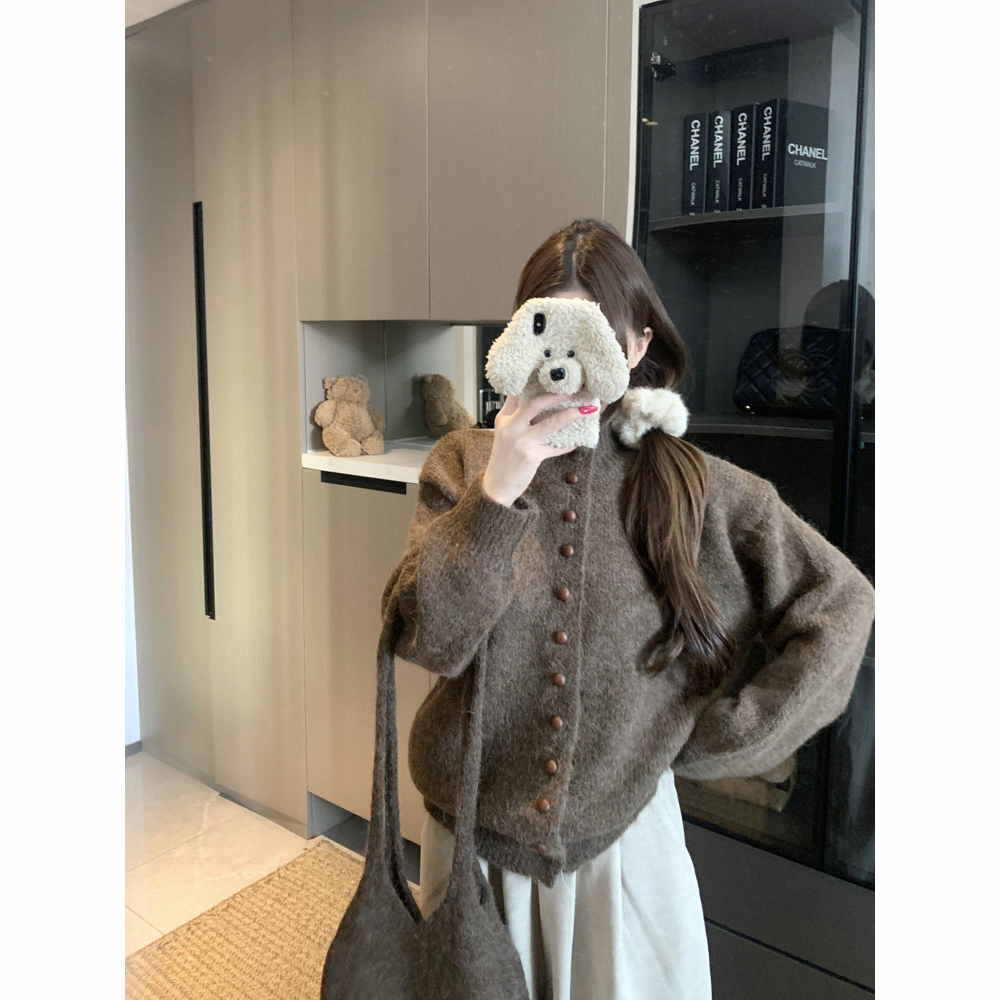 Vintage Maillard Lazy Style Turtleneck Jacket Women's Winter Relaxed Loose Single-Breasted Knit Cardigan