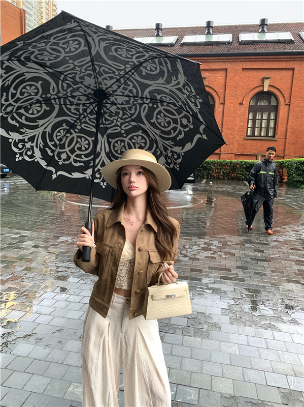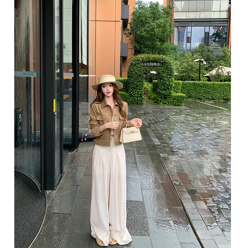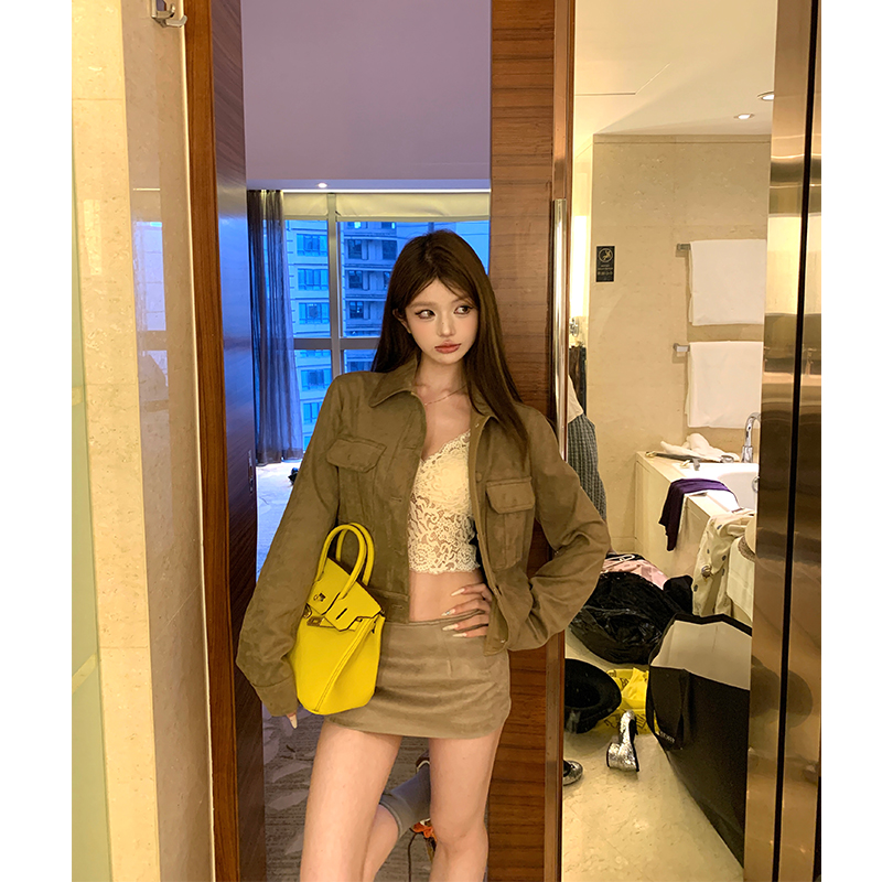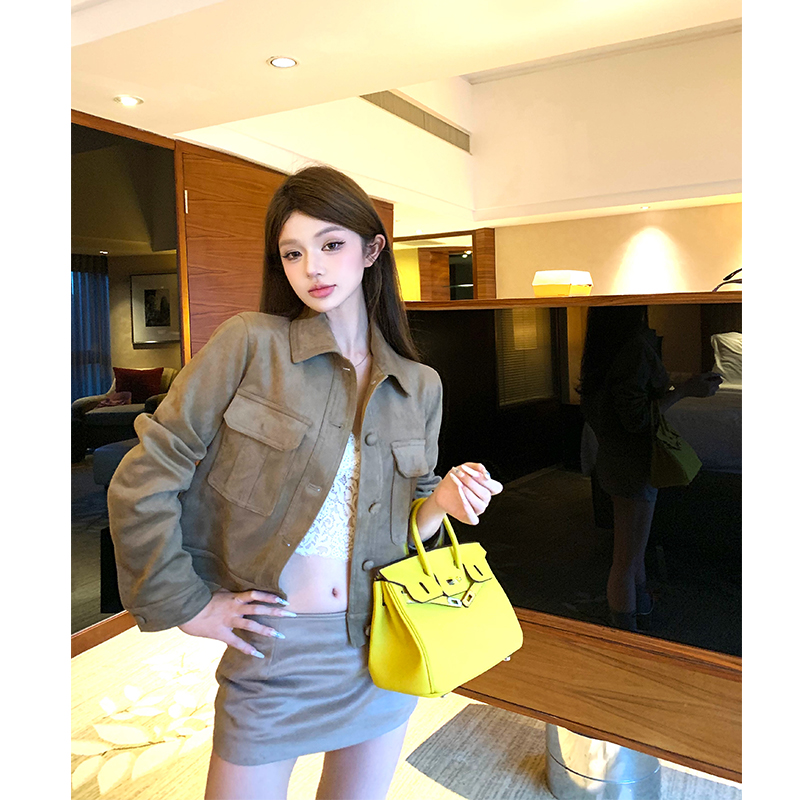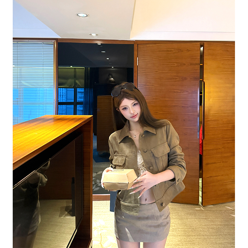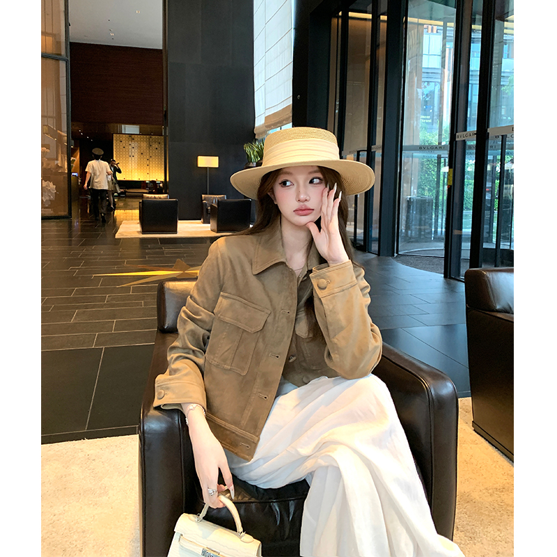 Vintage suede lapels long-sleeved cargo coats