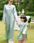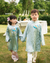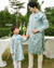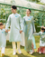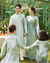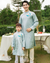 Áo dài gia đình thêu di băng xanh