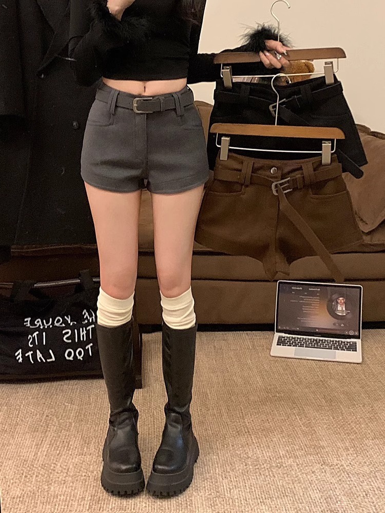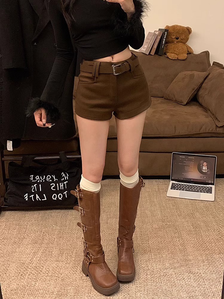 American hot girl thickened coffee woolenlow-rise straight wide-leg shorts