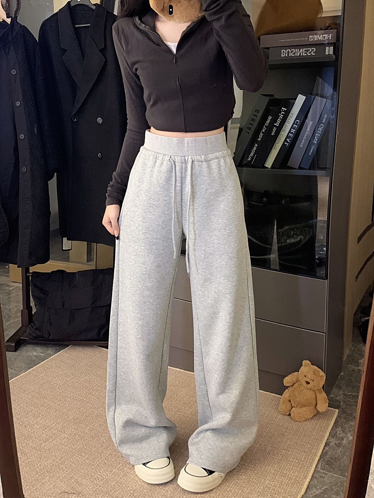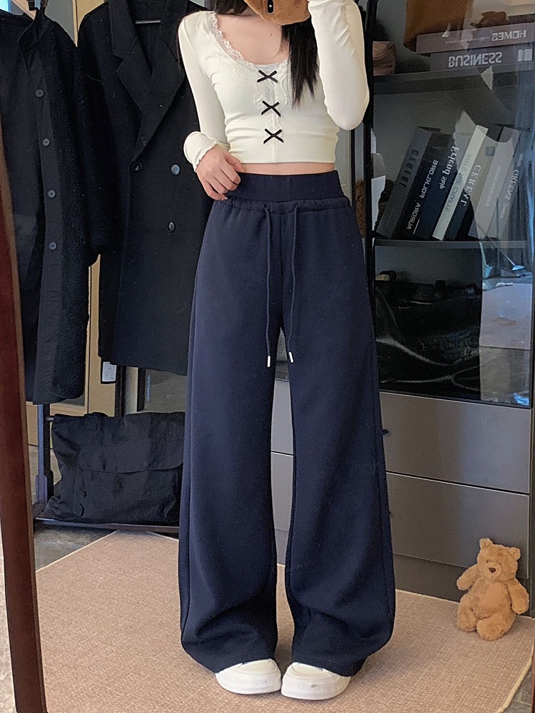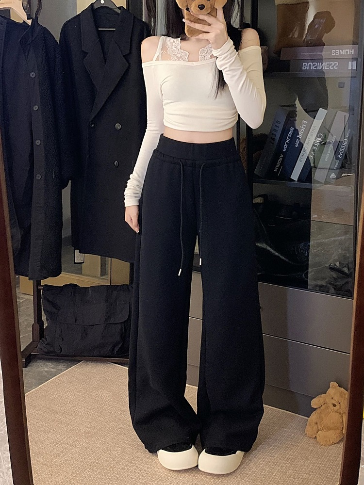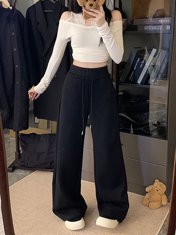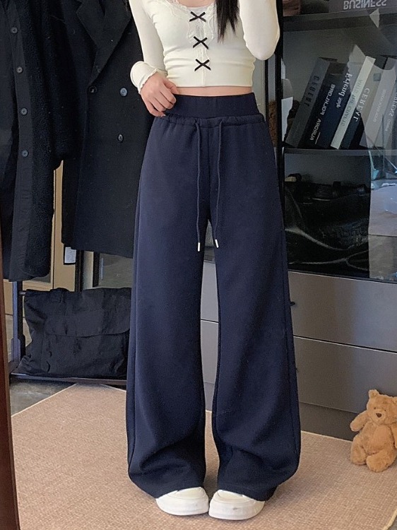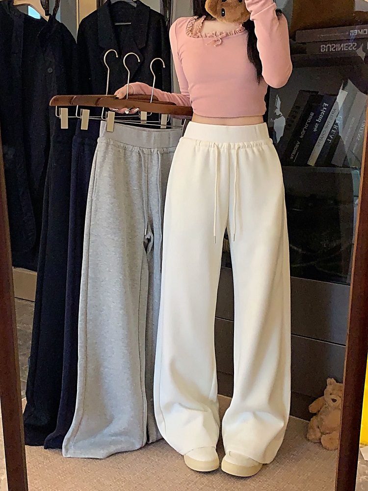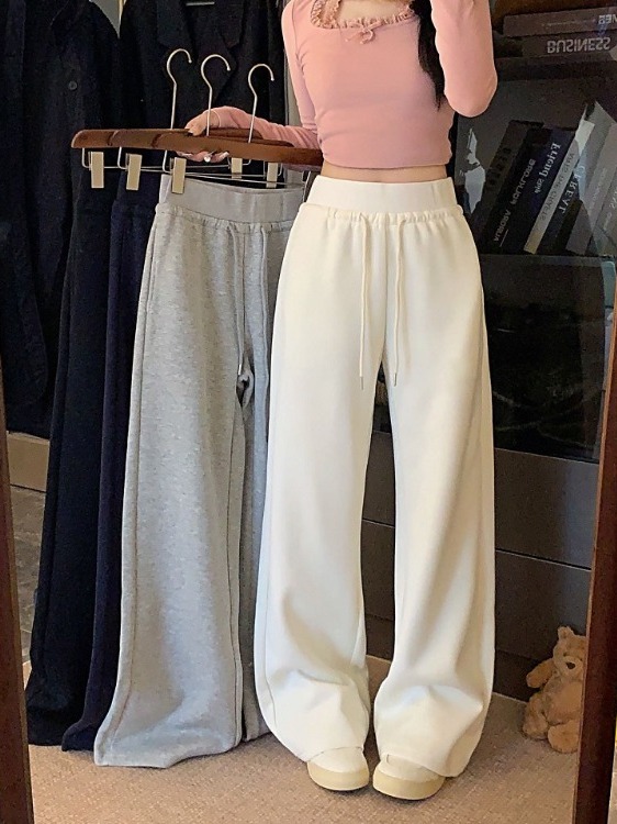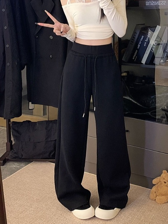 High-waisted drawstring splicing wide-leg casual straight-leg sweatpants