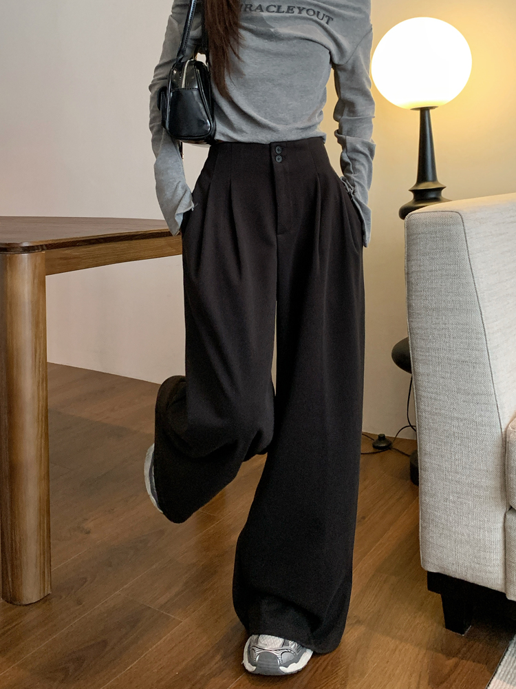 Solid color high waist loose drape slimming wide leg pants