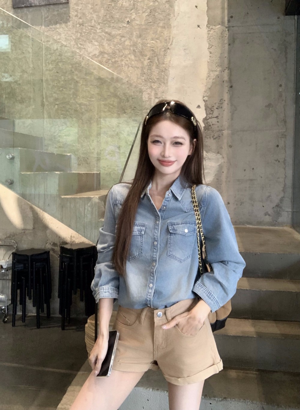 Retro hot girl style long-sleeved denim casual jacket