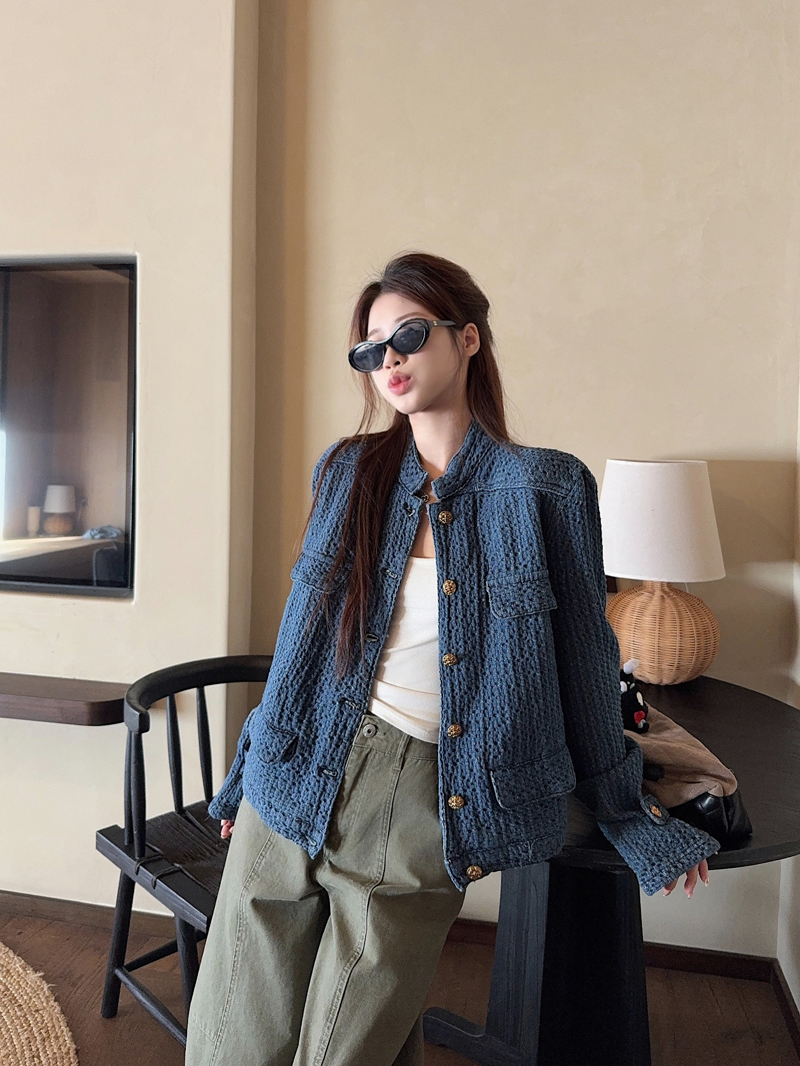 Retro stand-up collar texture fashionable and versatile temperament long-sleeved denim jacket