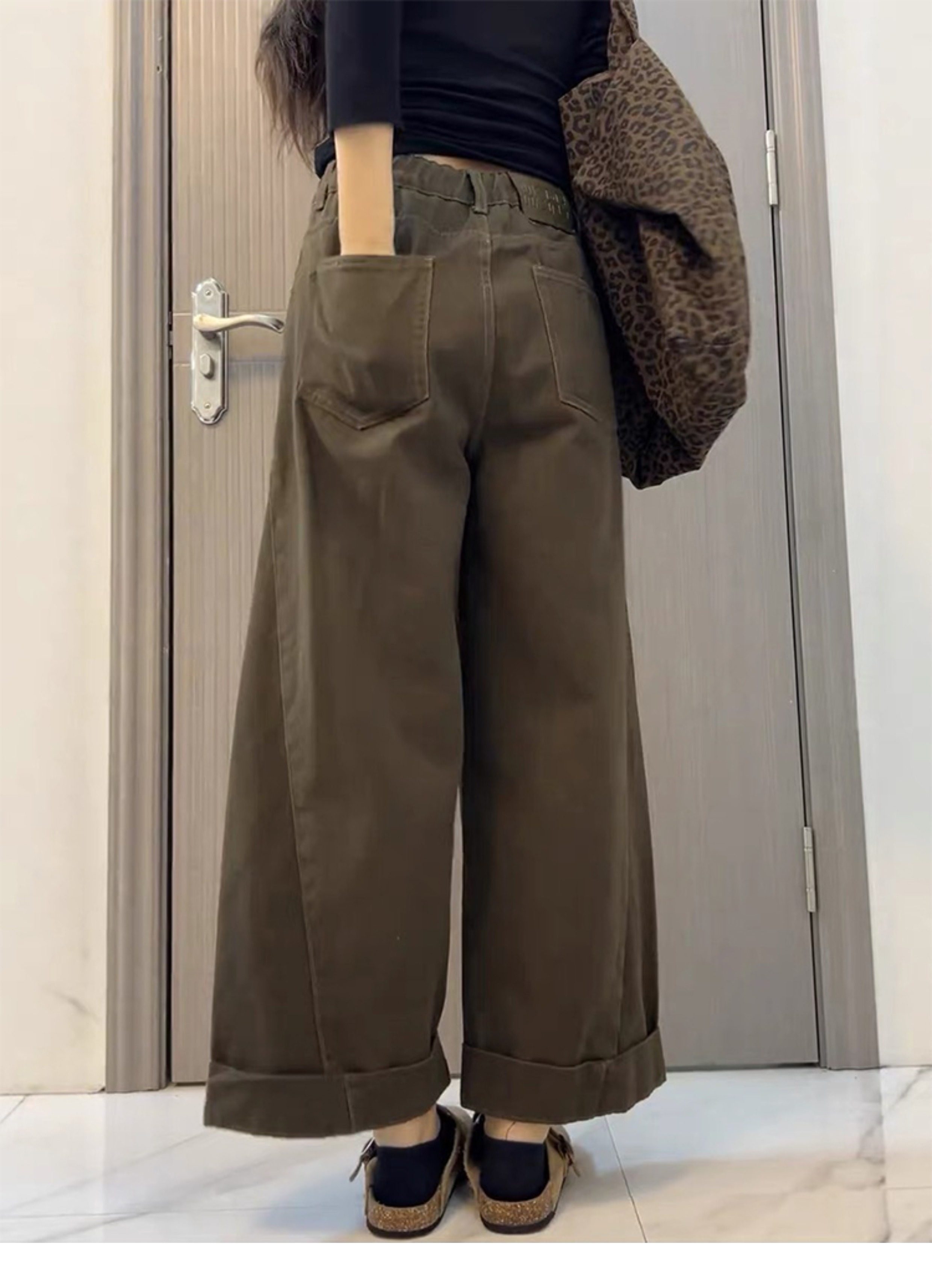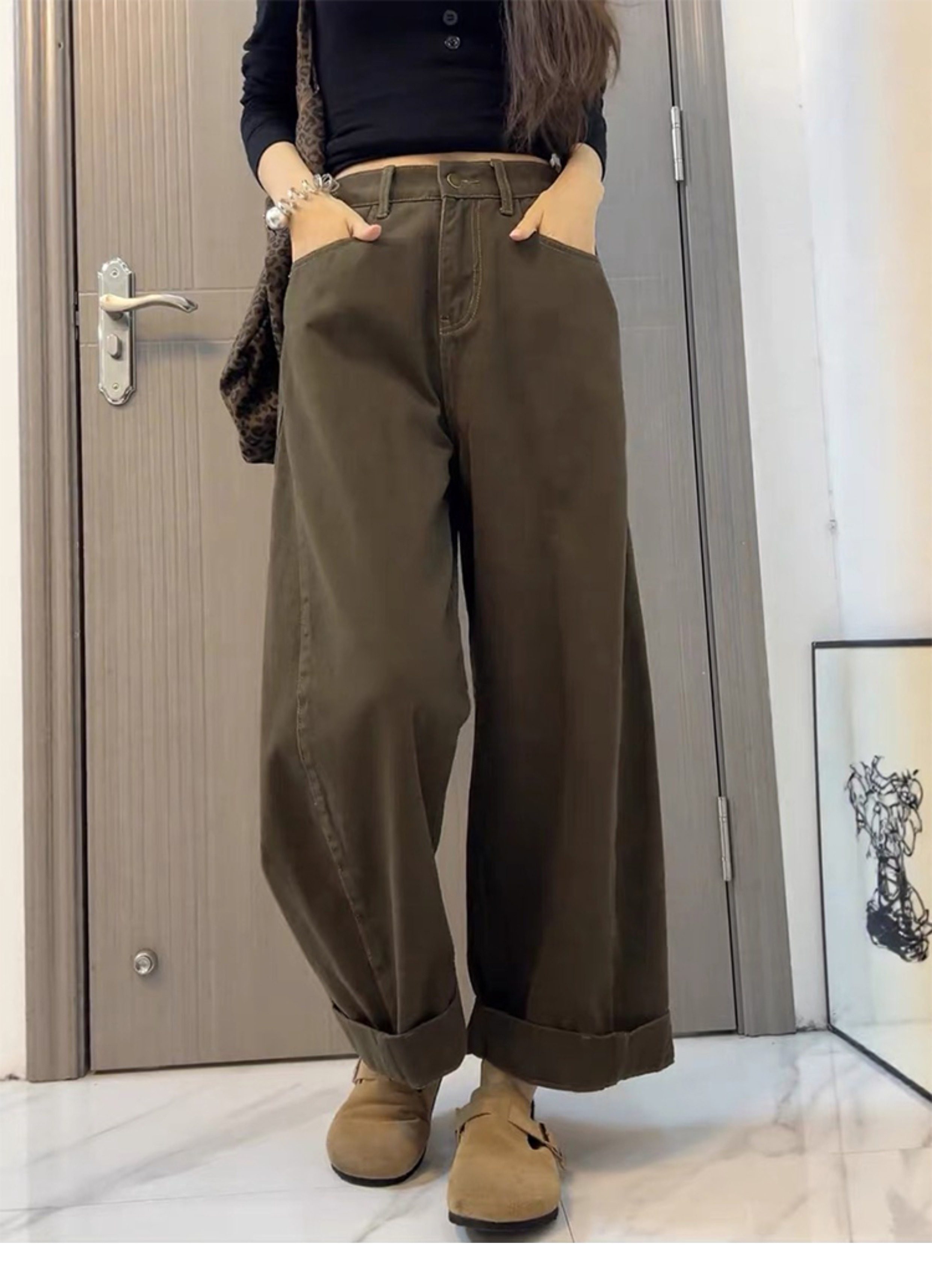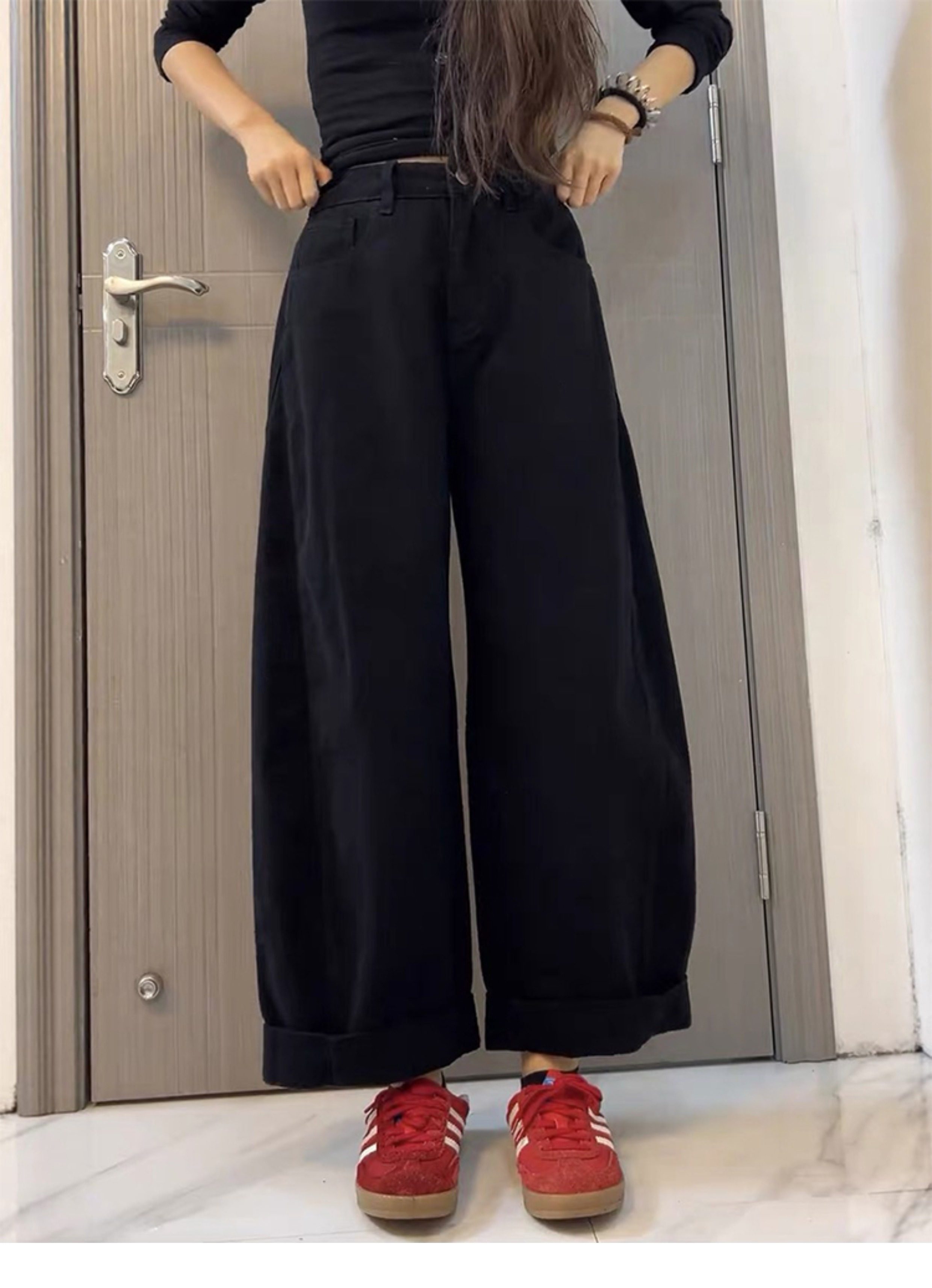 High waist pear-shaped body loose straight wide-leg retro jeans