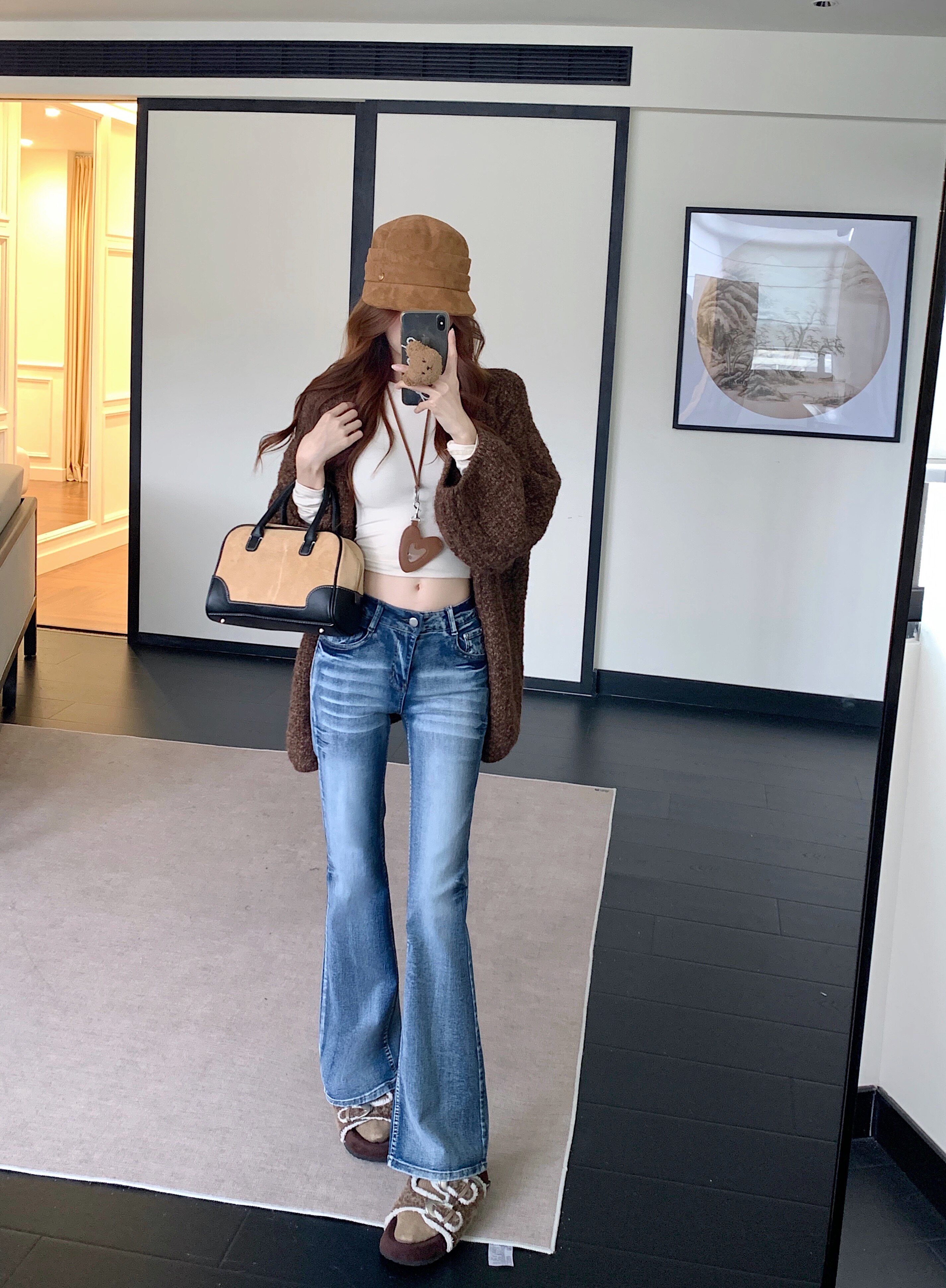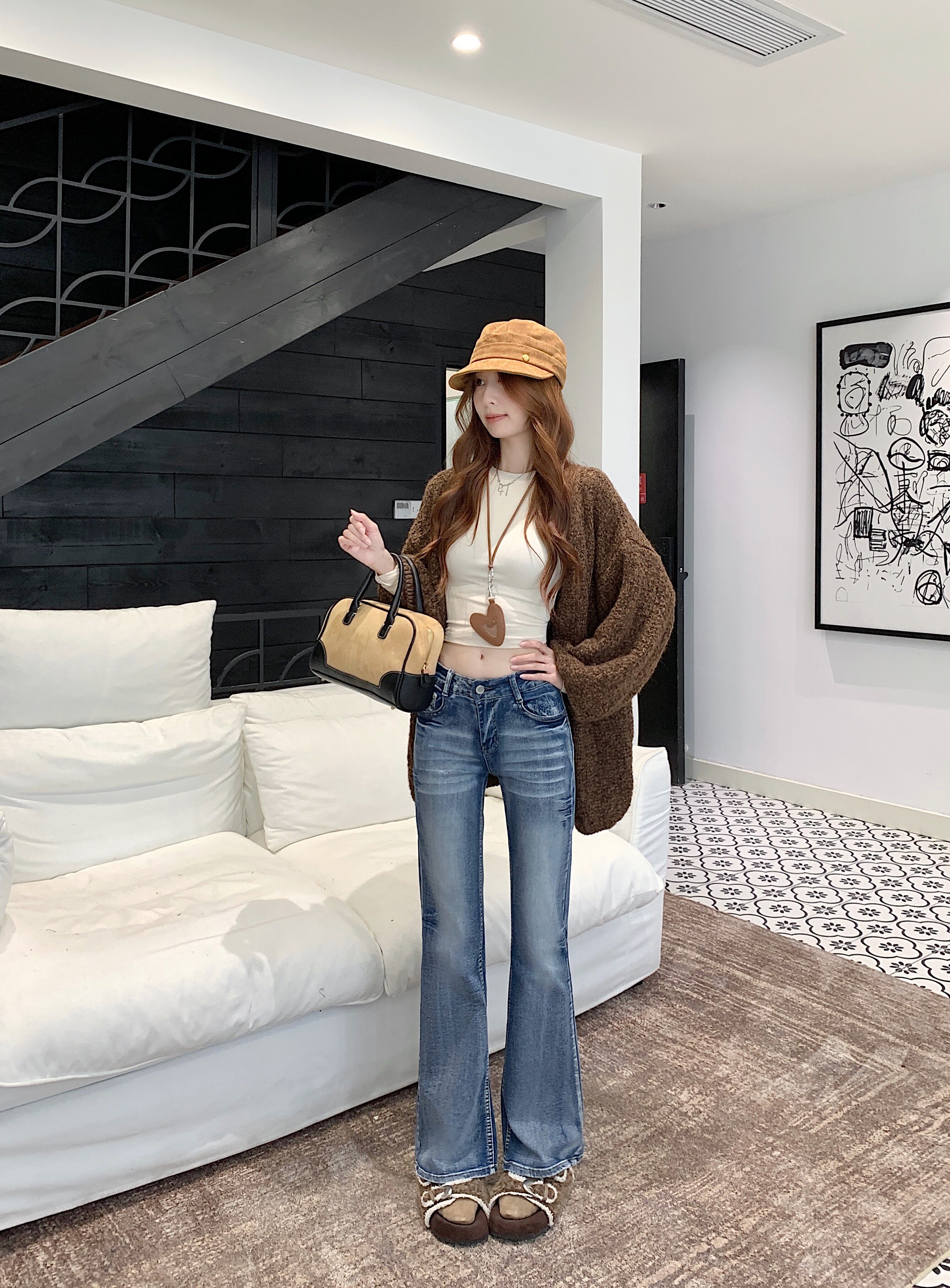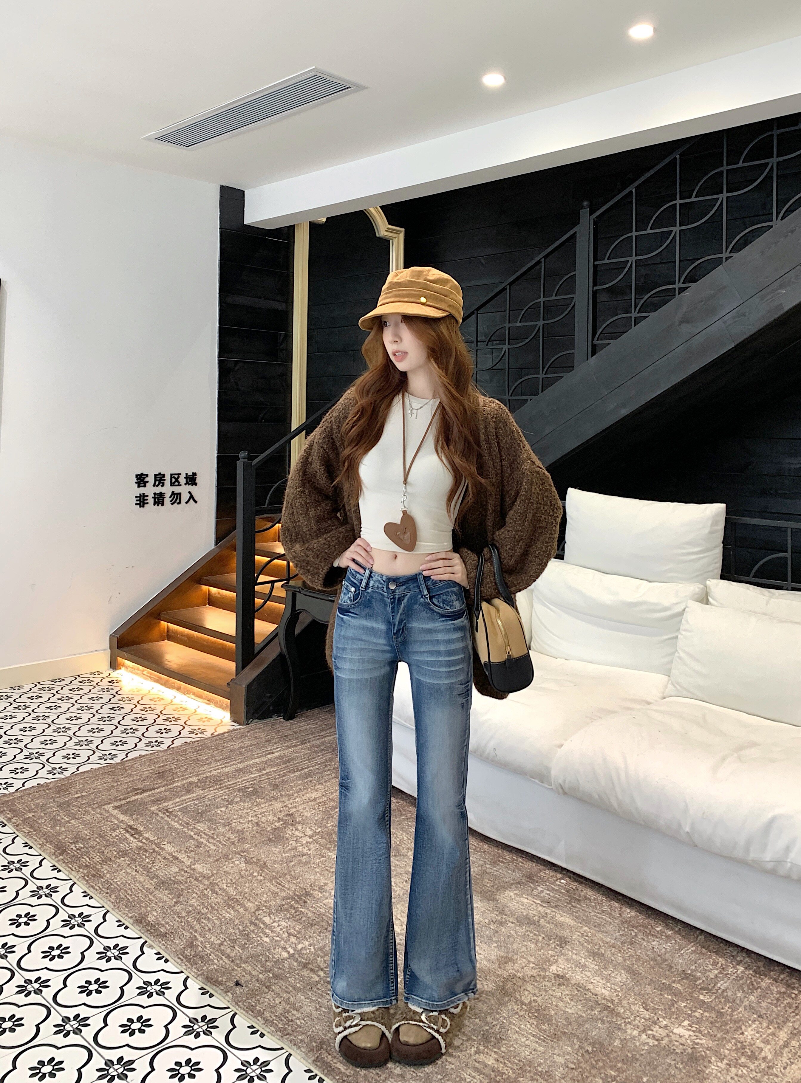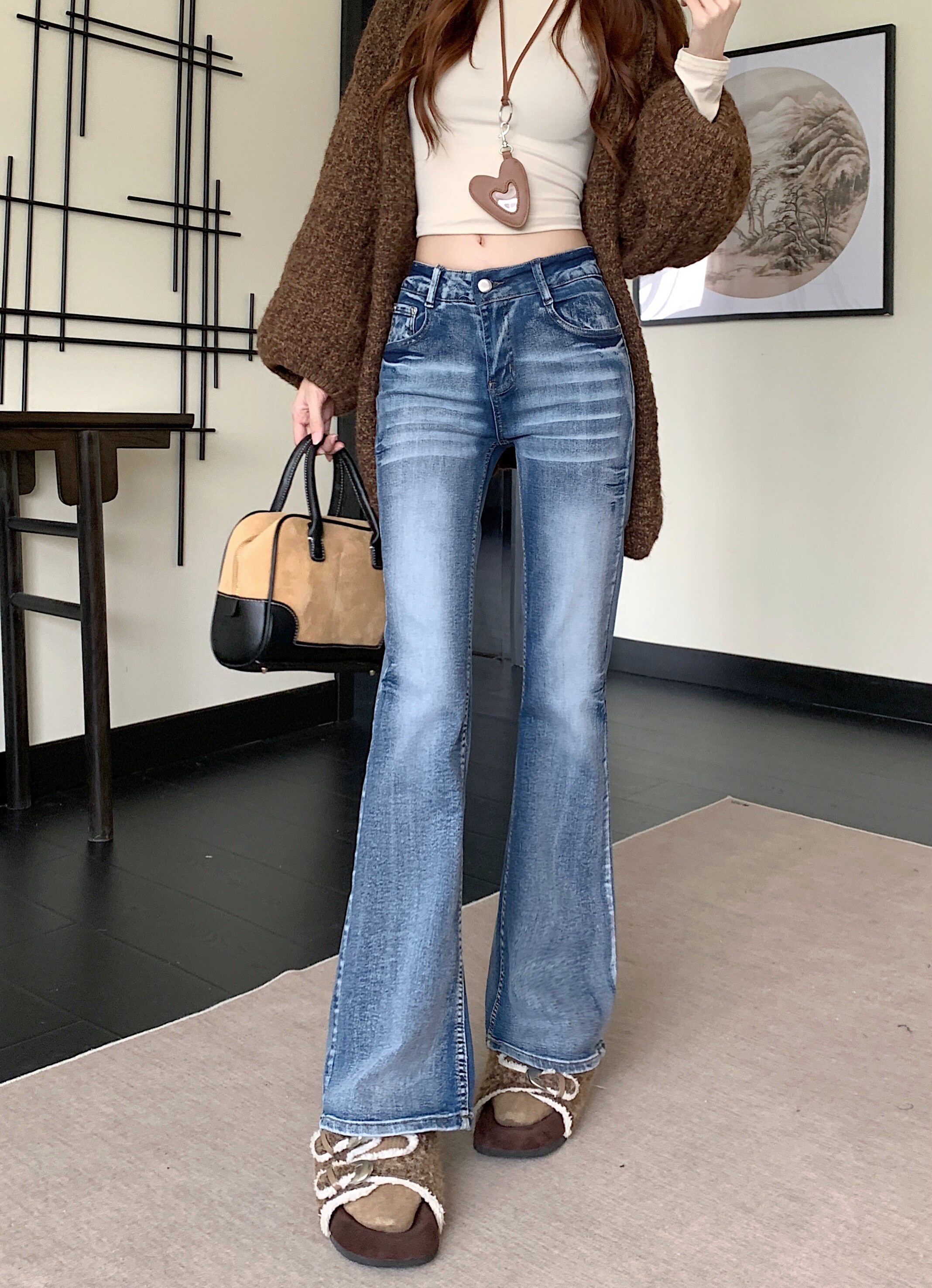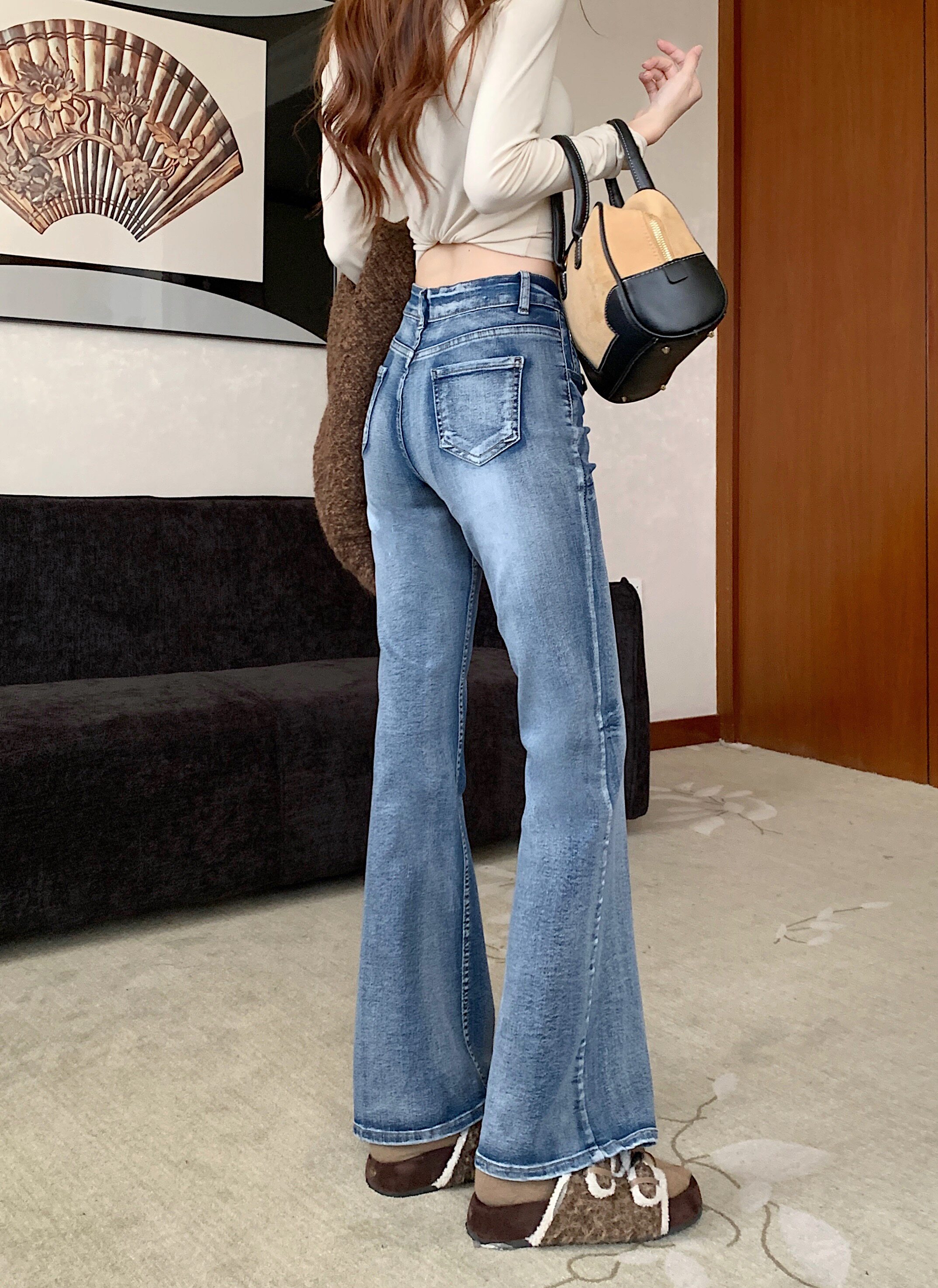 Washed distressed low-rise jeans women's winter vintage micro-flared pants narrow slimming straight-leg pants cropped trousers