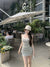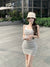 Black and white striped knitted camisole dress