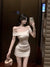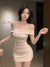 French temperament cold royal sister style hip mesh one-shoulder dress