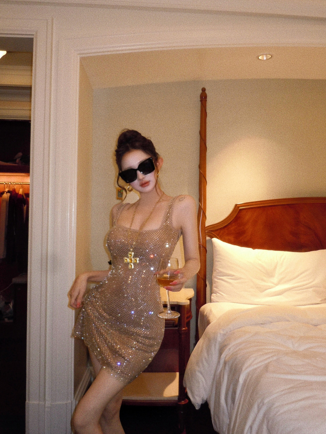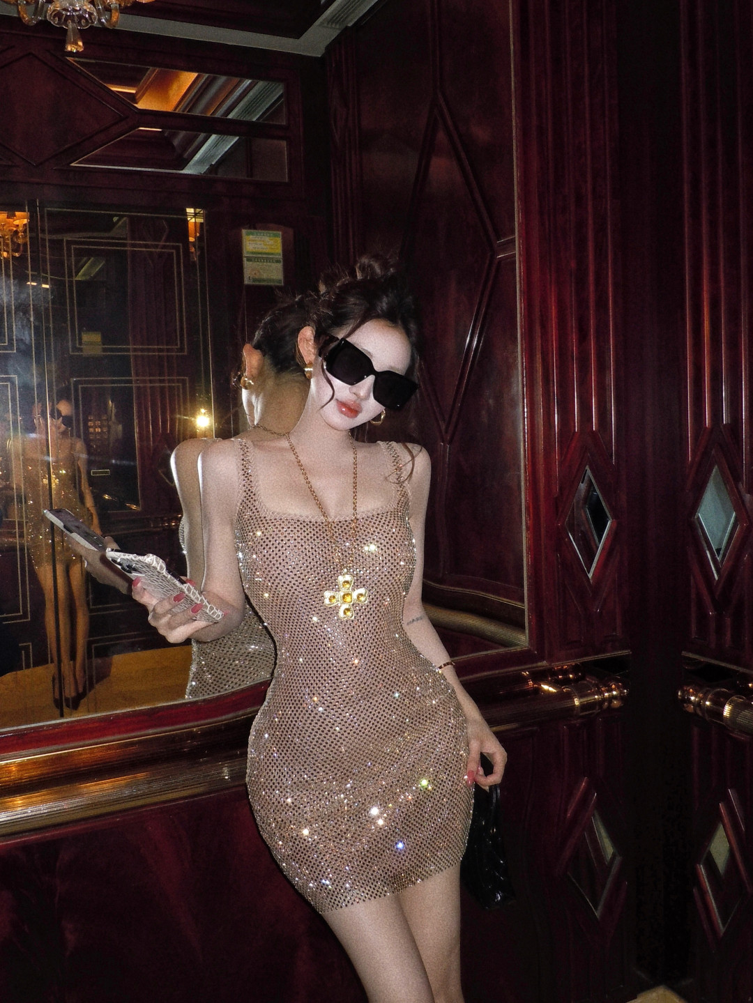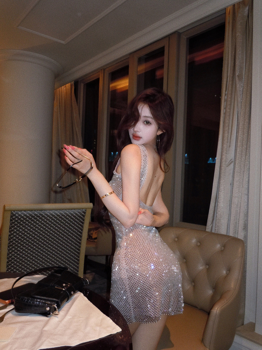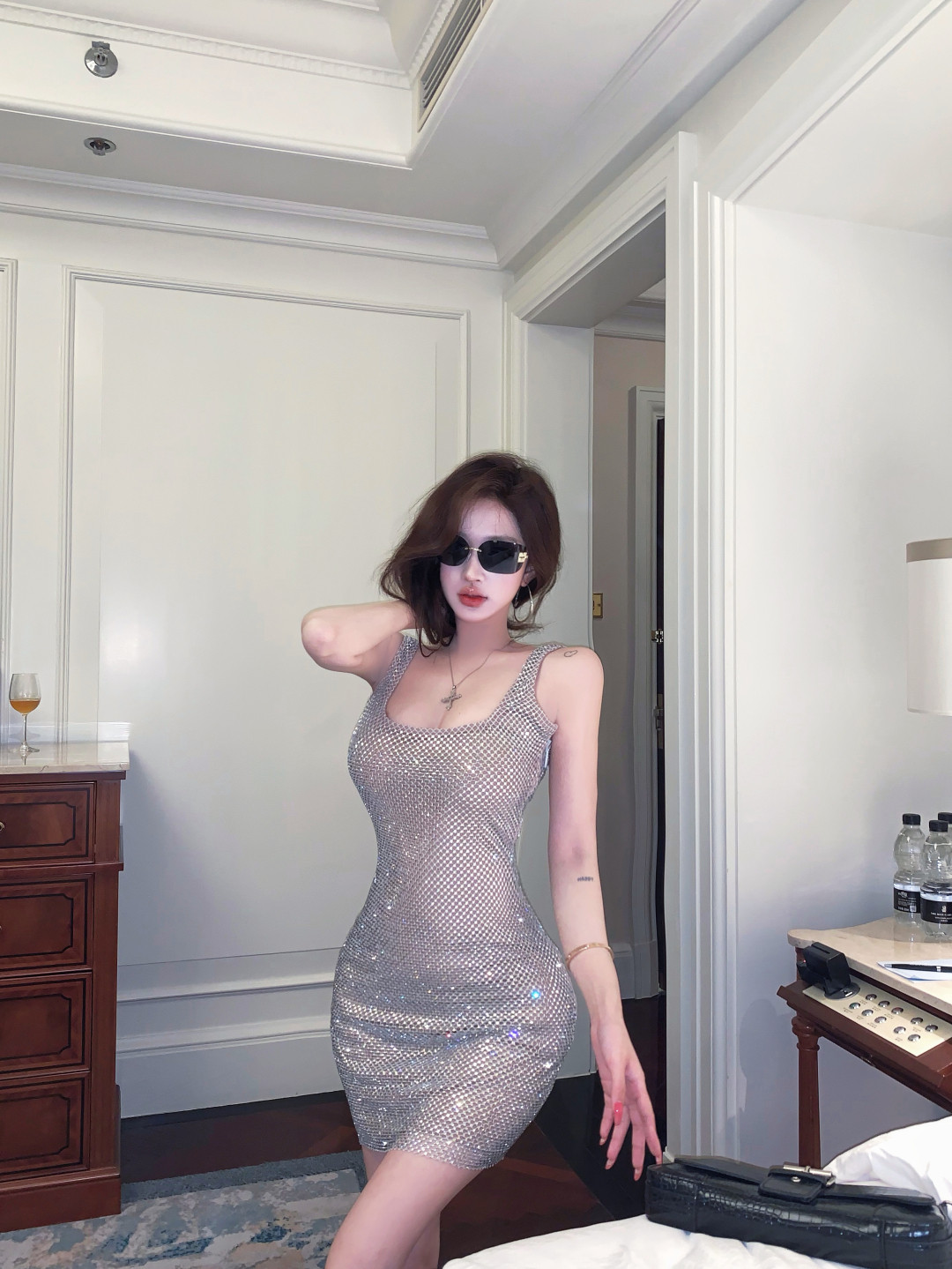 High-end glitter diamond backless square neck slip dress