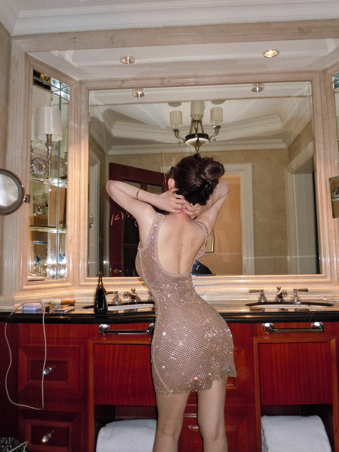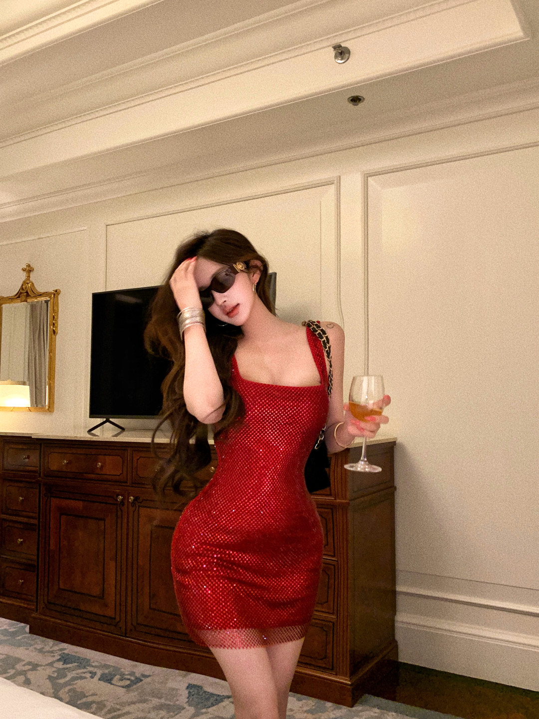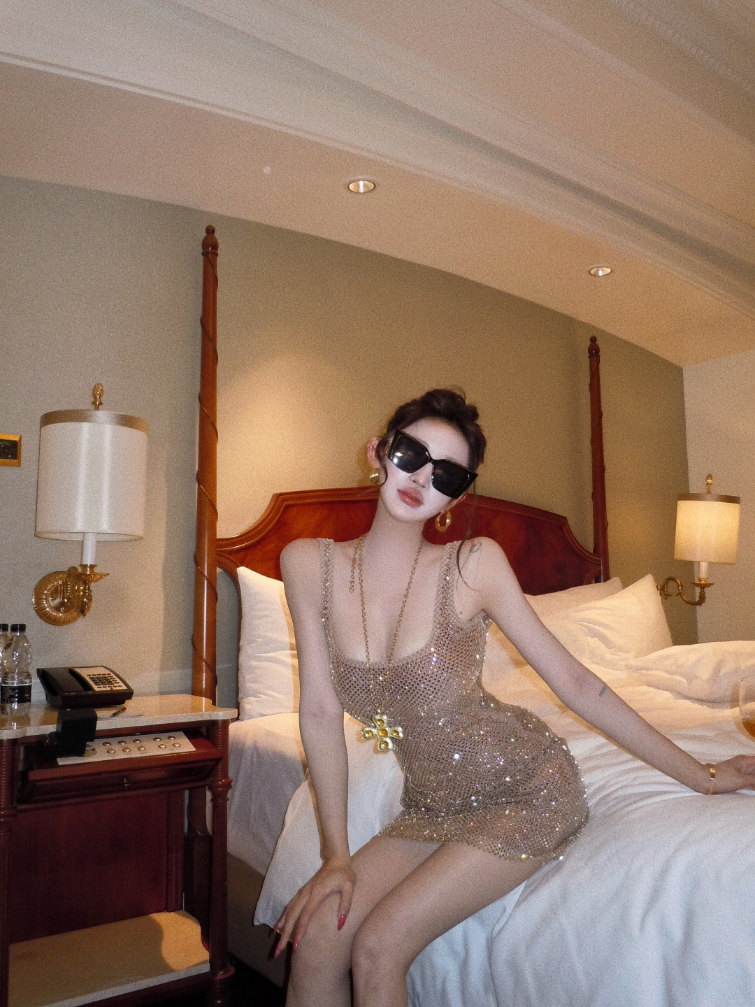High-end glitter diamond backless square neck slip dress
