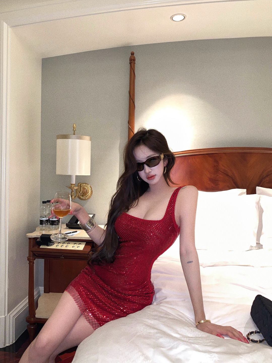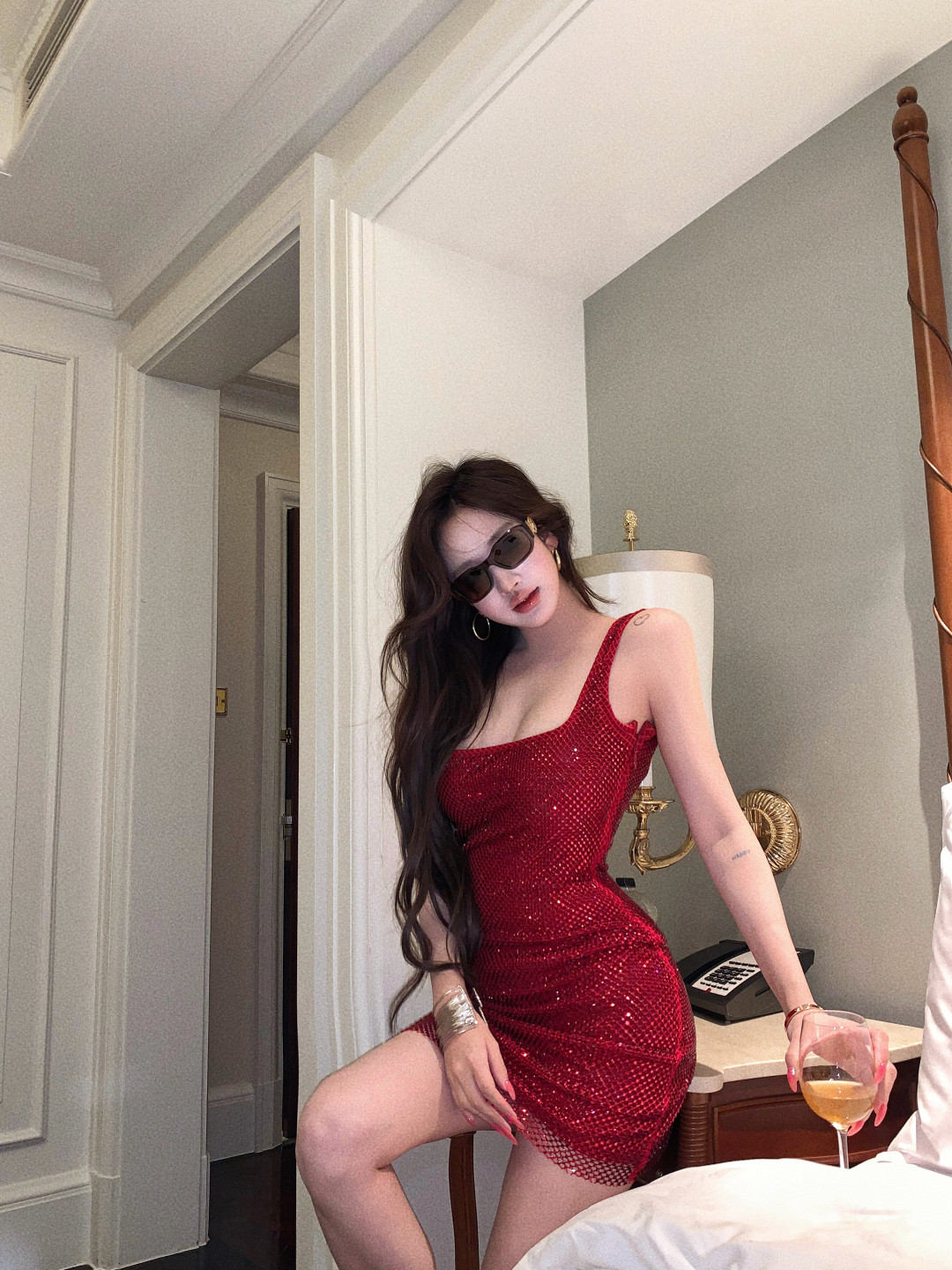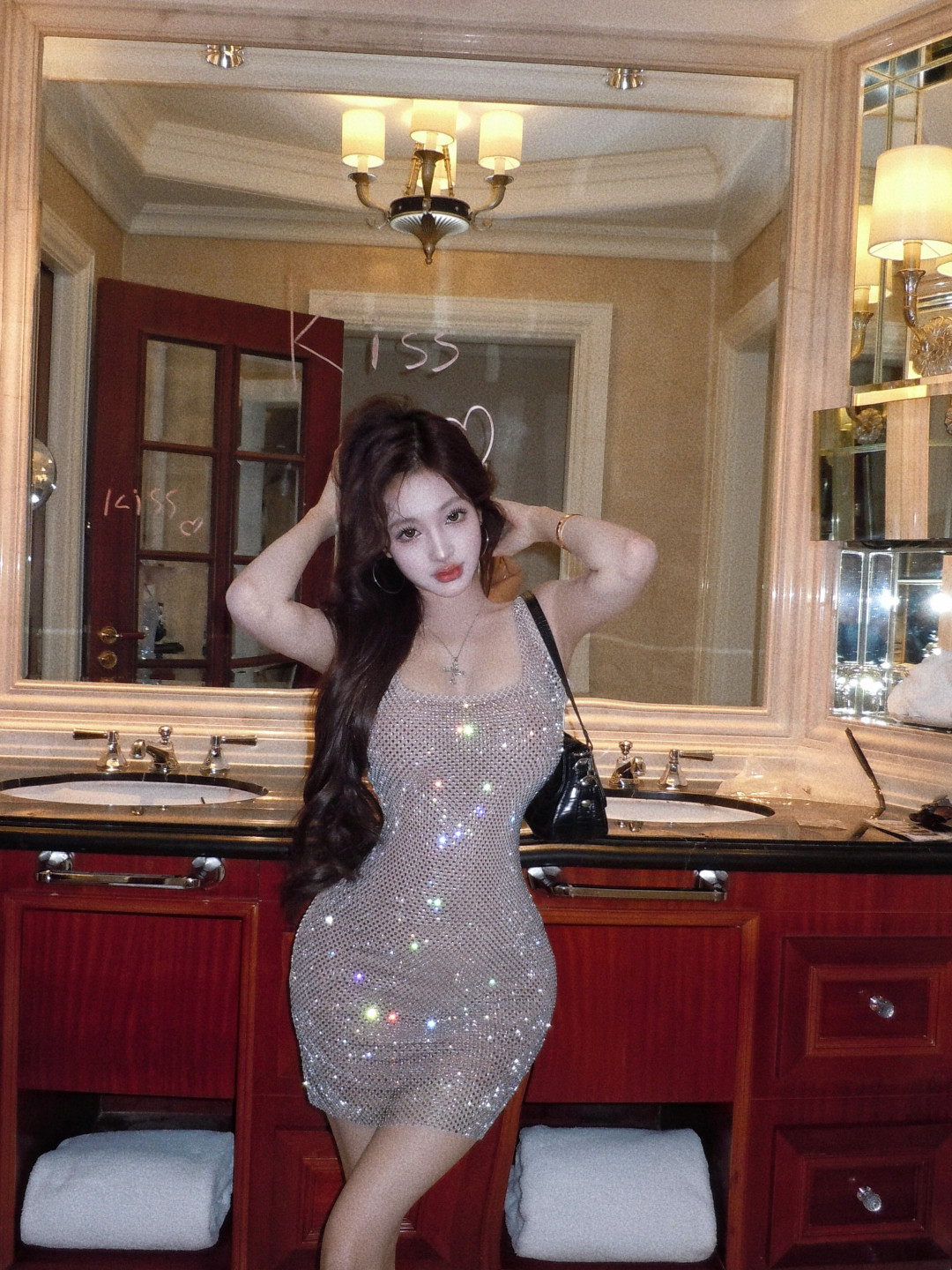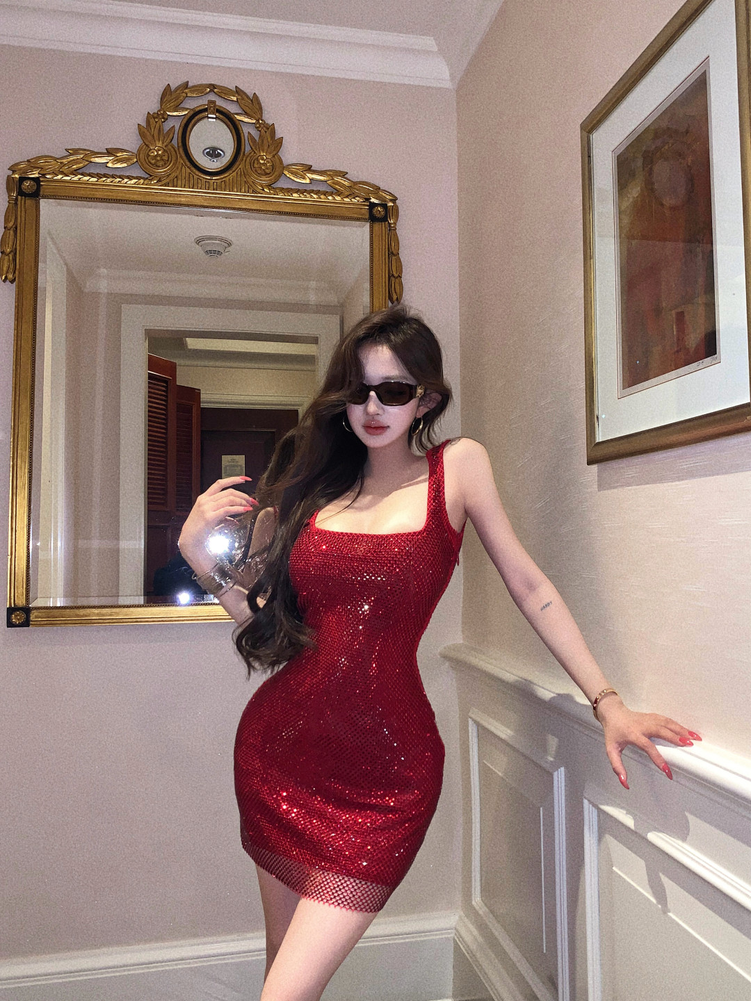 High-end glitter diamond backless square neck slip dress