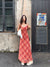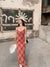 High-quality temperament, checked sundress, women's early spring, seaside vacation, red waist-cinching dress