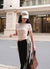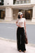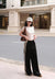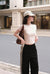Short-sleeve crop top t-shirt paired with wide-leg vertical striped trousers