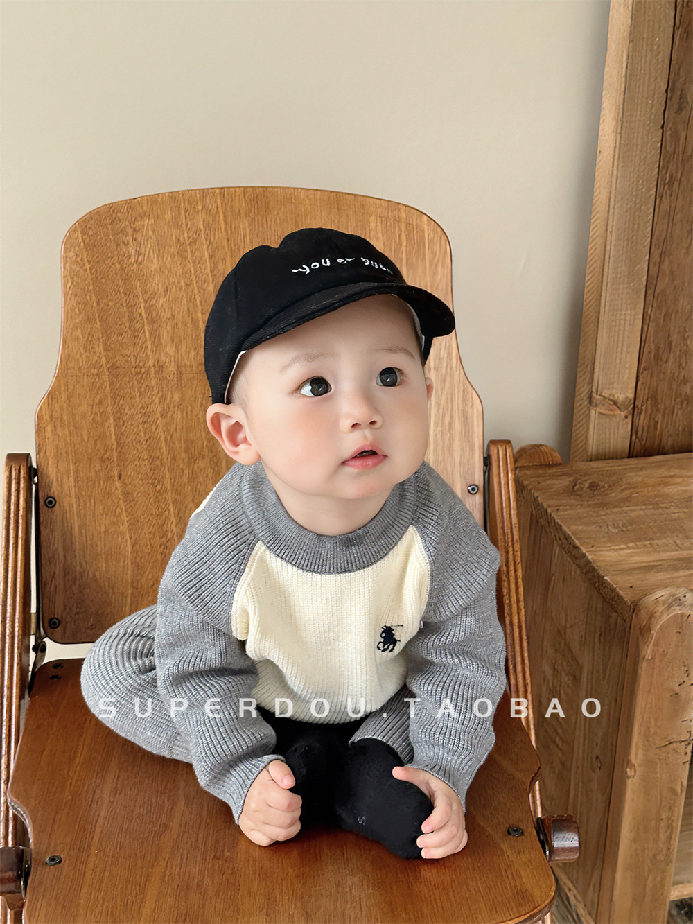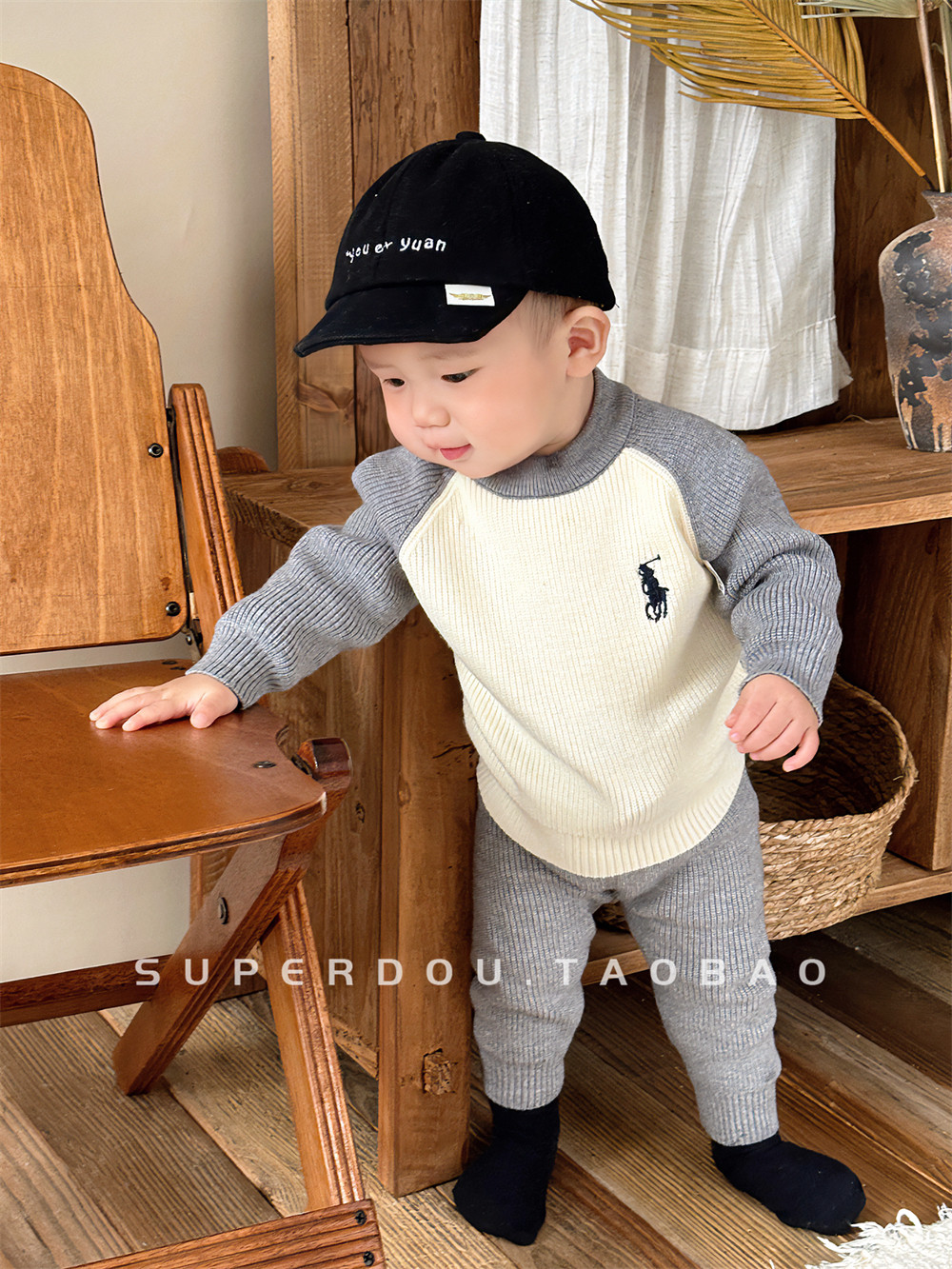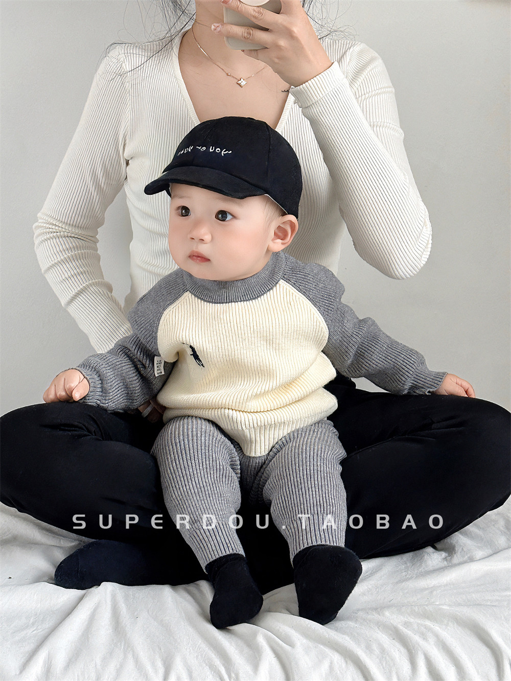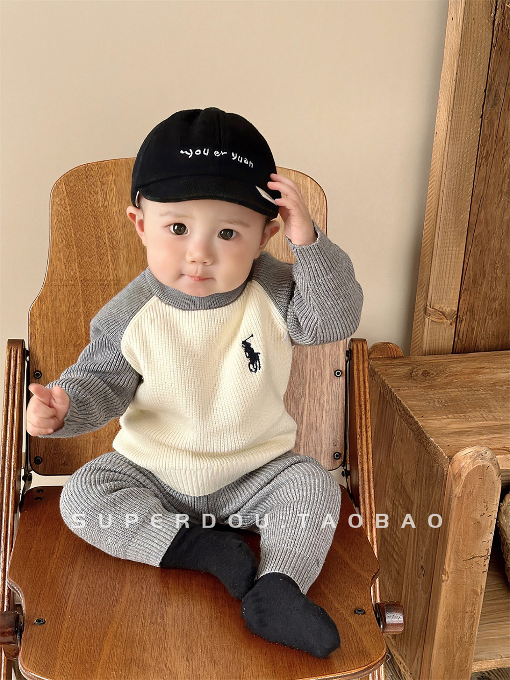 Baby spring and autumn clothes, baby suit, Internet celebrity foreign style, baby knitted split two-piece set