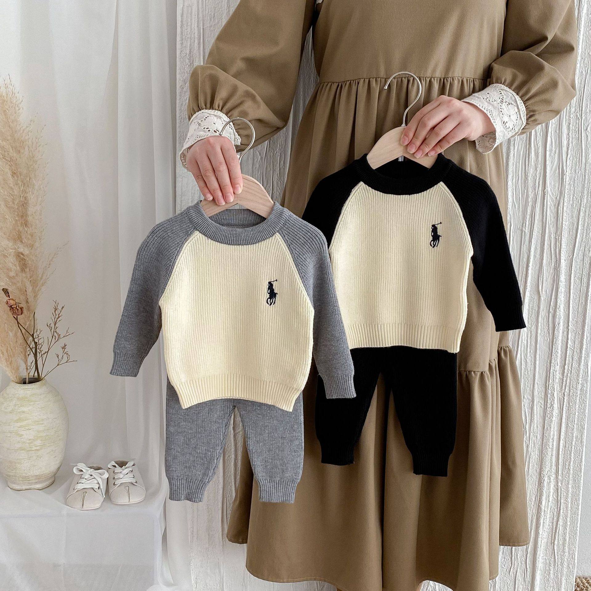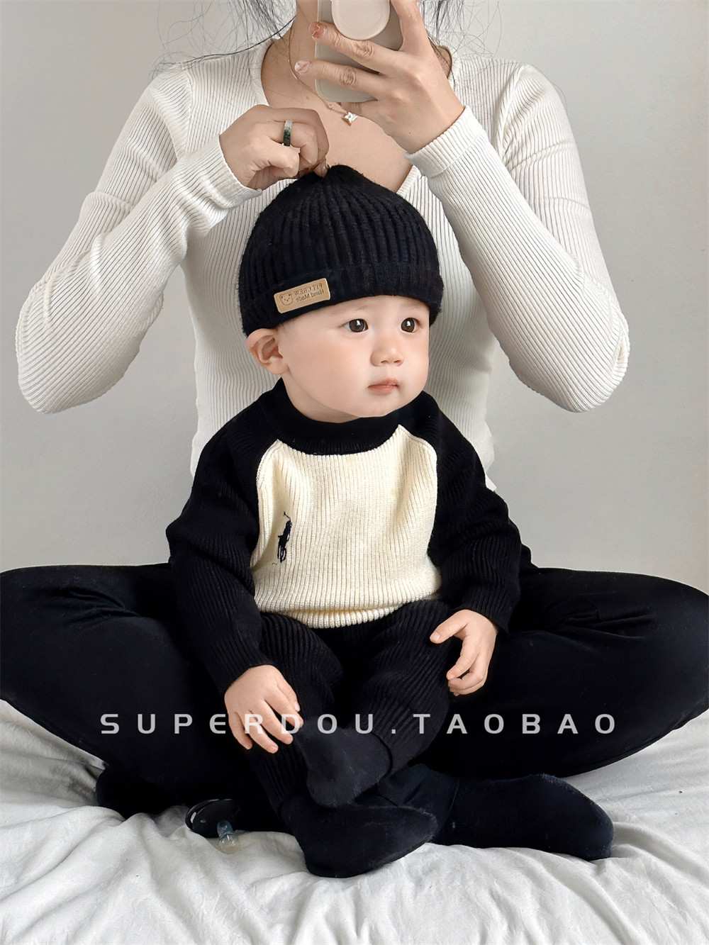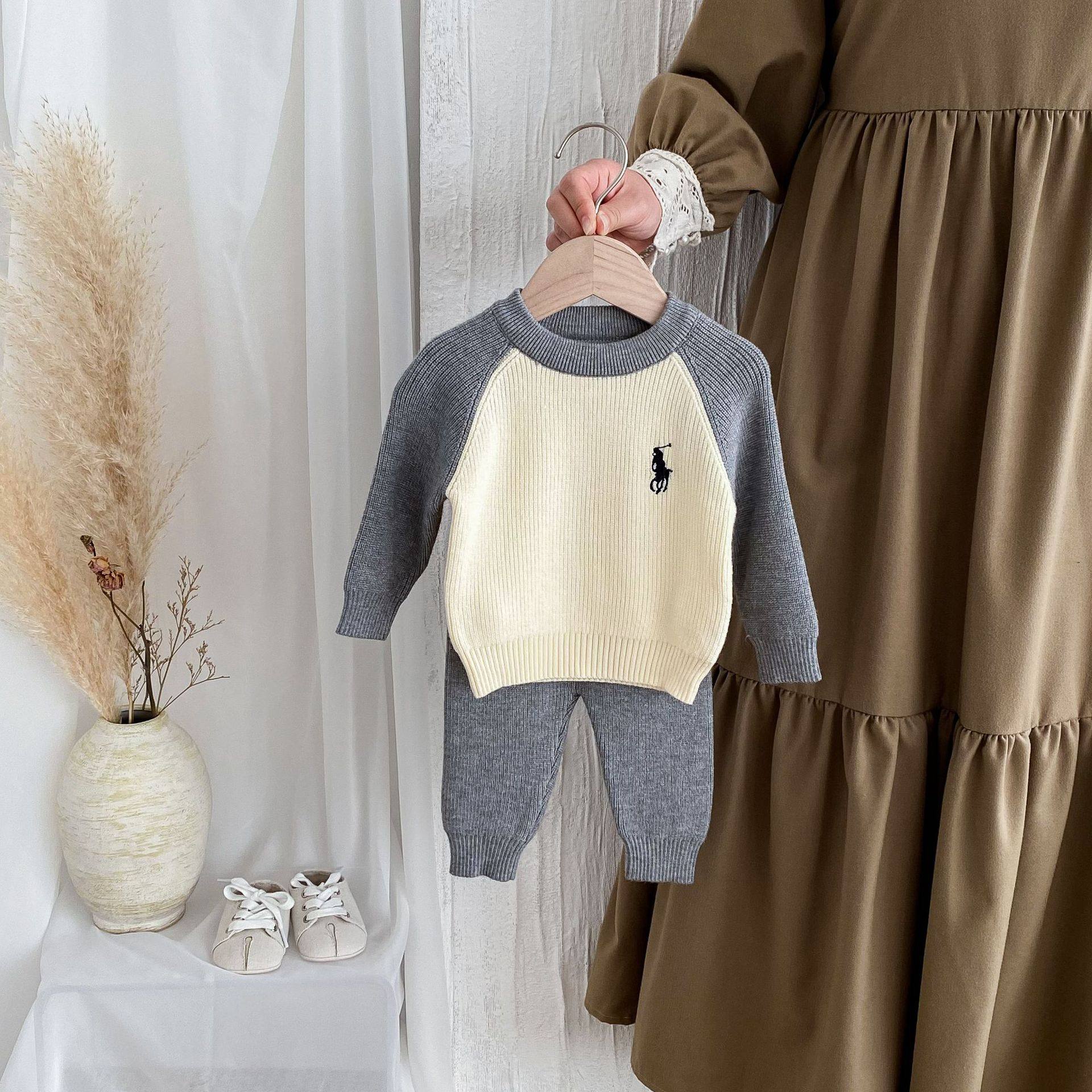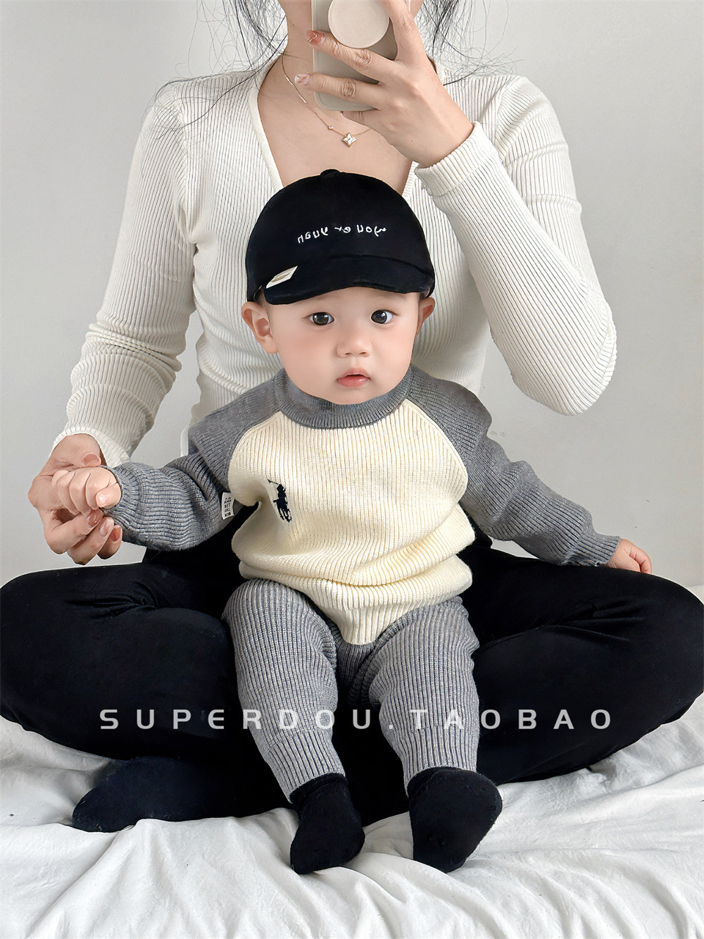 Baby spring and autumn clothes, baby suit, Internet celebrity foreign style, baby knitted split two-piece set