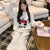 Women's autumn and winter soft half velvet stripe cute bear pattern plush girl pajamas pants loungewear set No reviews