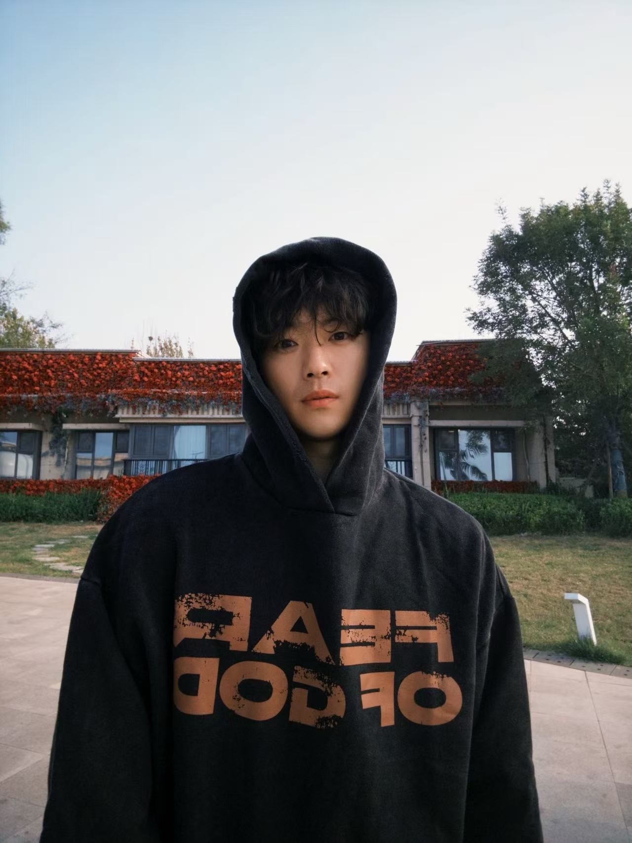 FOG COKR American hip-hop style letter print fleece hooded sweatshirt for men and women couples loose heavy hoodie