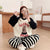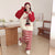 Half-velvet crew neck loungewear pajama set, women's thickened stripes, contrasting color cartoon, casual outer pajamas