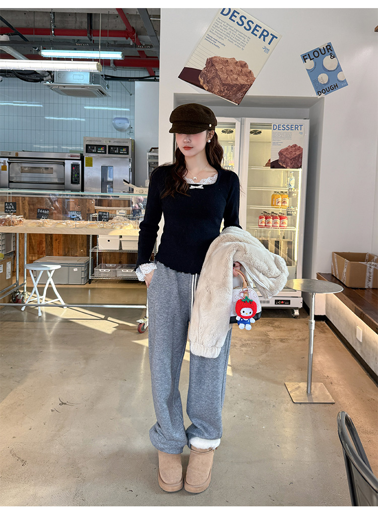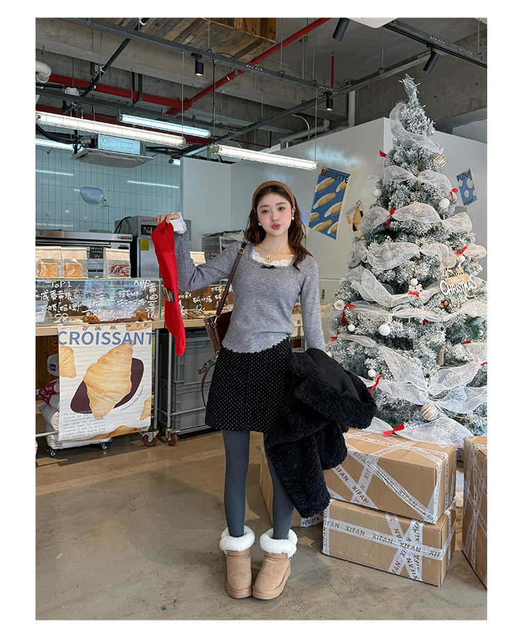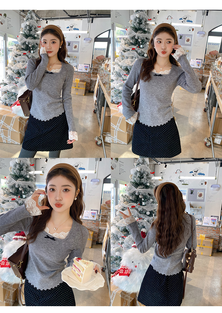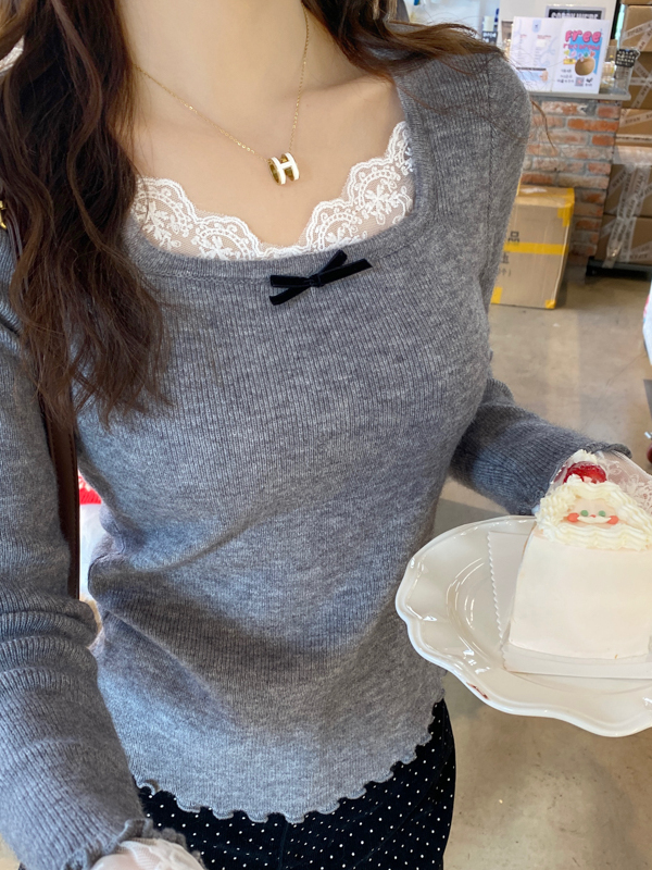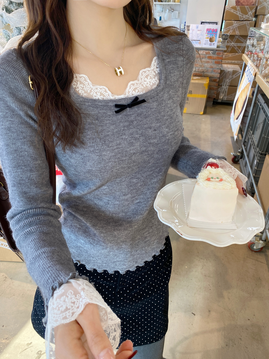 Sweet and spicy white lace V-neck long-sleeved knitted sweater