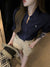 Embroidered button-down shirt, casual wide-leg pants, two-piece set